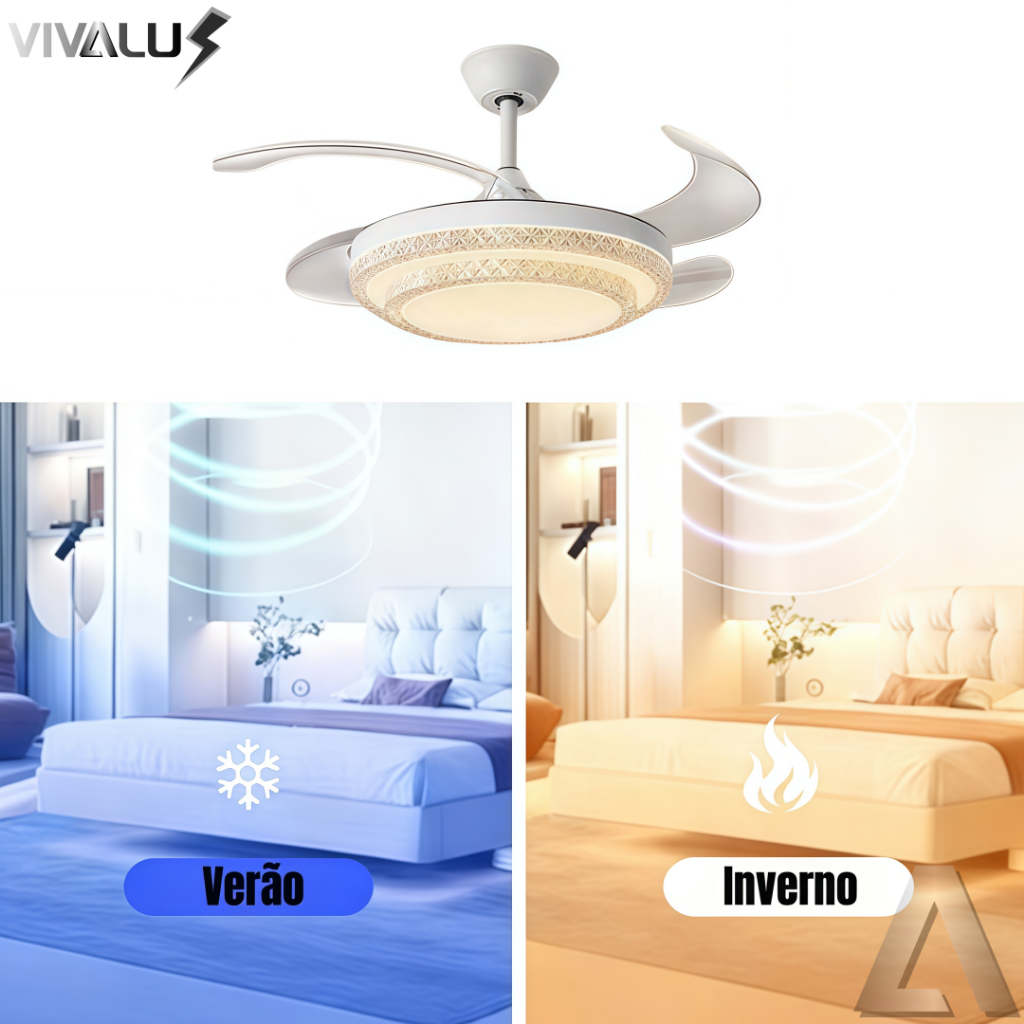 Ventilador Lustre Multicolor Retratil 4 Pás Controle Remoto Rápido Ventilação e Exaustão Pendente