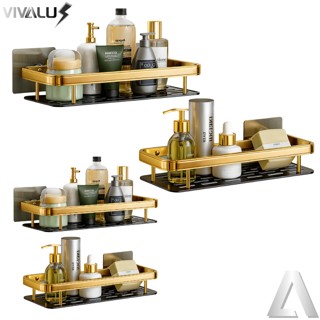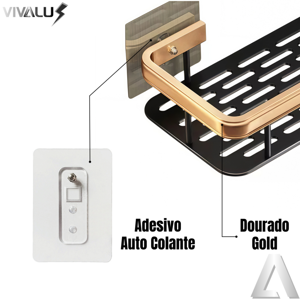 Kit Com 1 2 3 4 Suporte Banheiro Adesivo Sem Furo Organizador Multiuso Porta Shampoo Dourado