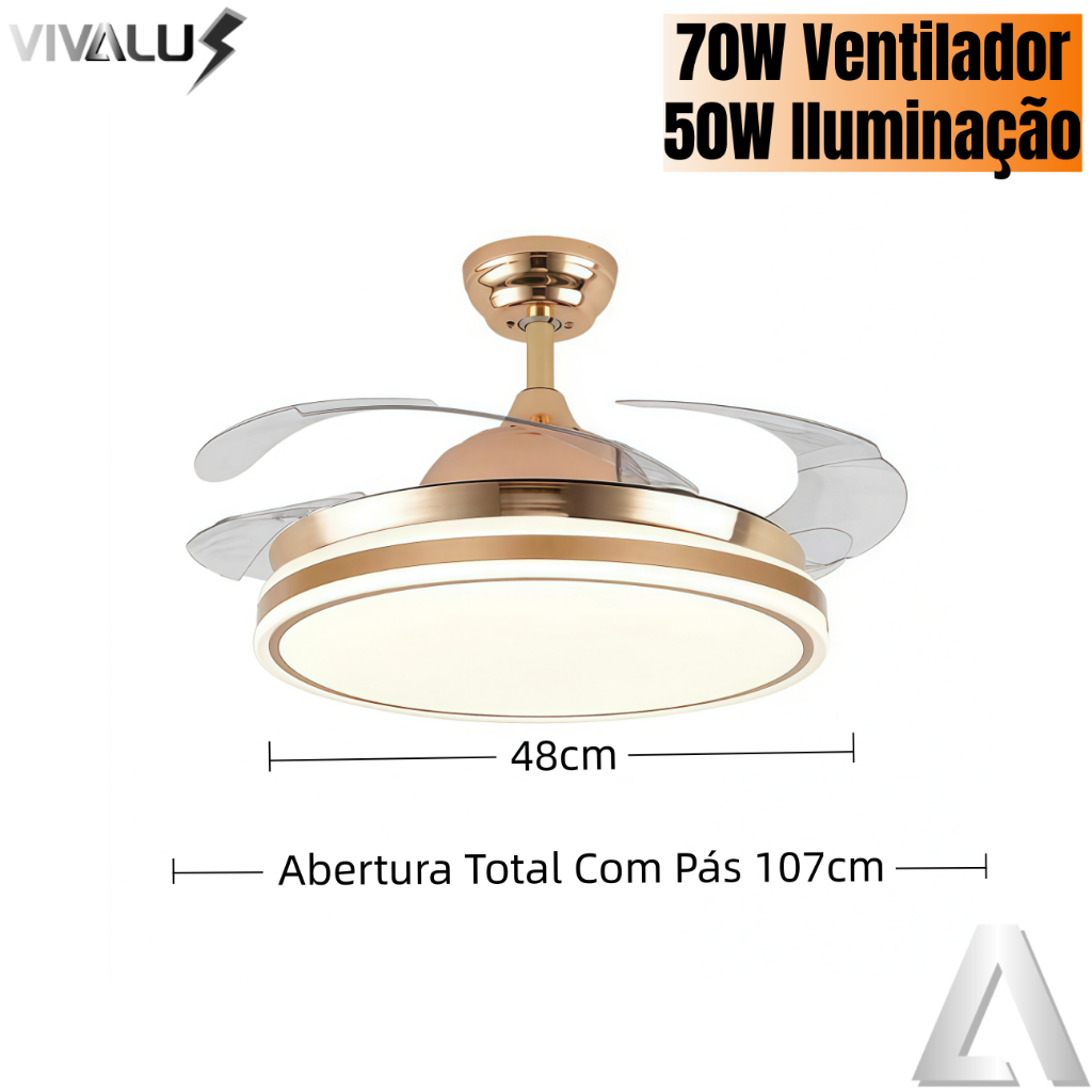 Ventilador de Teto Retrátil LED Fresh Wind Iluminação Ventilação com Tecnologia e Estilo Lustre Gold