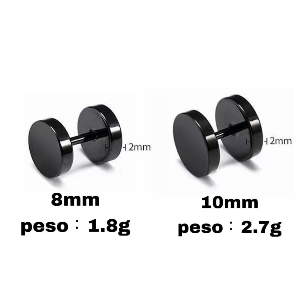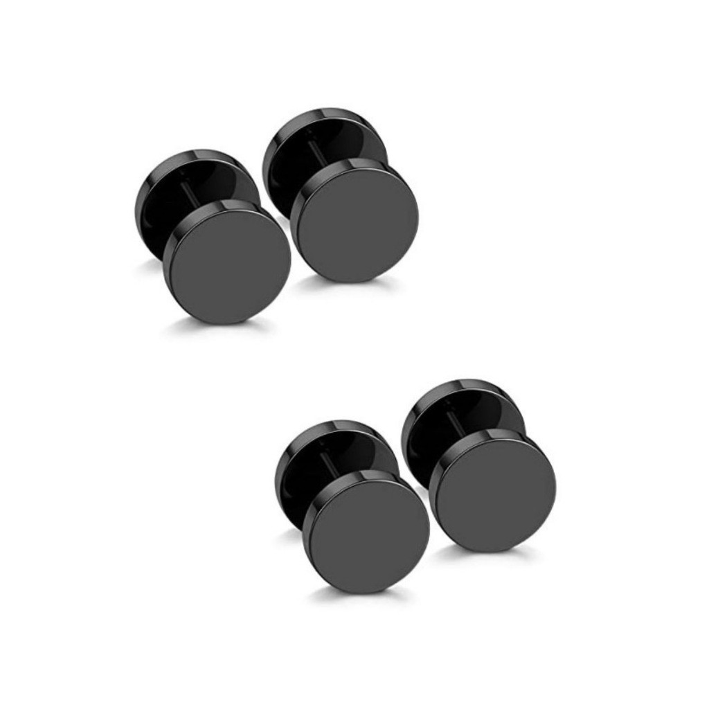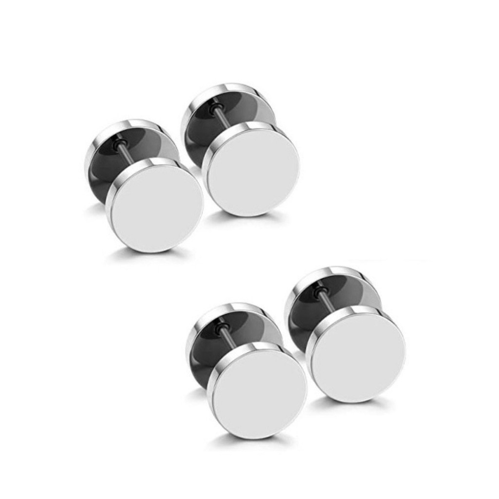 Kit 2 Pares Brinco Falso Alargador Preto e Prata Masculino feminino unissex KA429