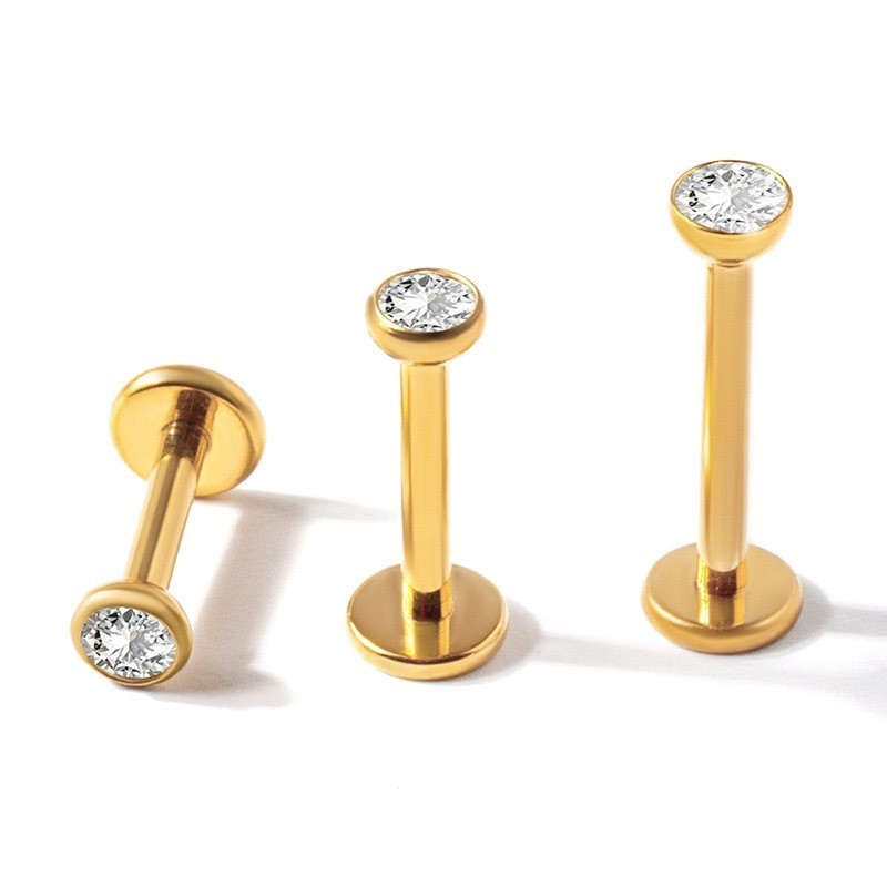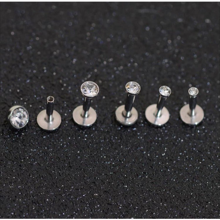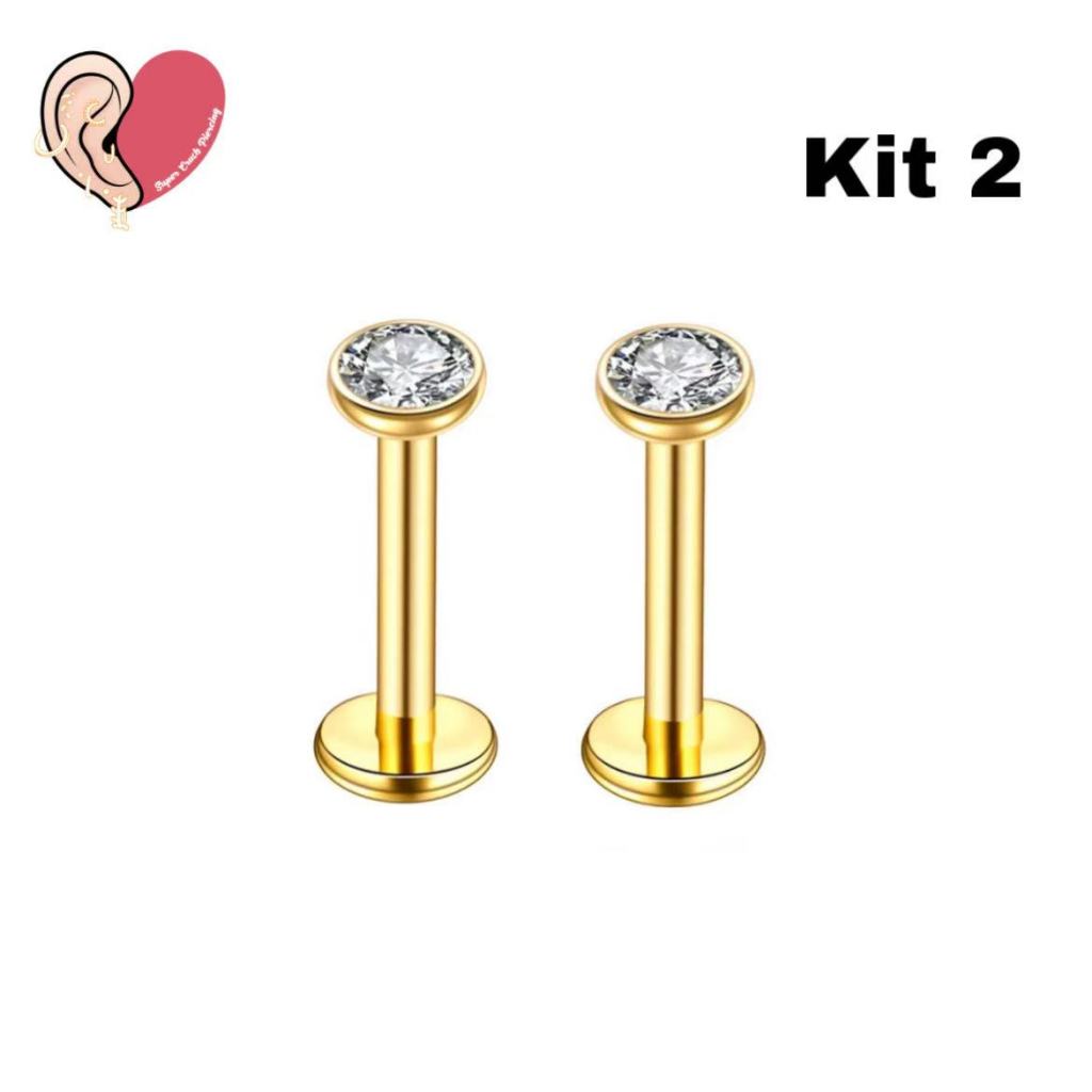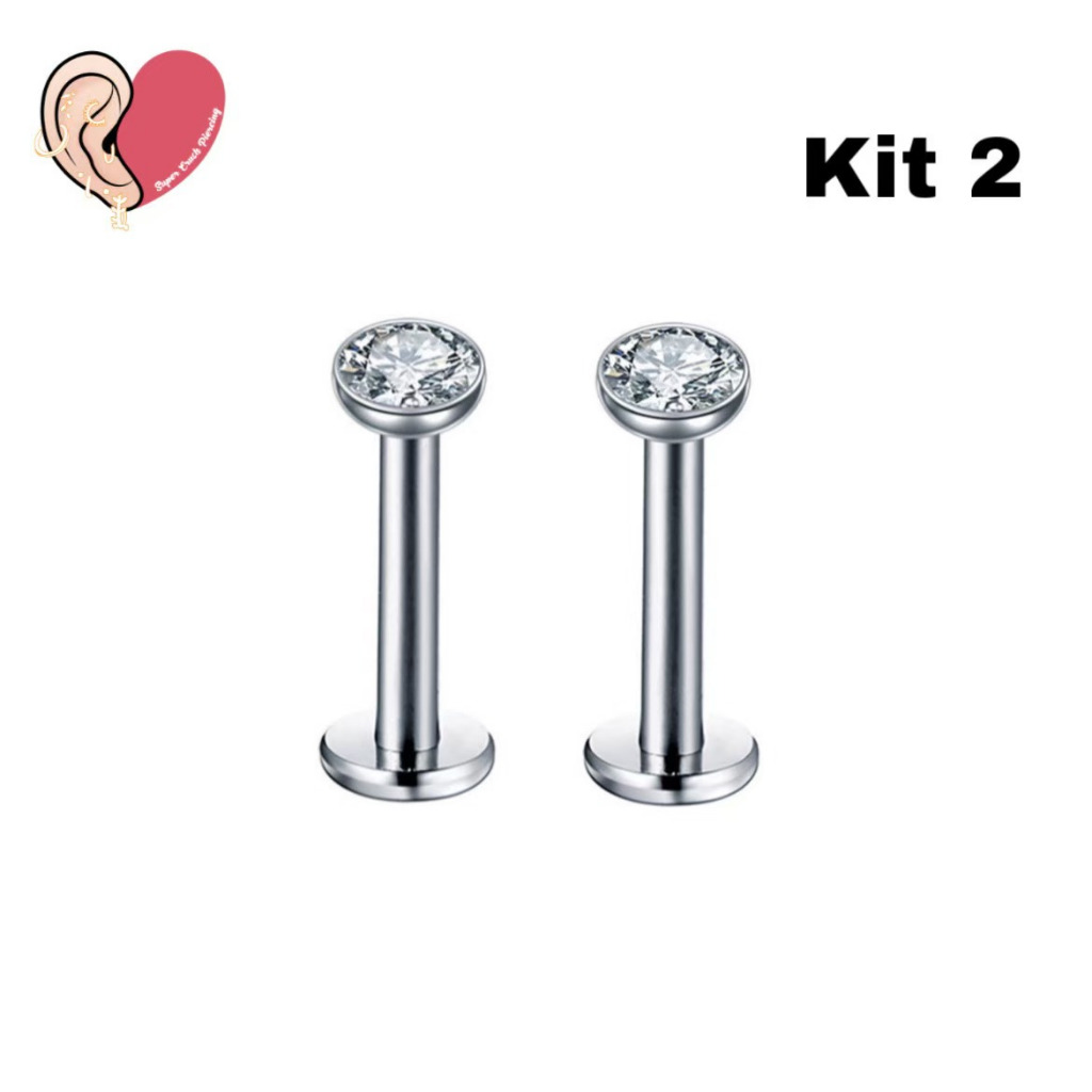 Kit 2 Piercing Labret Aço Cirúrgico Zircônia Rosca Interna | Helix, Tragus, Conch, Nariz, Boca-Medusa e Outros KA117