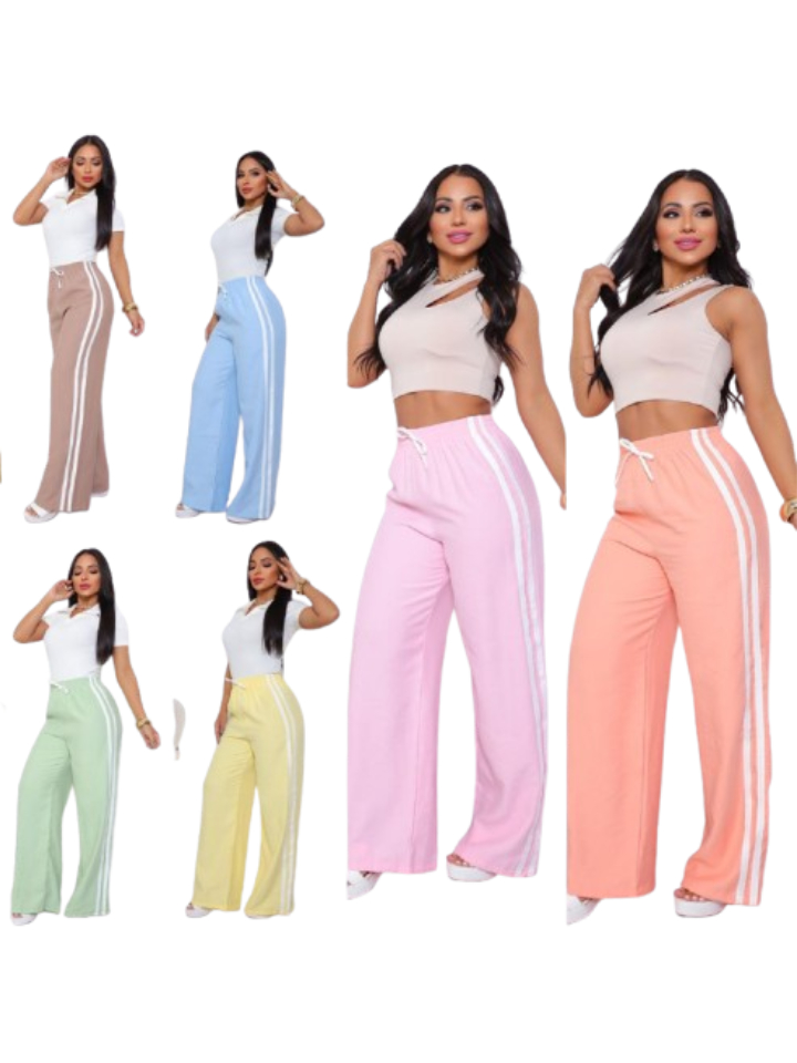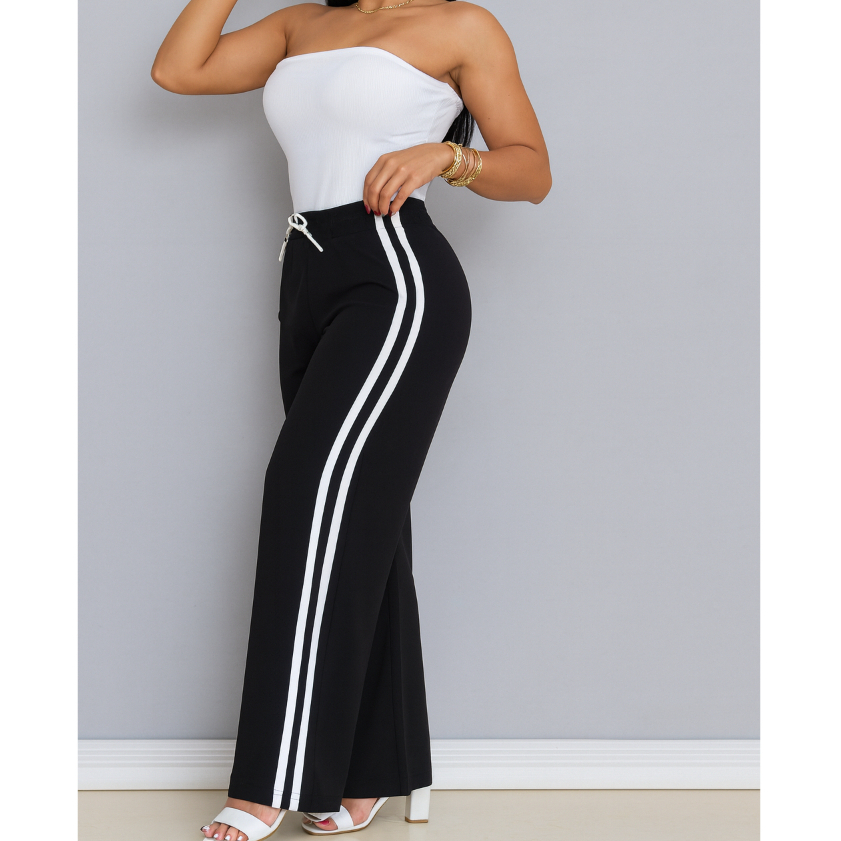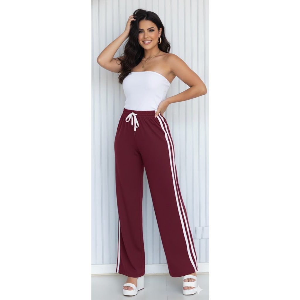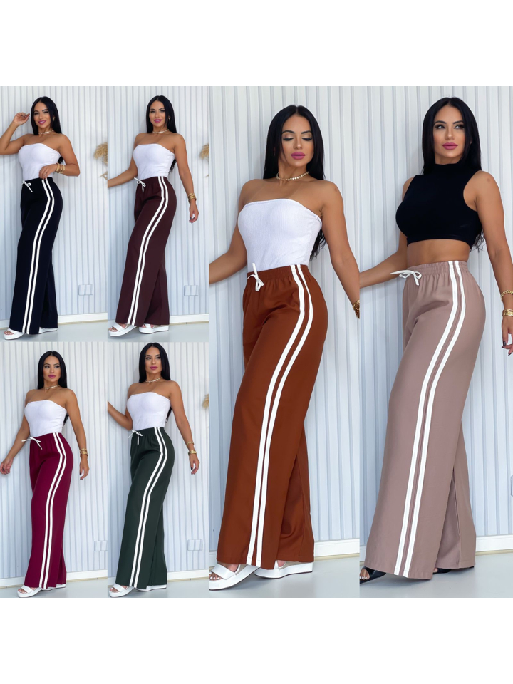 Calça Feminina Listrada Wide Leg Tecido Sensorial | Cintura Alta | Confortável e Estilosa | P M G GG | Várias Cores