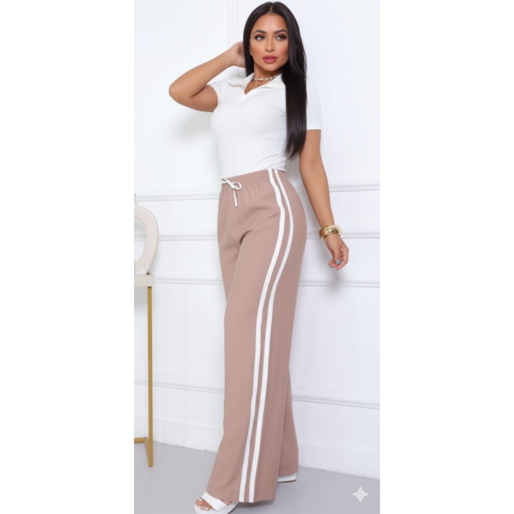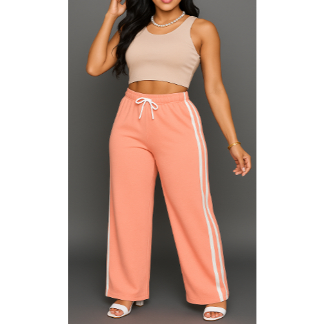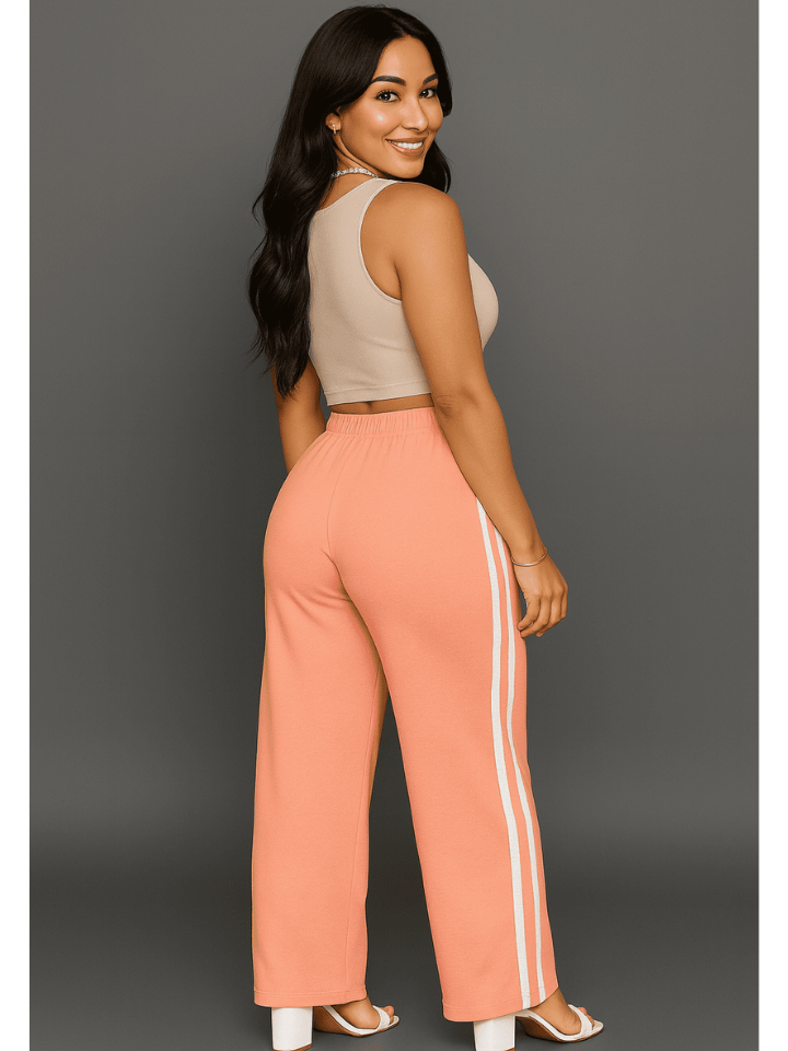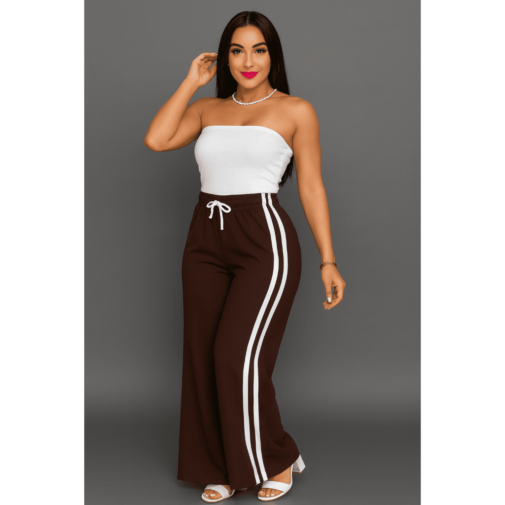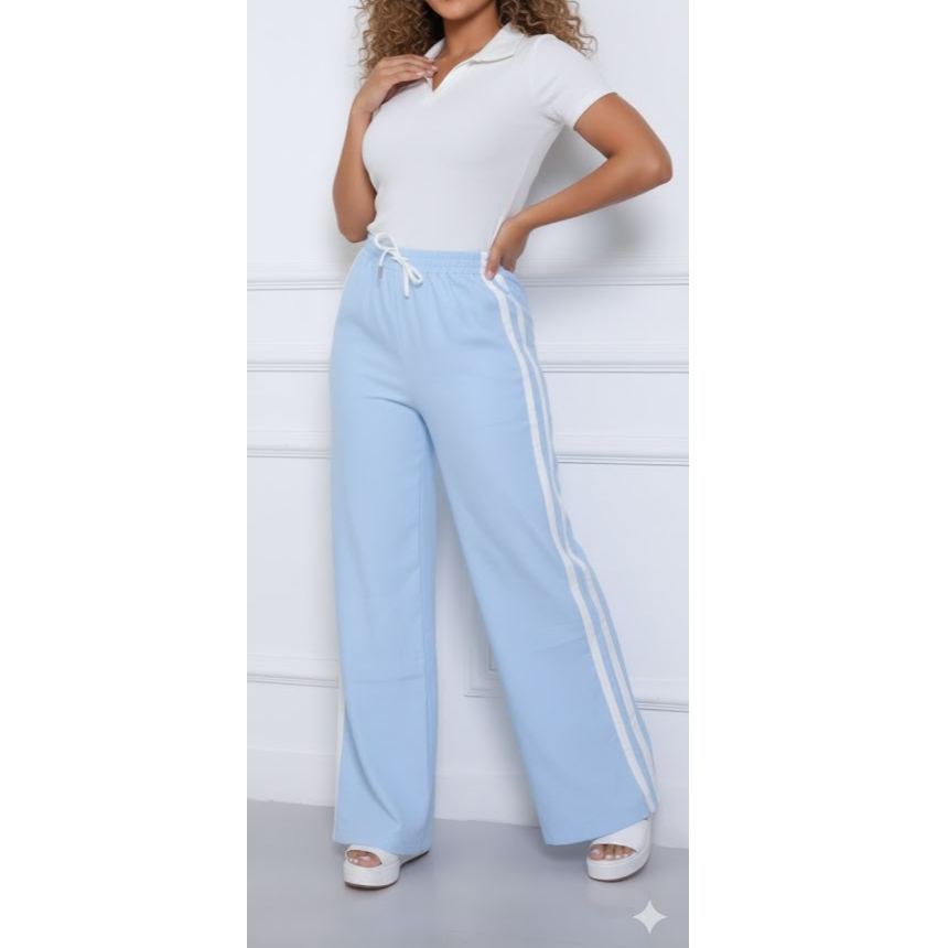 Calça Feminina Listrada Wide Leg Tecido Sensorial | Cintura Alta | Confortável e Estilosa | P M G GG | Várias Cores