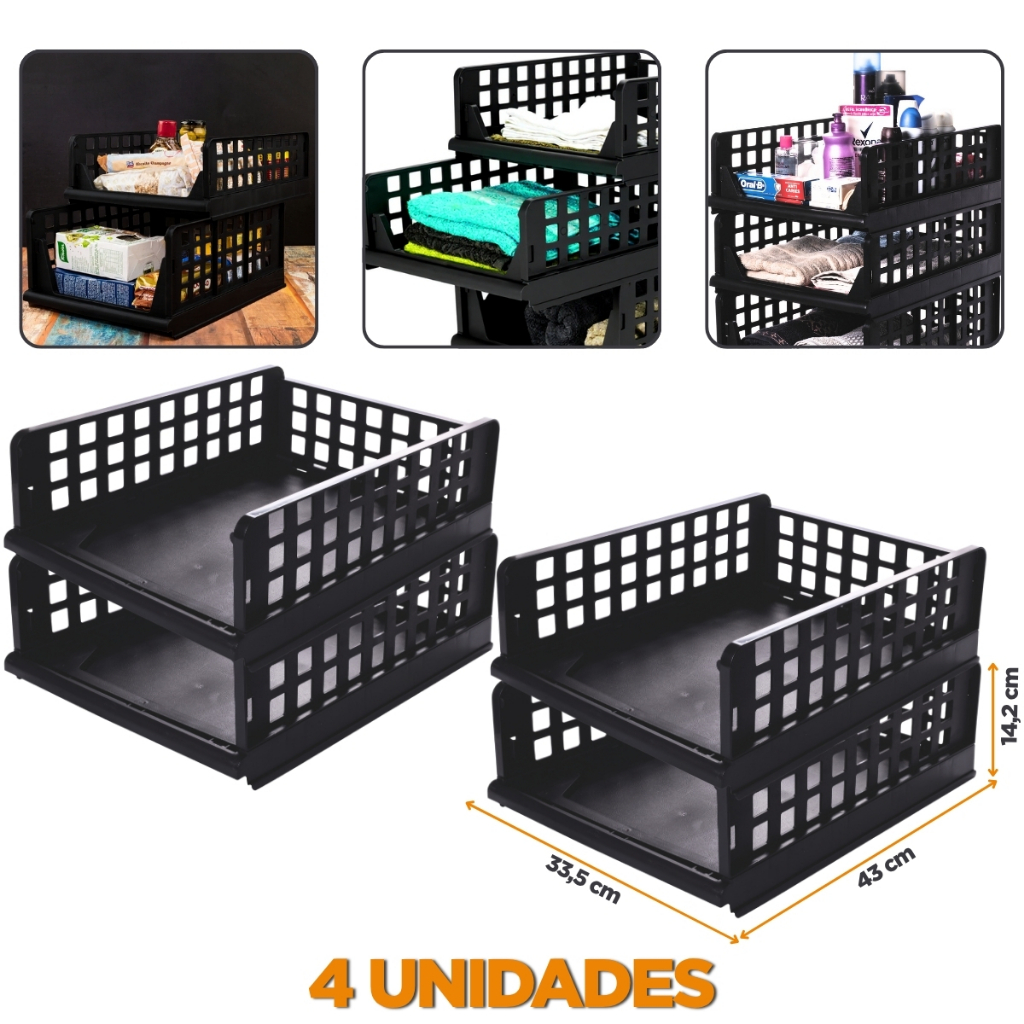 Organizadores de Armário Cozinha Empilhável Caixa Organizadora Multiuso Prateleira Lavanderia