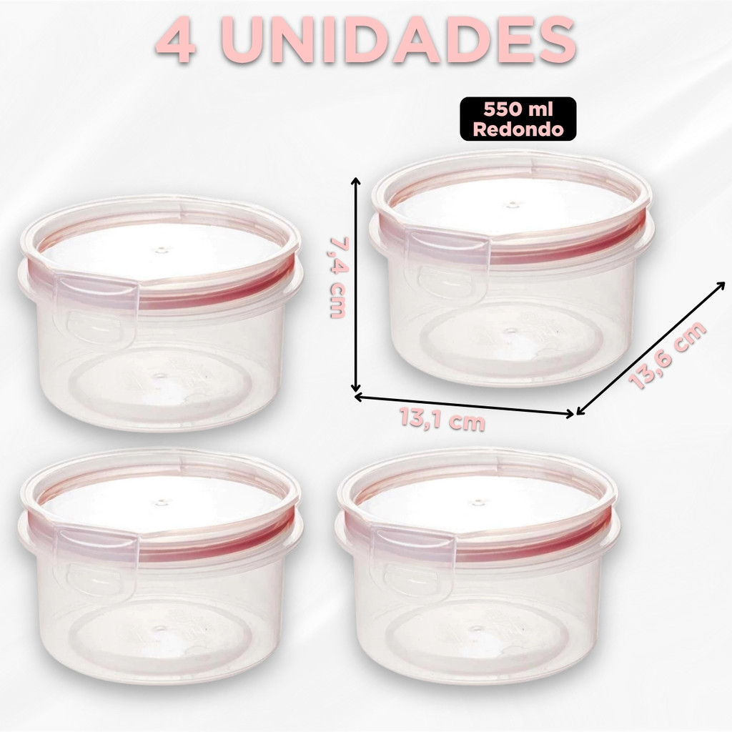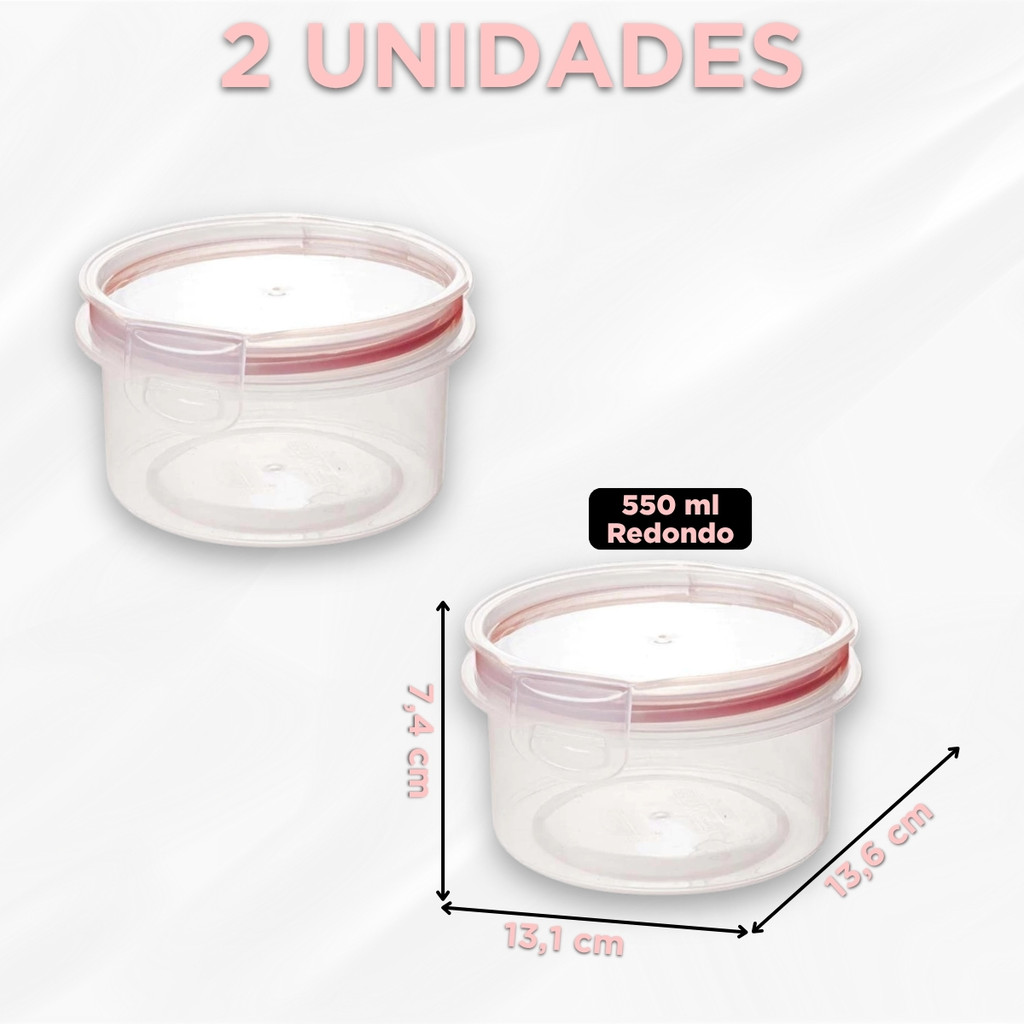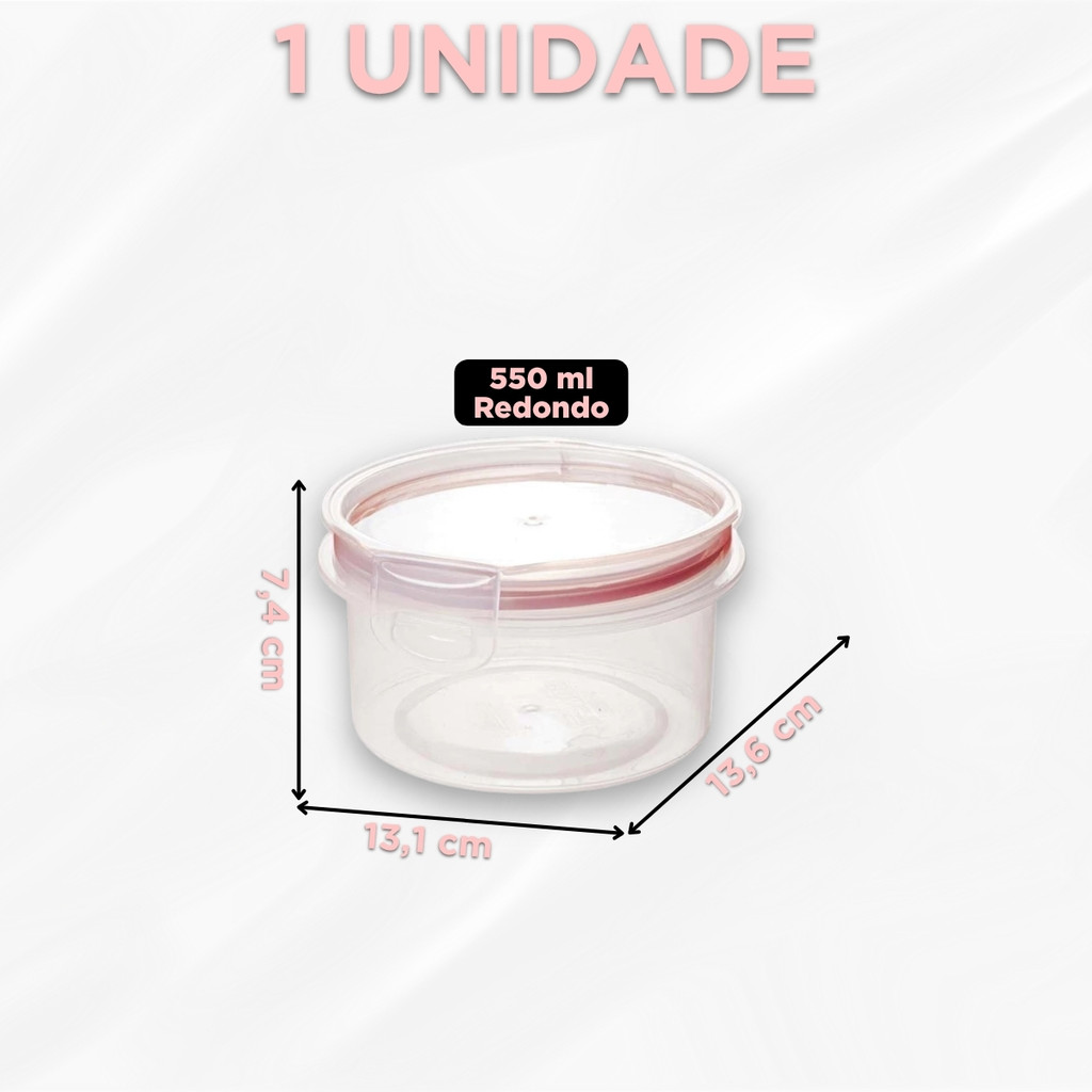 Pote Hermético Redondo 550 ml Tampa Trava Microondas Freezer Mantimentos Alimentos Empilhável
