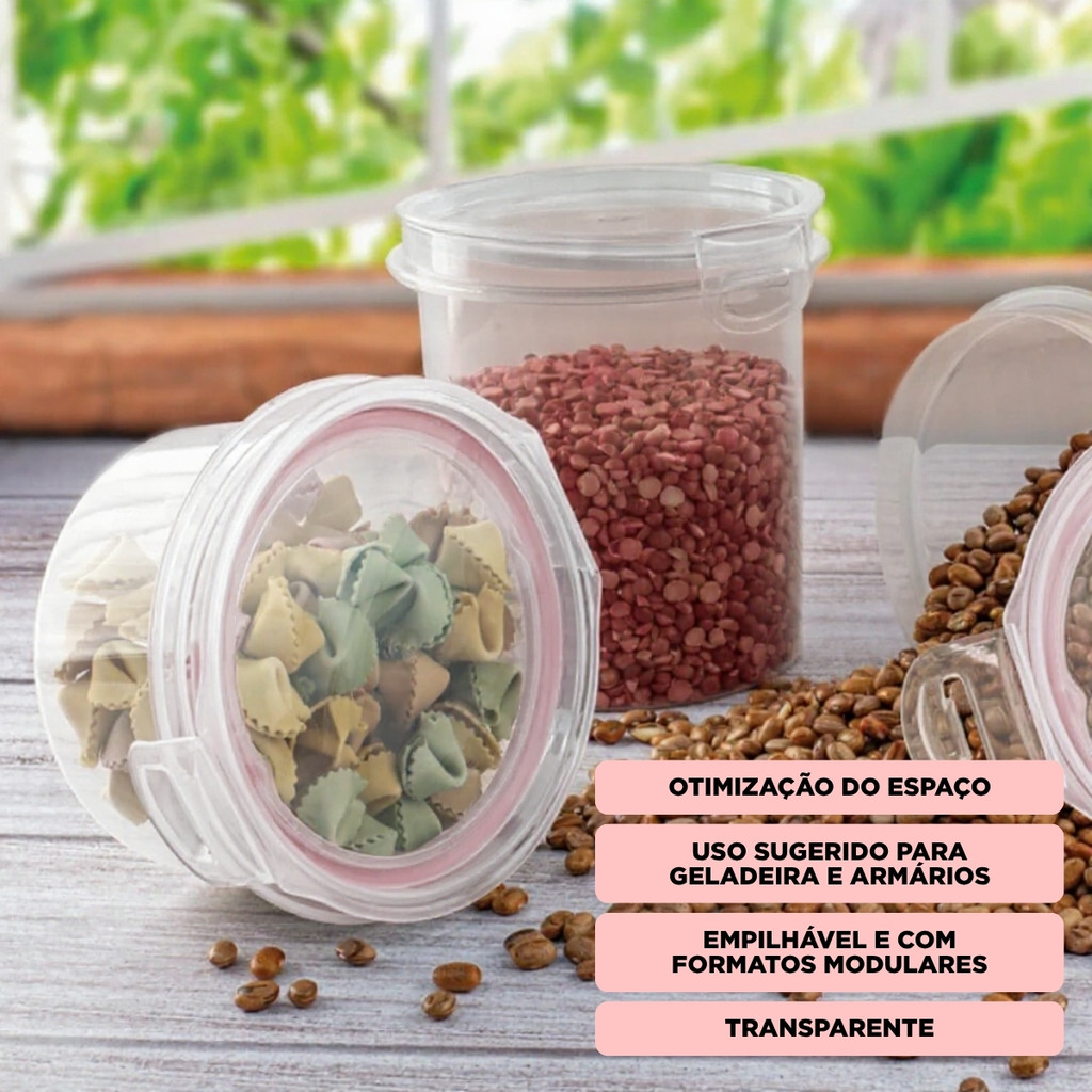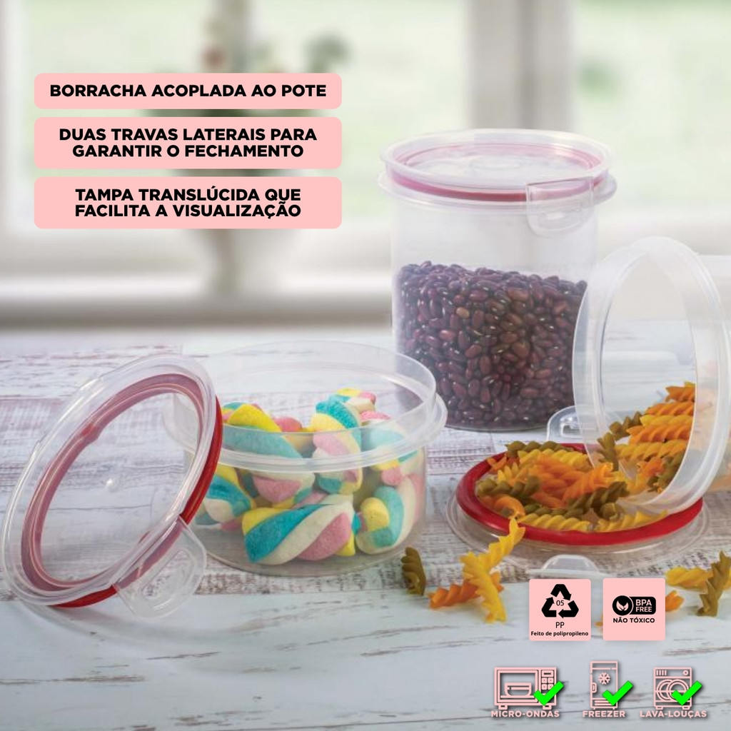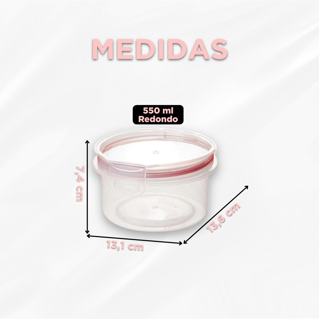 Pote Hermético Redondo 550 ml Tampa Trava Microondas Freezer Mantimentos Alimentos Empilhável