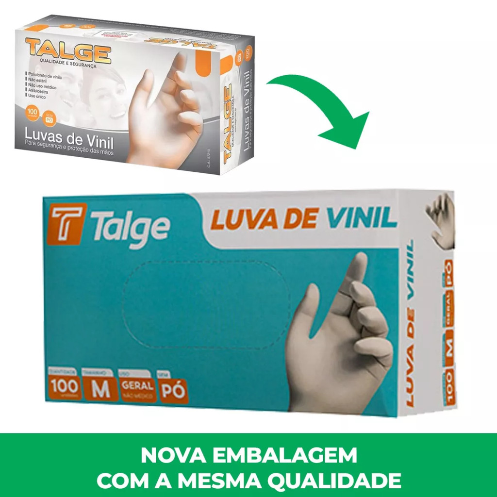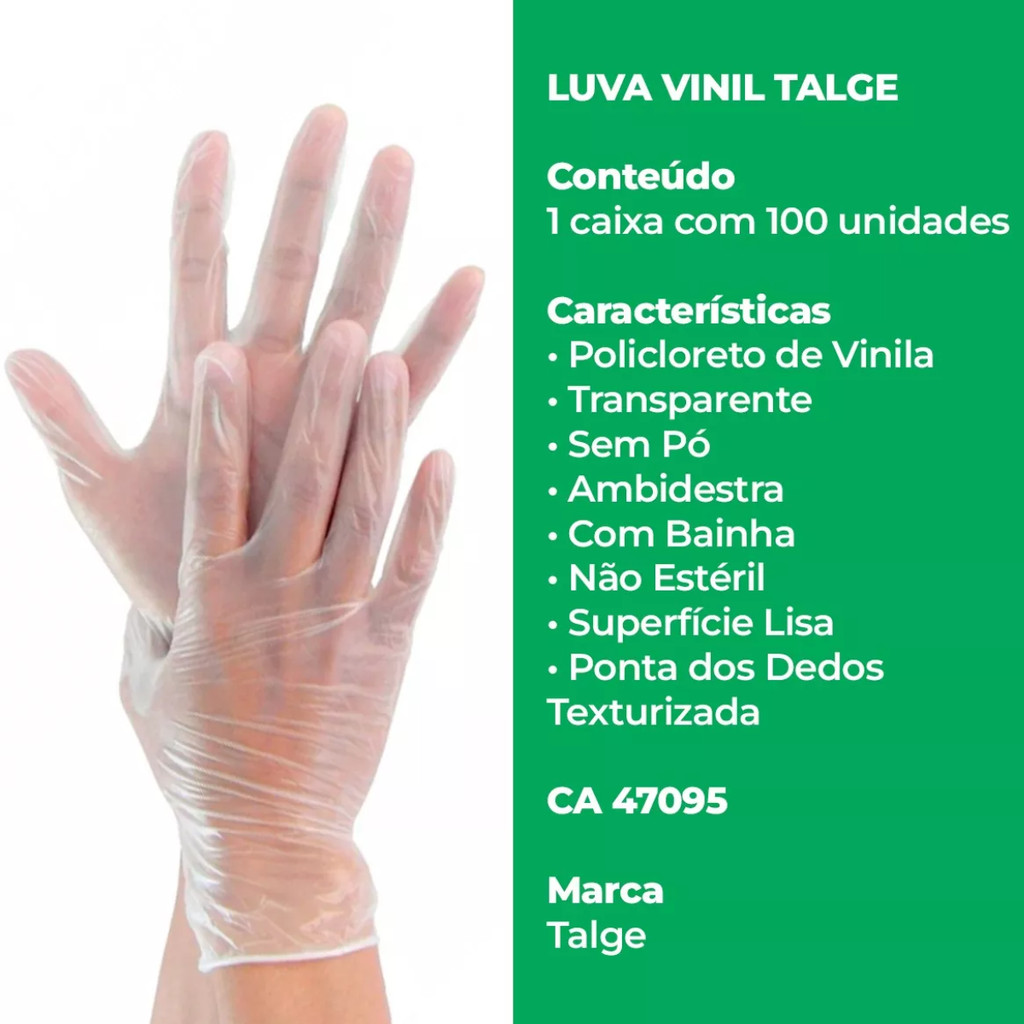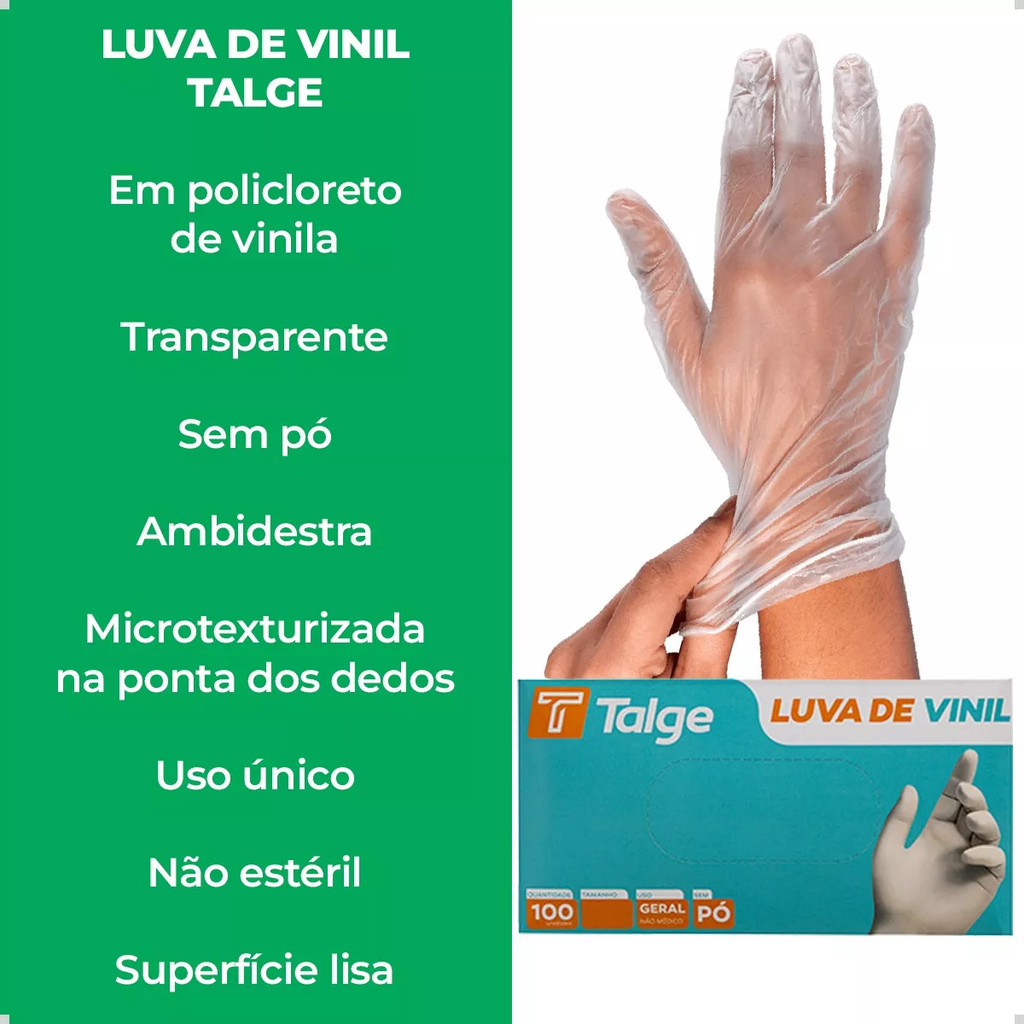 Kit 2 Luva De Vinil Sem Pó 100un Descartável - Talge