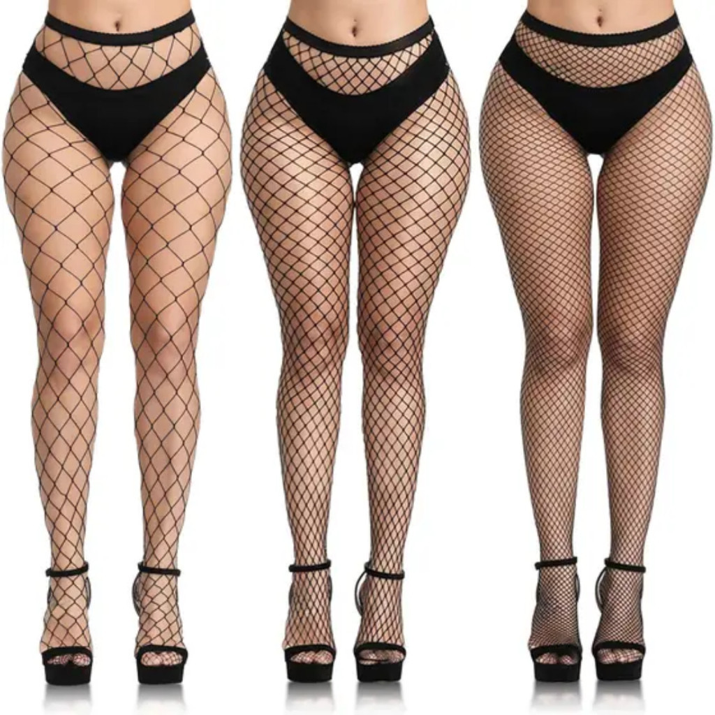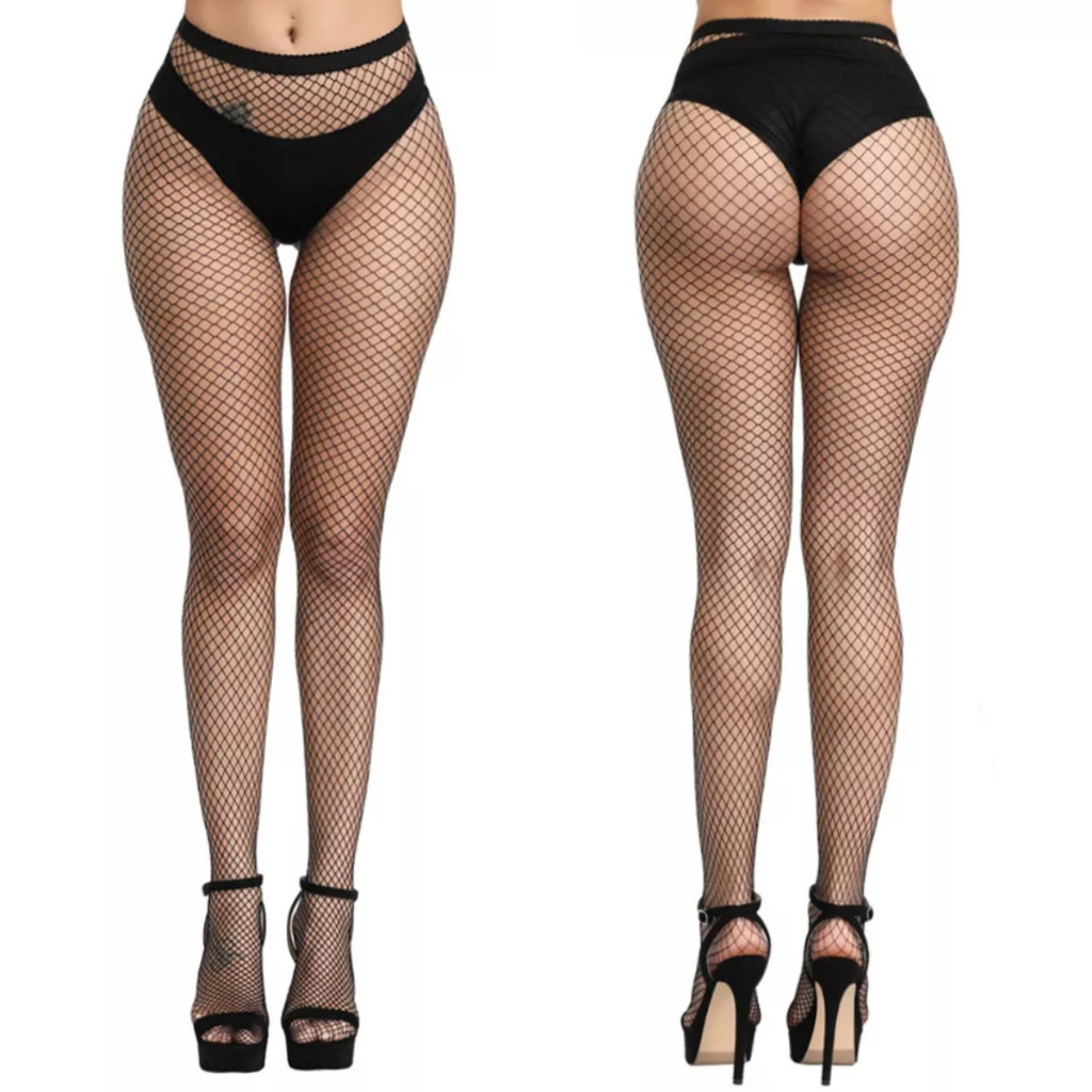 Meia Calça Arrastão Elástica Trama Grande Médio e Mini Cor Preta Cós Alto Adulto Gótica