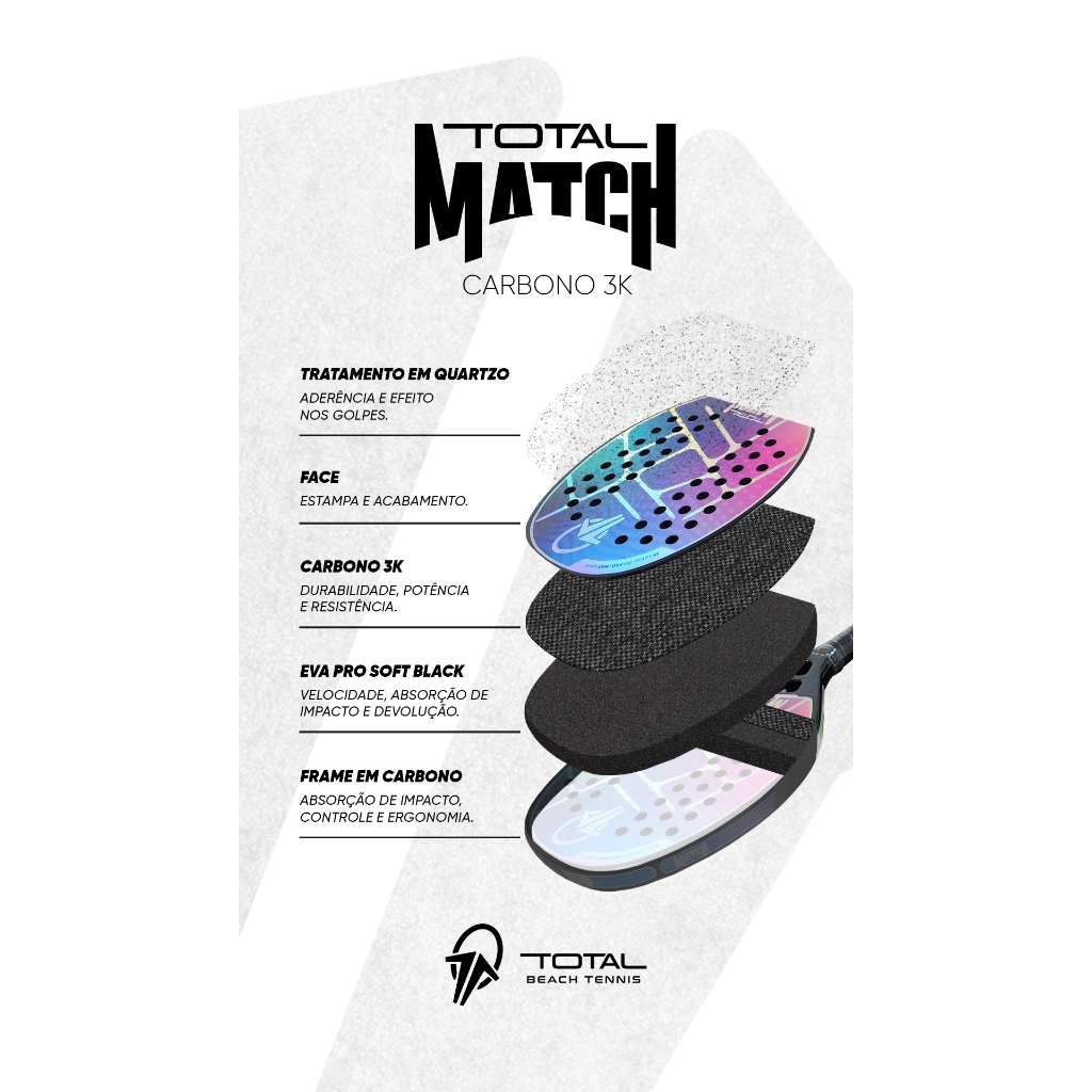 Raquete Beach Tennis Carbono 3k Total Match 2025 + Capa