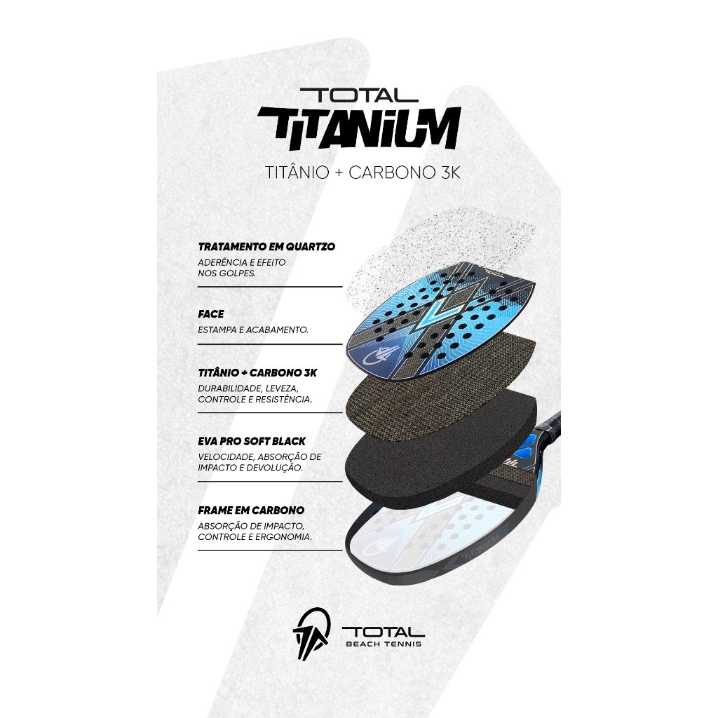 Raquete Beach Tennis Total Titanium Carbono 3k 2025 + Capa Brinde