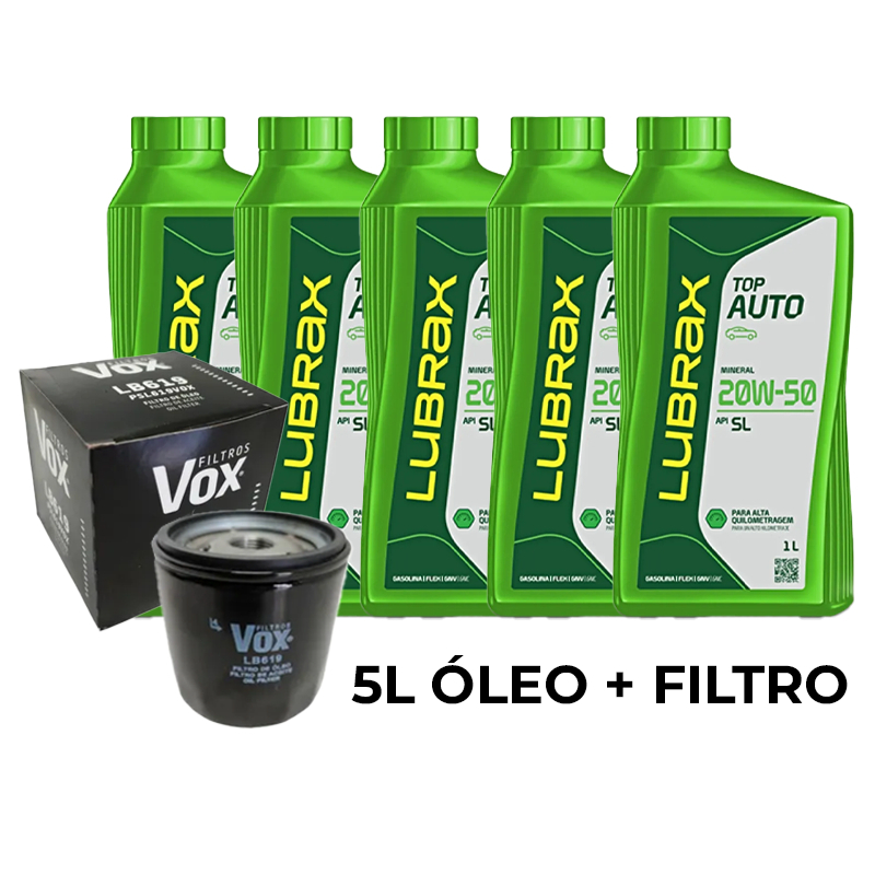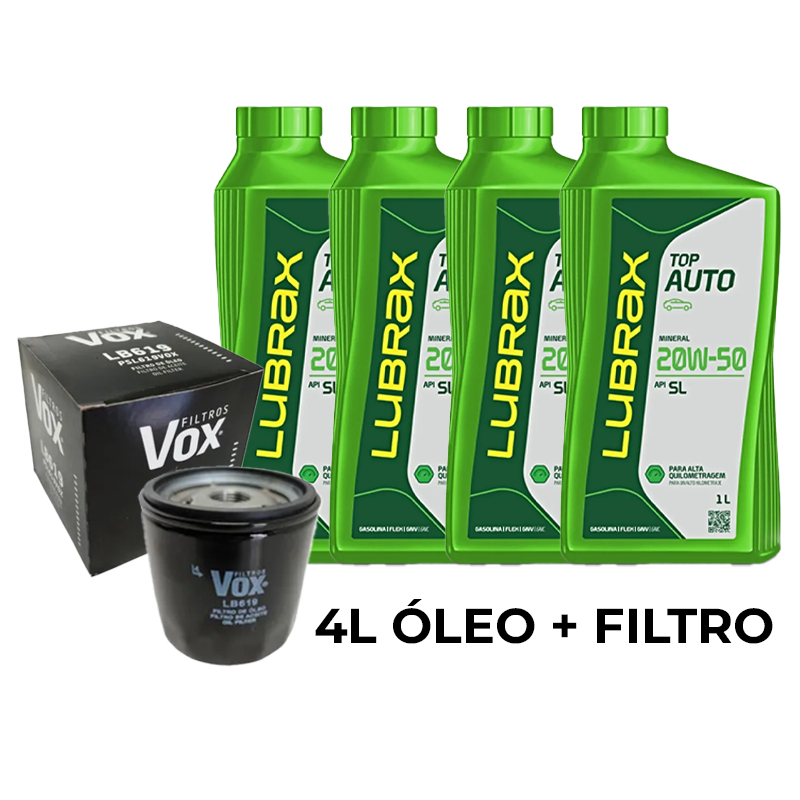 Kit Troca Universal de Óleo 20W50 SL Mineral Lubrax Top Auto 4 ou 5L + Filtro de Óleo NOVA EMBALAGEM