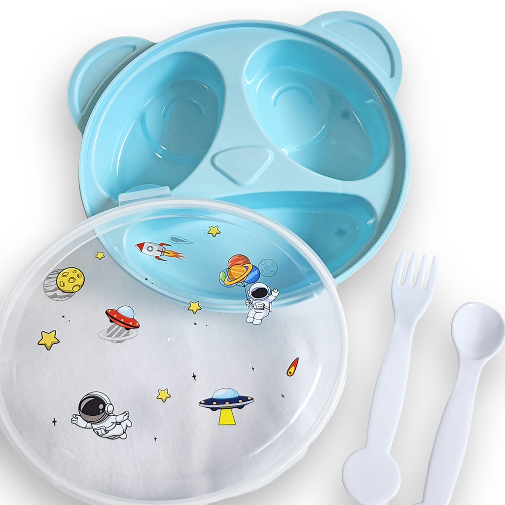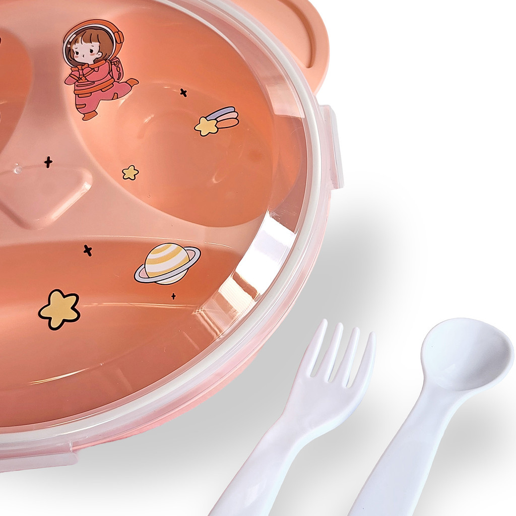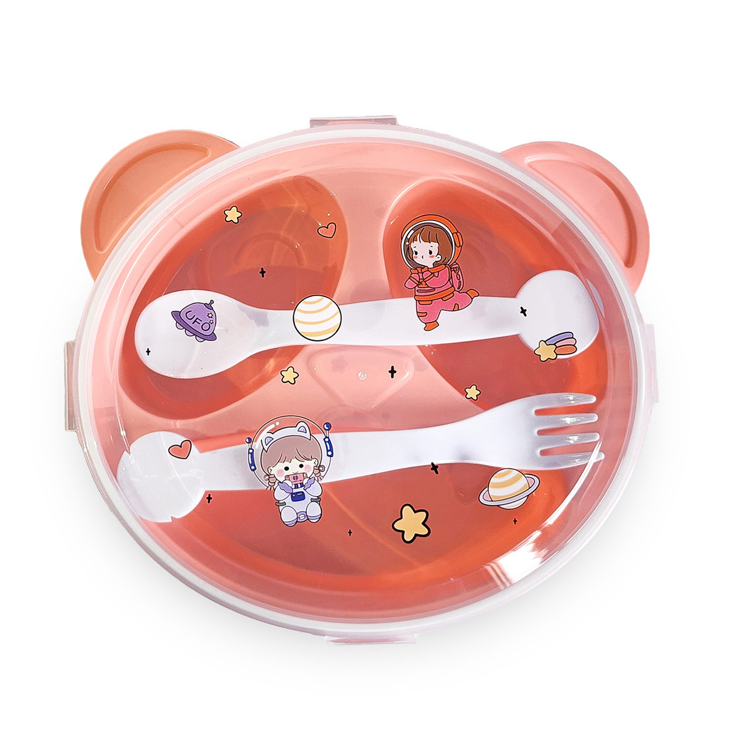 Marmita Infantil Redonda 3 Divisórias com Garfo e Colher Escolar Com Trava de Segurança
