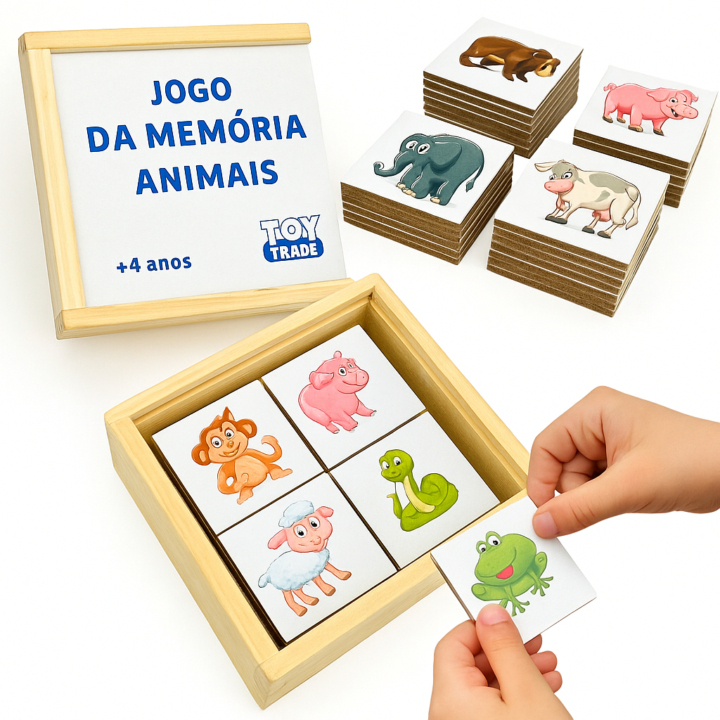Jogo da Memória Animais em Madeira Brinquedo Educativo Infantil 40 Peças