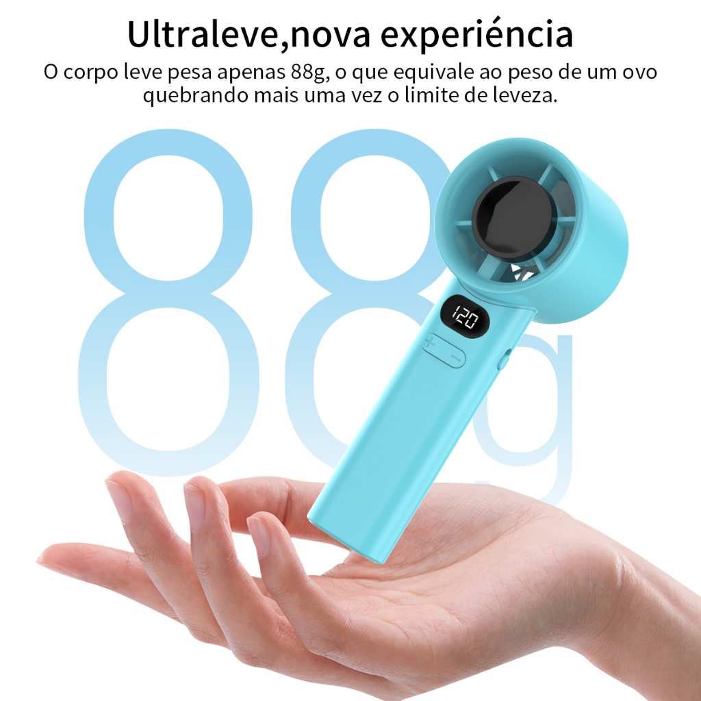 Ventilador Portátil Turbofan De 120 Velocidades Elétrico Recarregável USB Com Display Digital