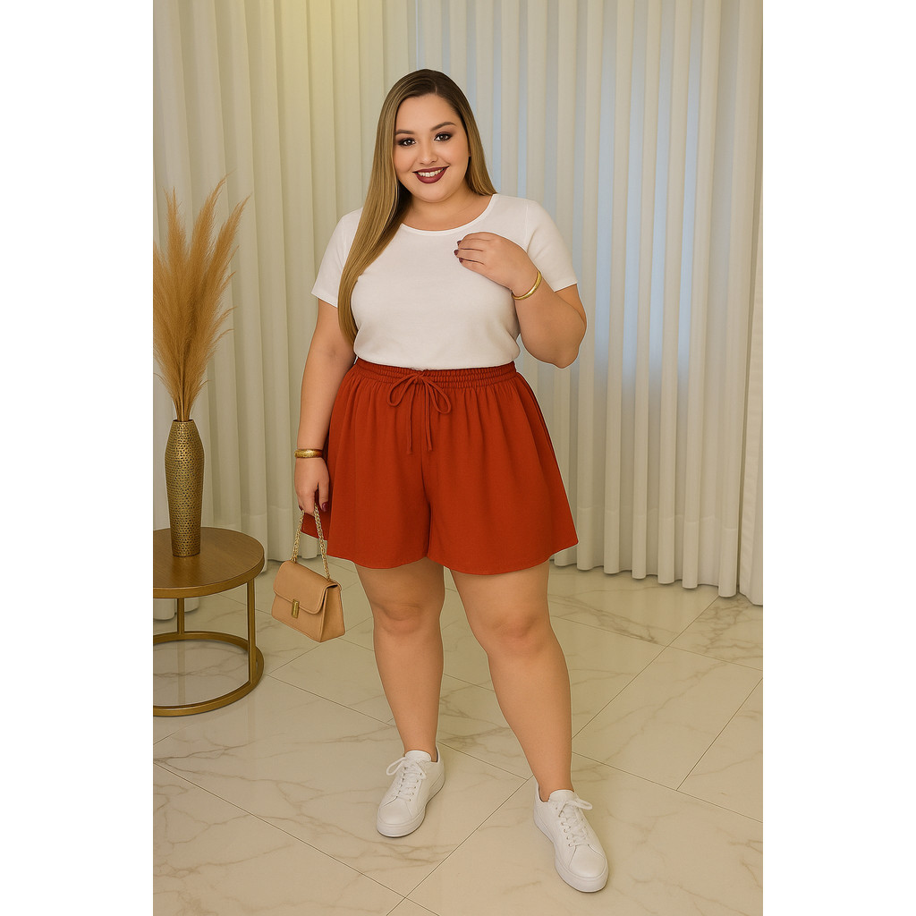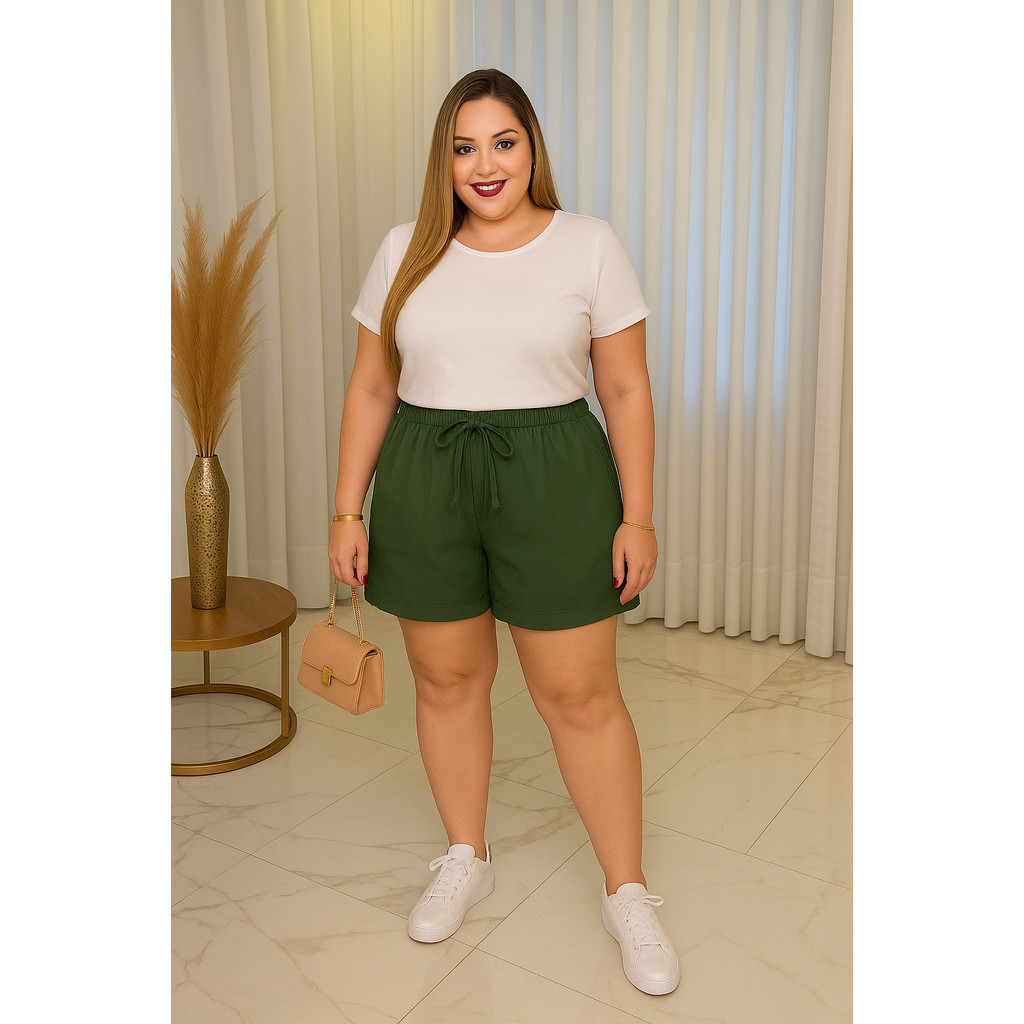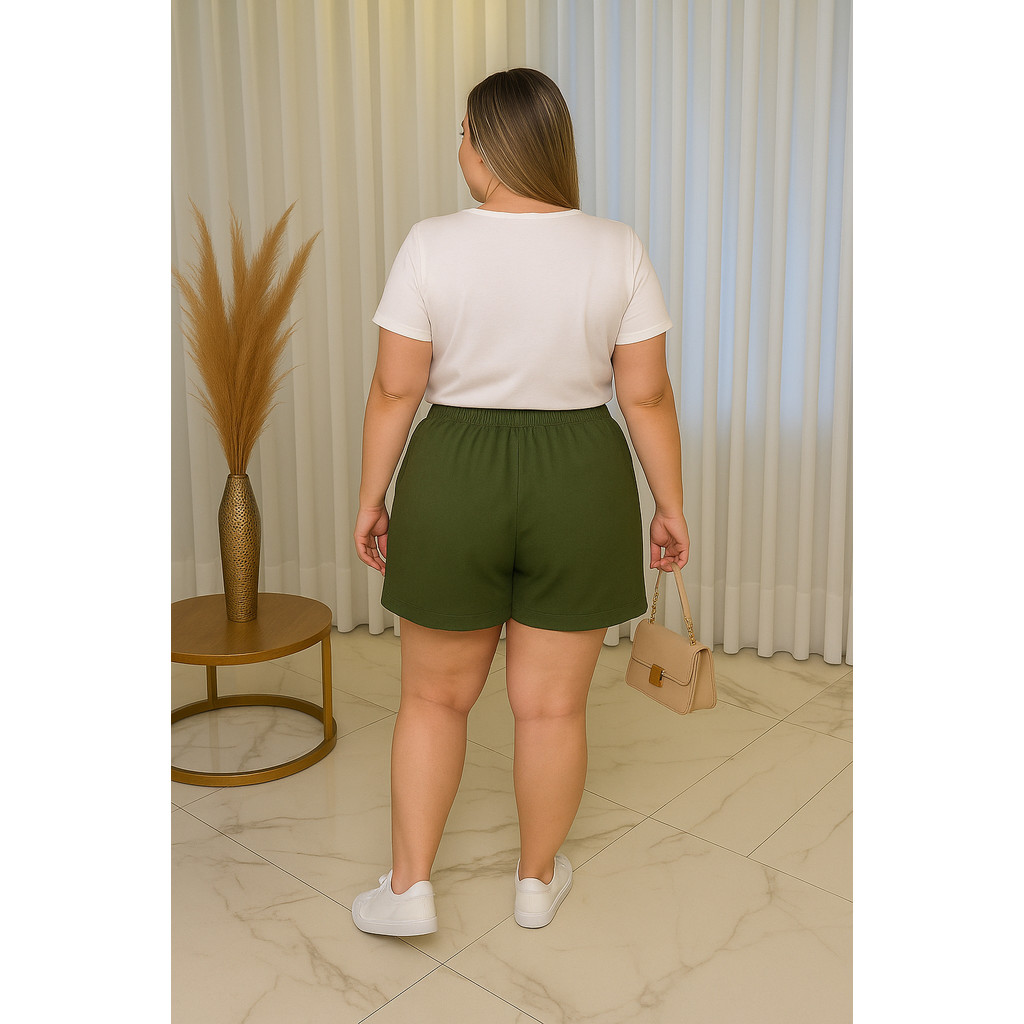Shorts Feminino Plus Size Com Bolso GG Ao G2 Cintura Alta Leve Godê