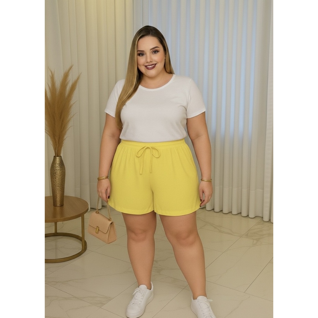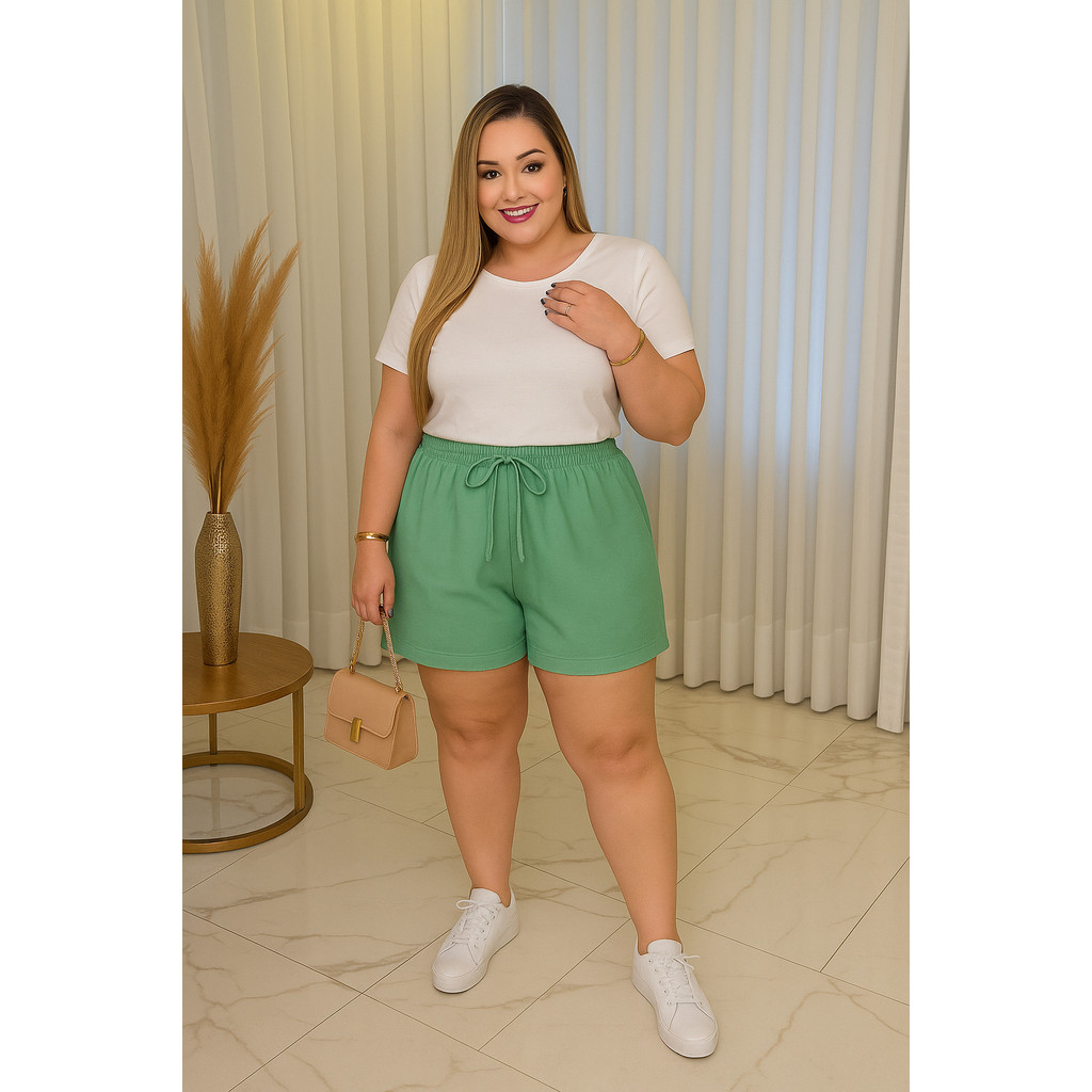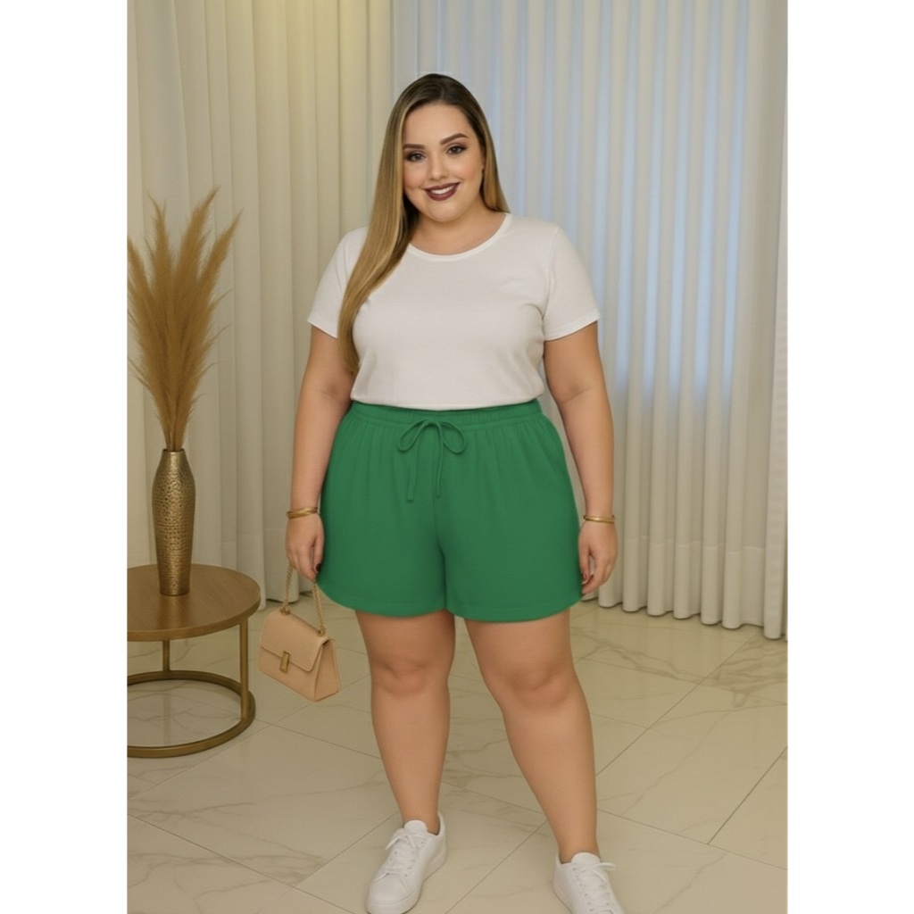 Shorts Feminino Plus Size Com Bolso GG Ao G2 Cintura Alta Leve Godê