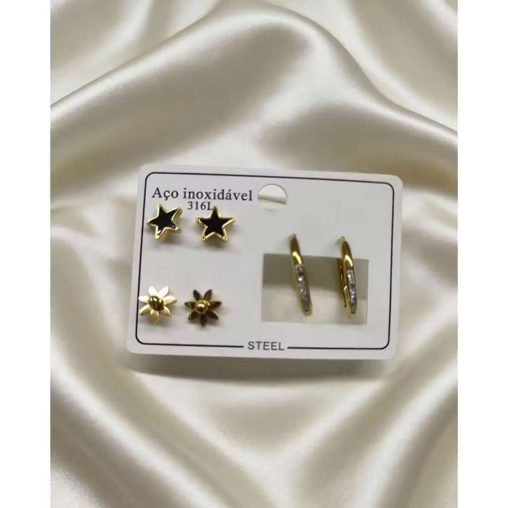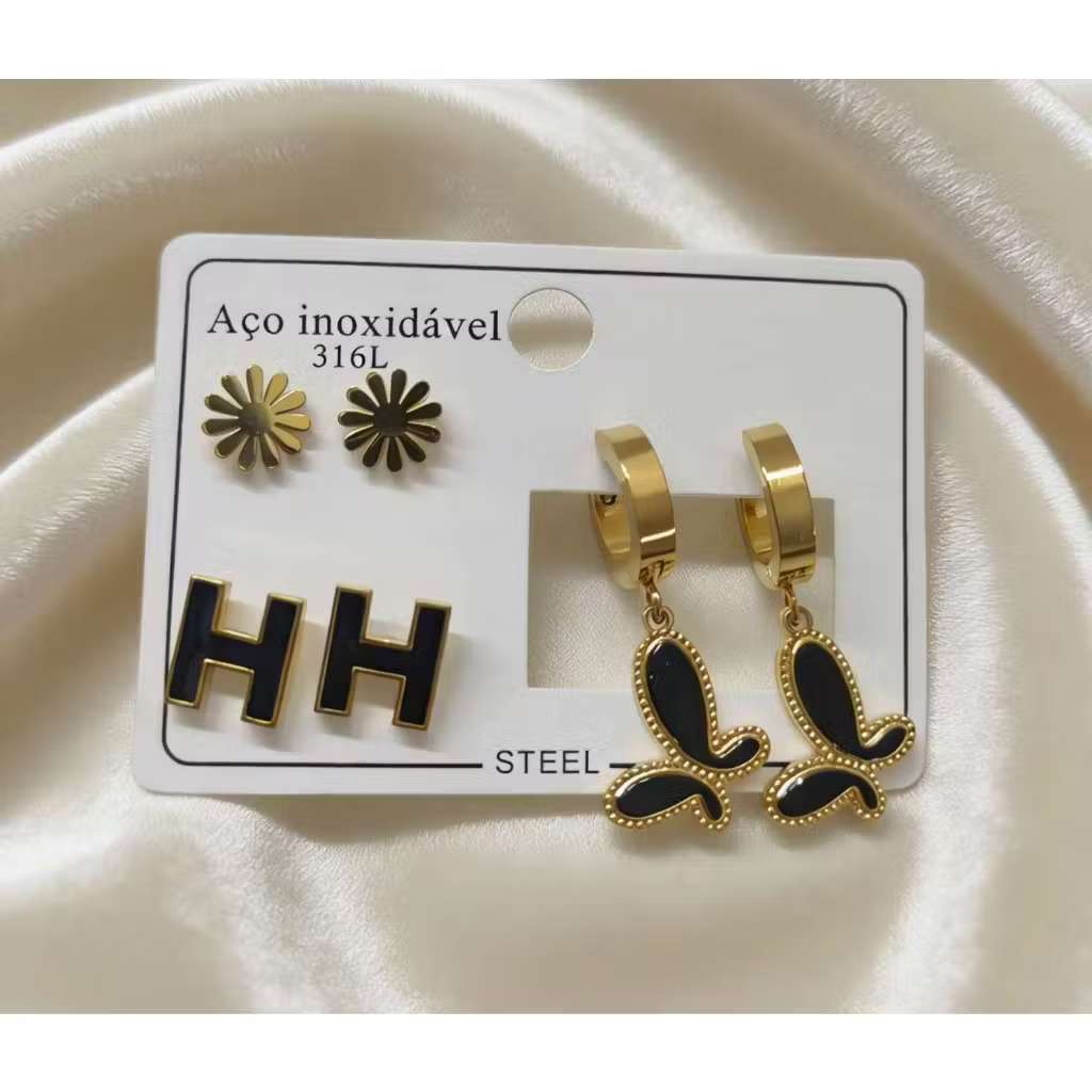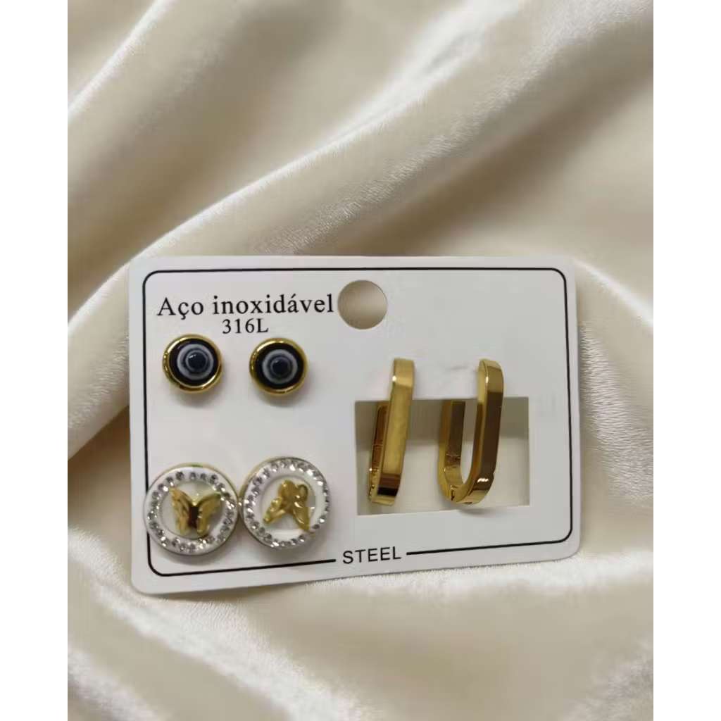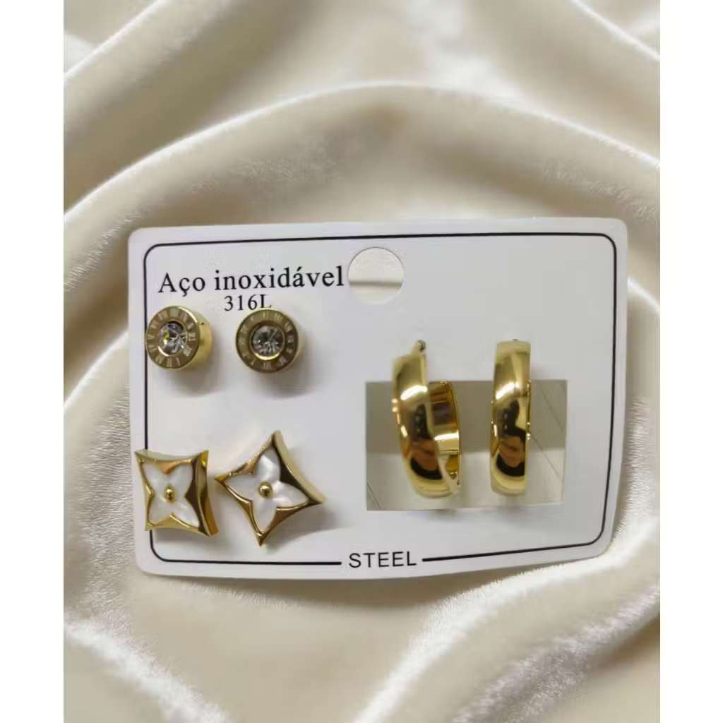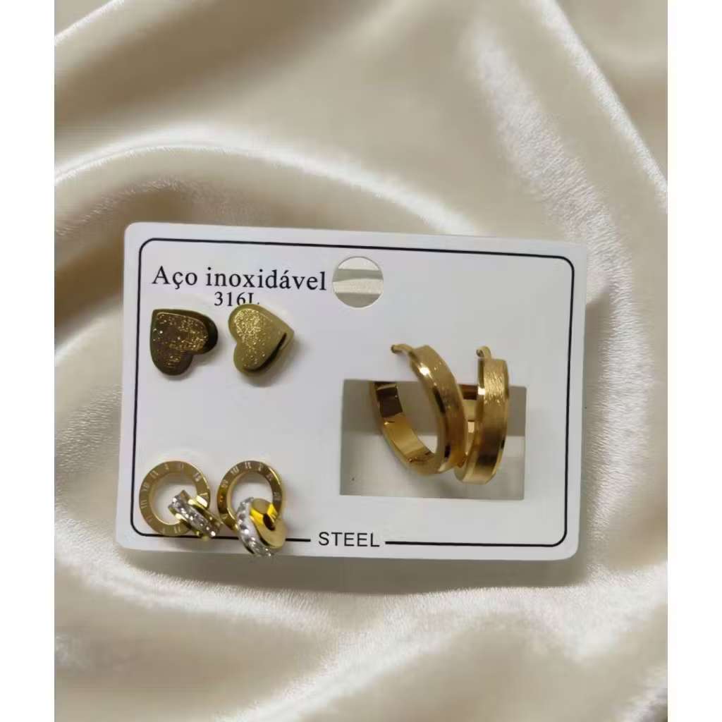 Conjunto De 3 Pares De Brincos Em Aço Inoxidável , Joias Simples Da Moda Para Mulheres