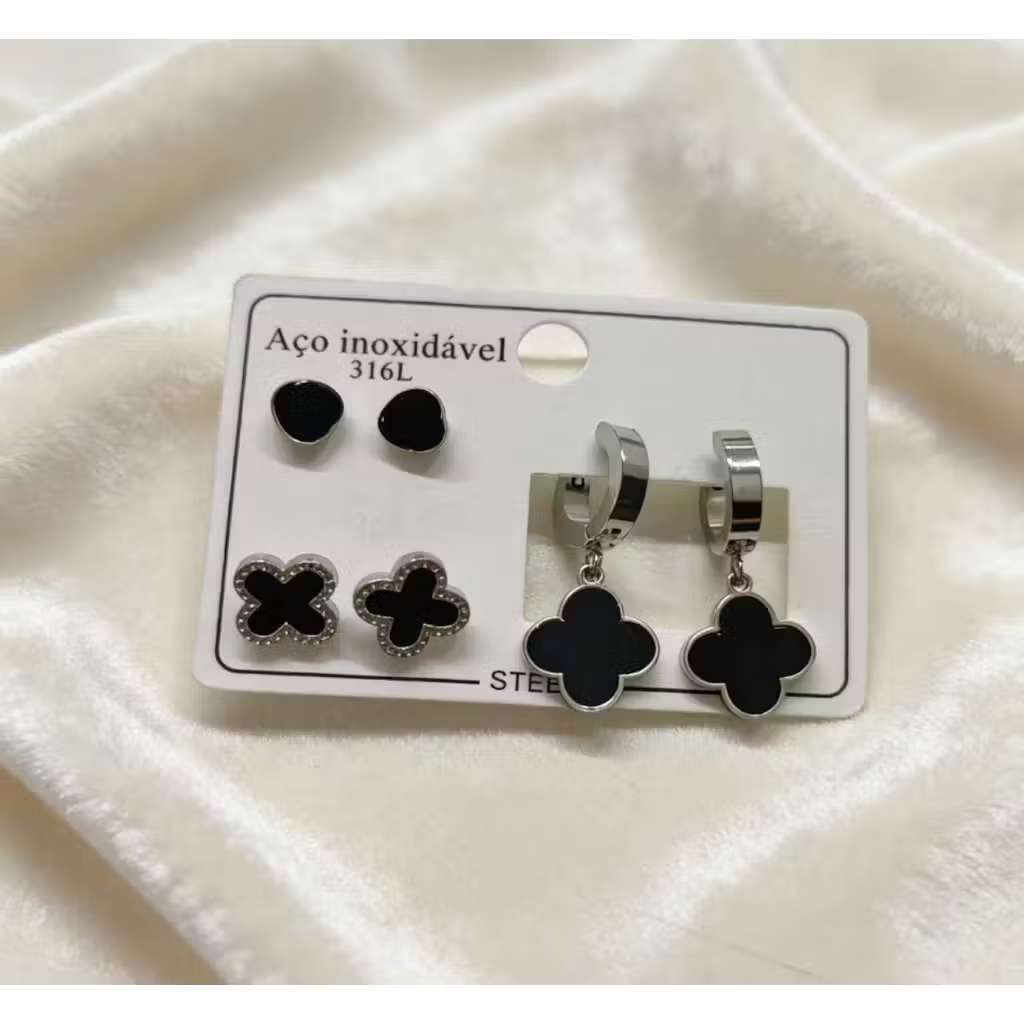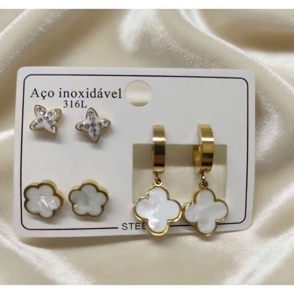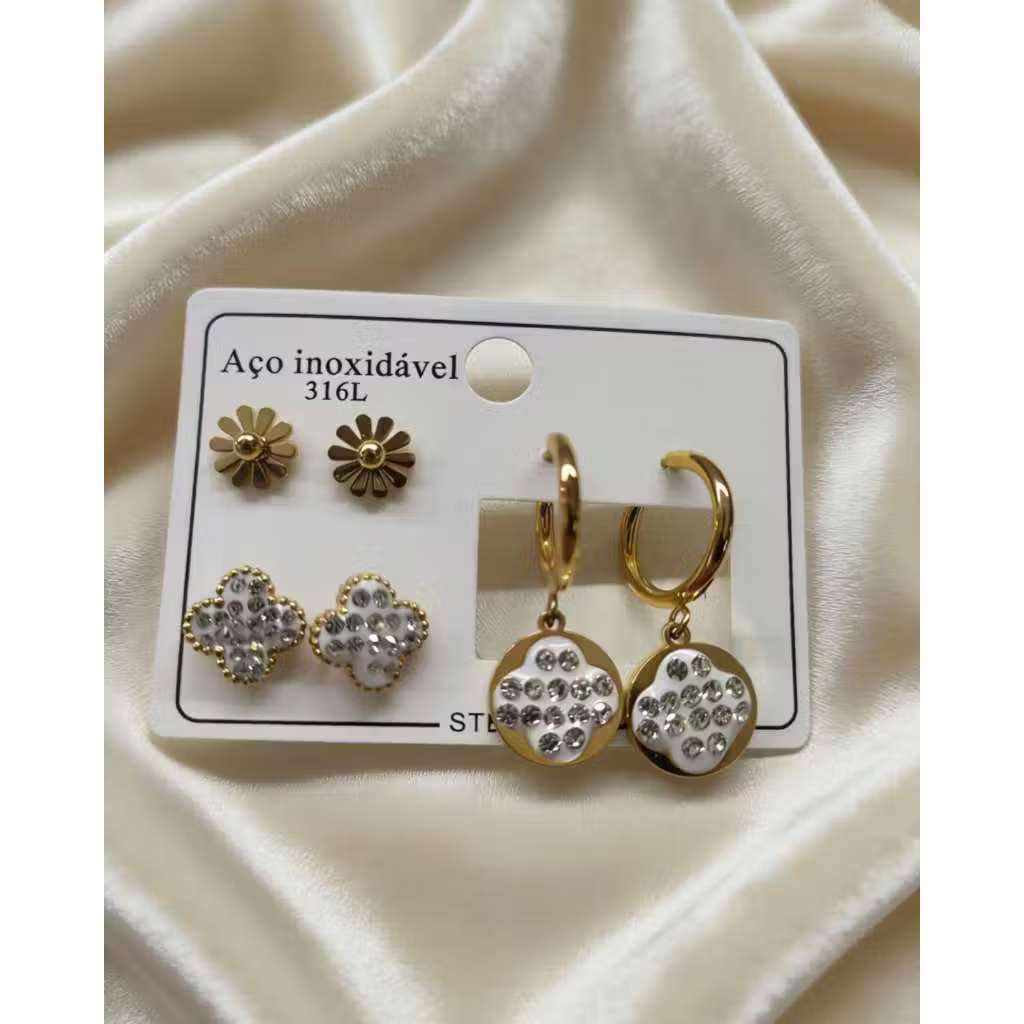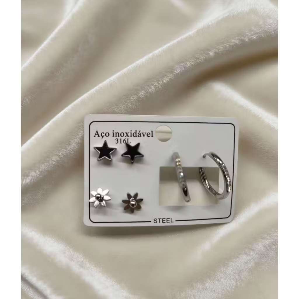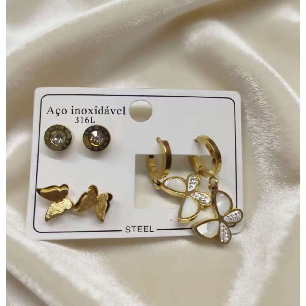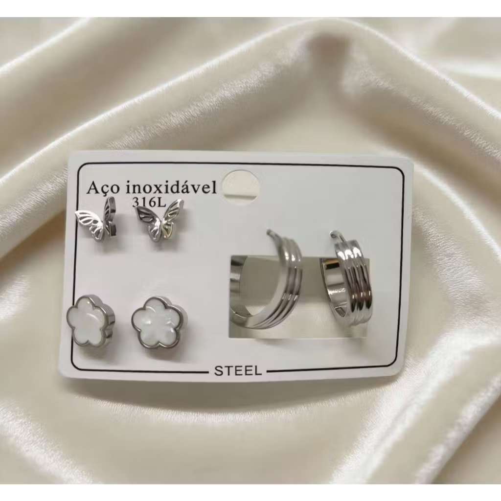 Conjunto De 3 Pares De Brincos Em Aço Inoxidável , Joias Simples Da Moda Para Mulheres