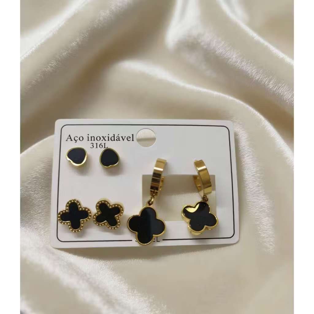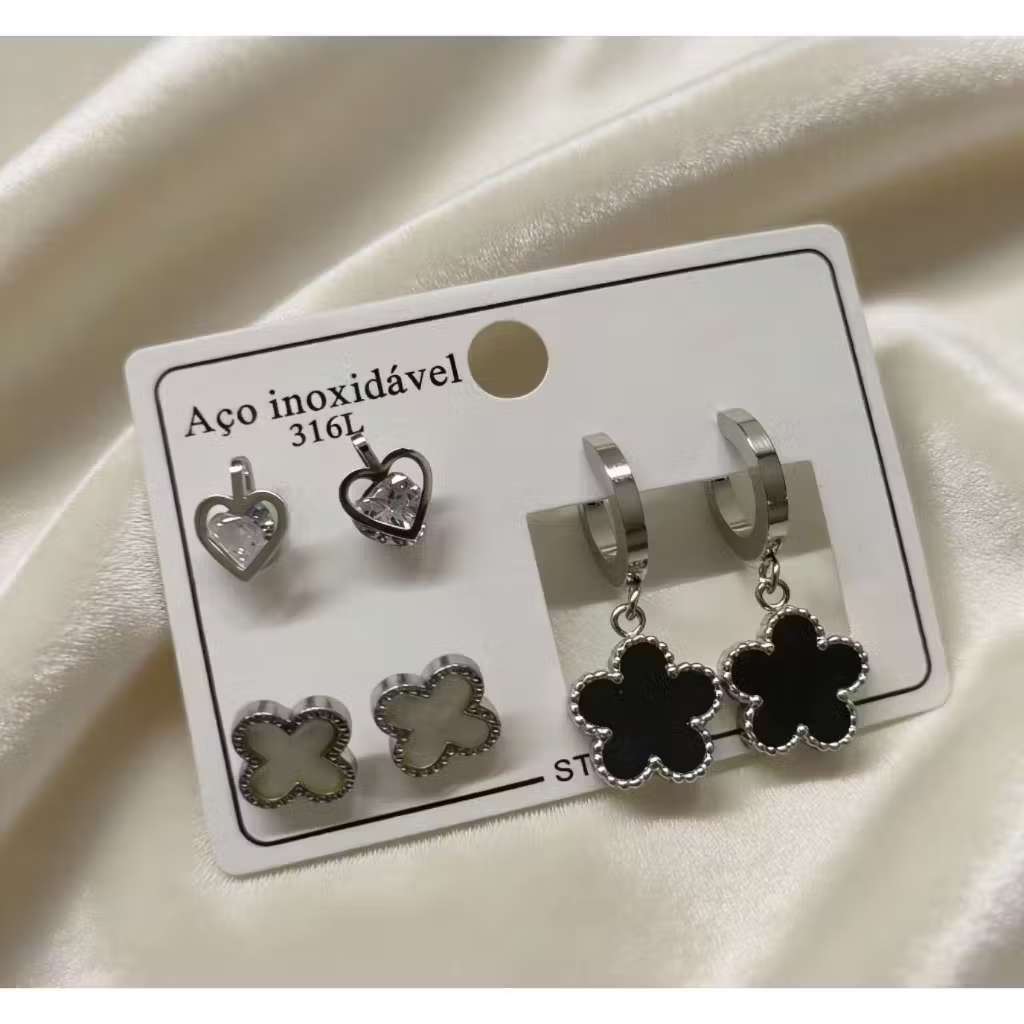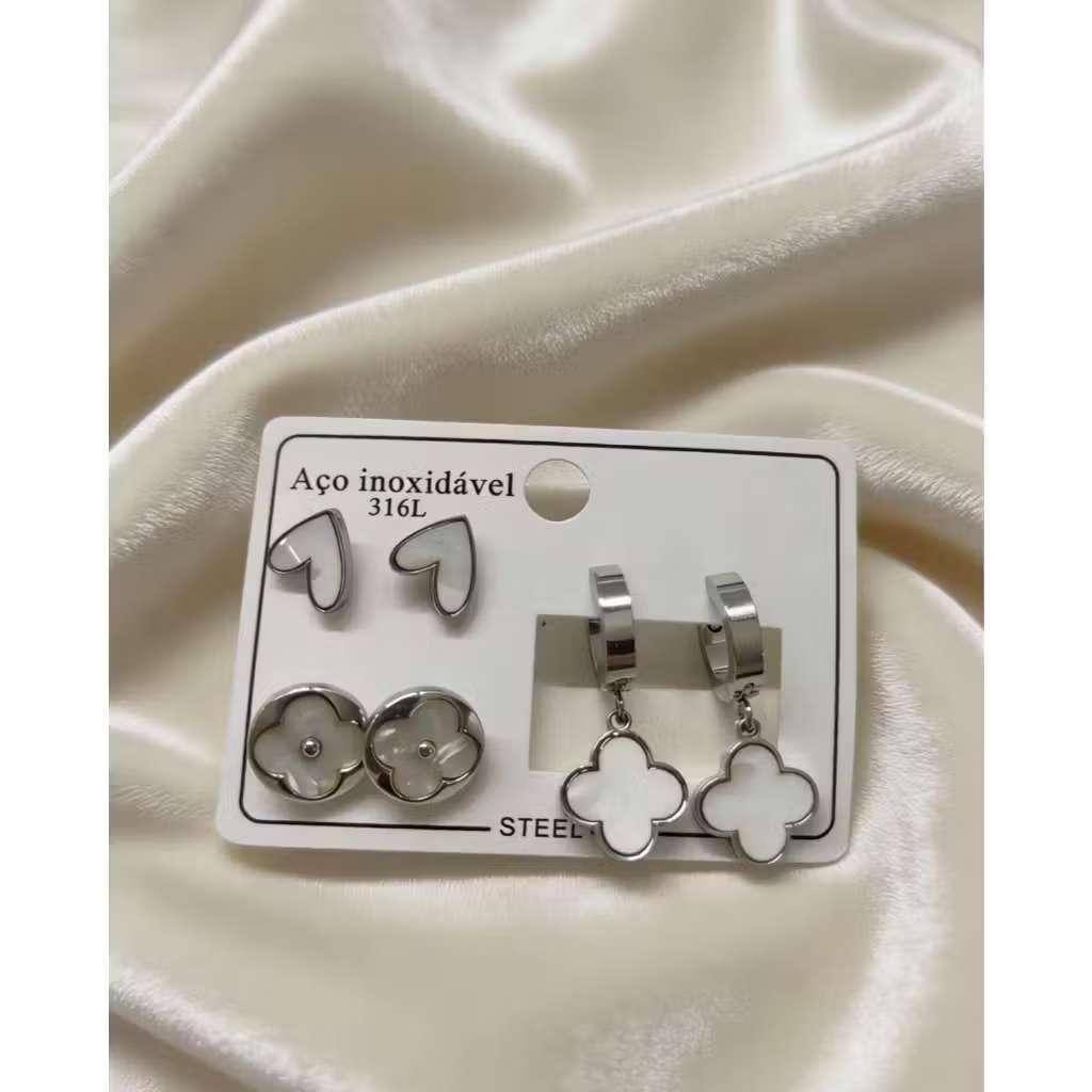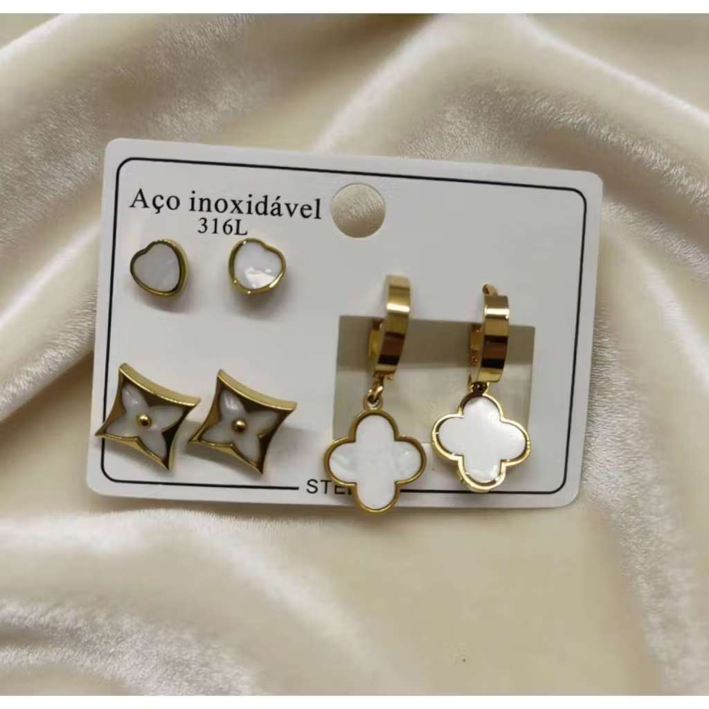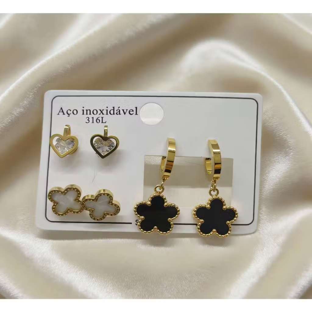 Conjunto De 3 Pares De Brincos Em Aço Inoxidável , Joias Simples Da Moda Para Mulheres