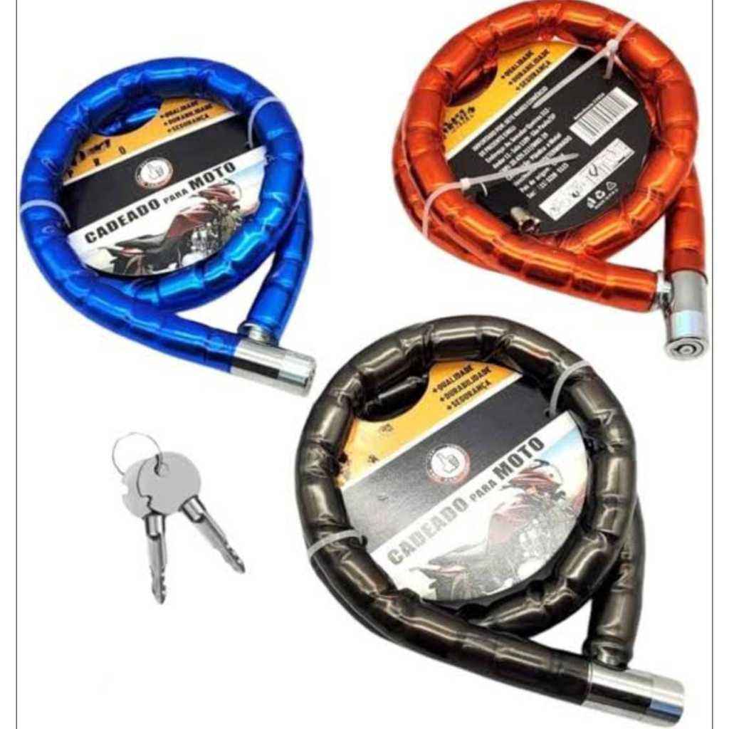 Trava Corrente Cadeado Para Trancar Travar Prender Bibibleta Bike Capacete Cabo De Aço Segurança Anti Roubo Furto Com Ch