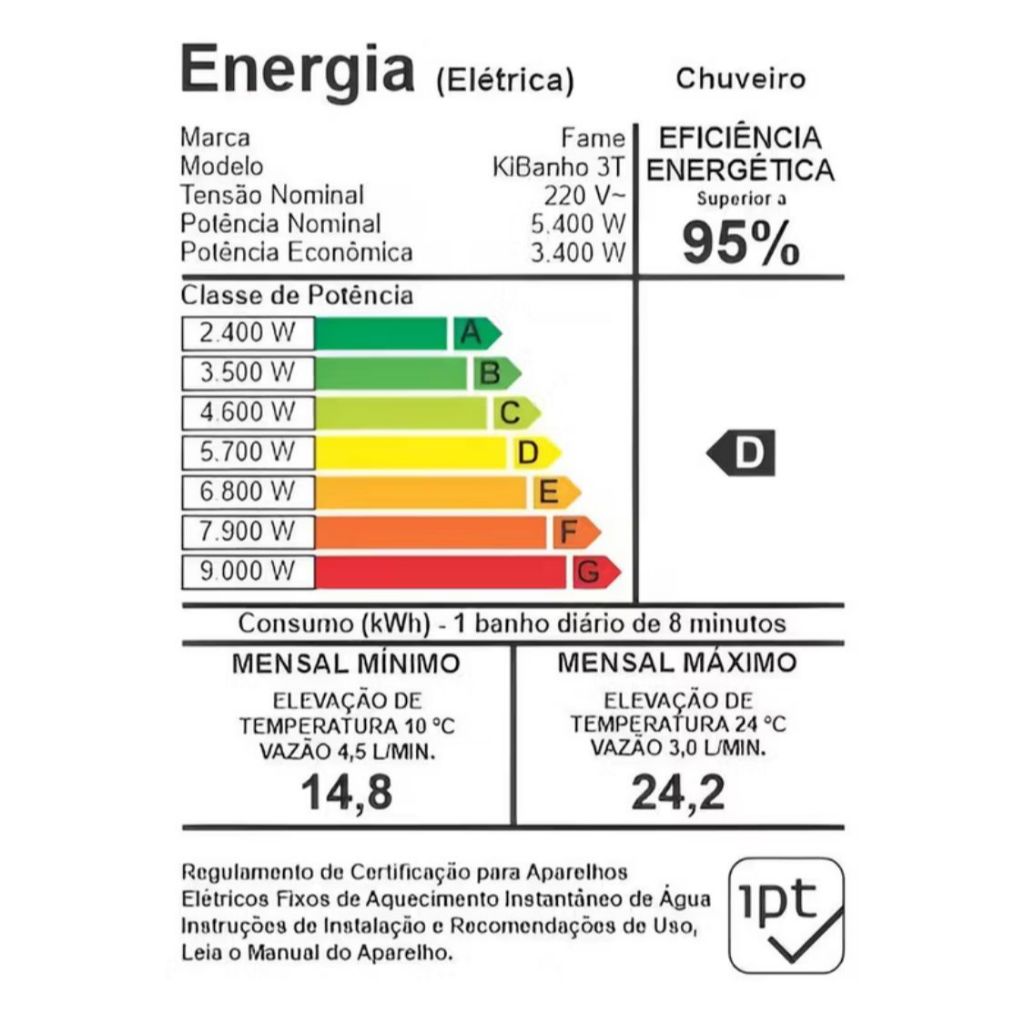 Chuveiro Ducha Kibanho 3T Fame 220v 5400w