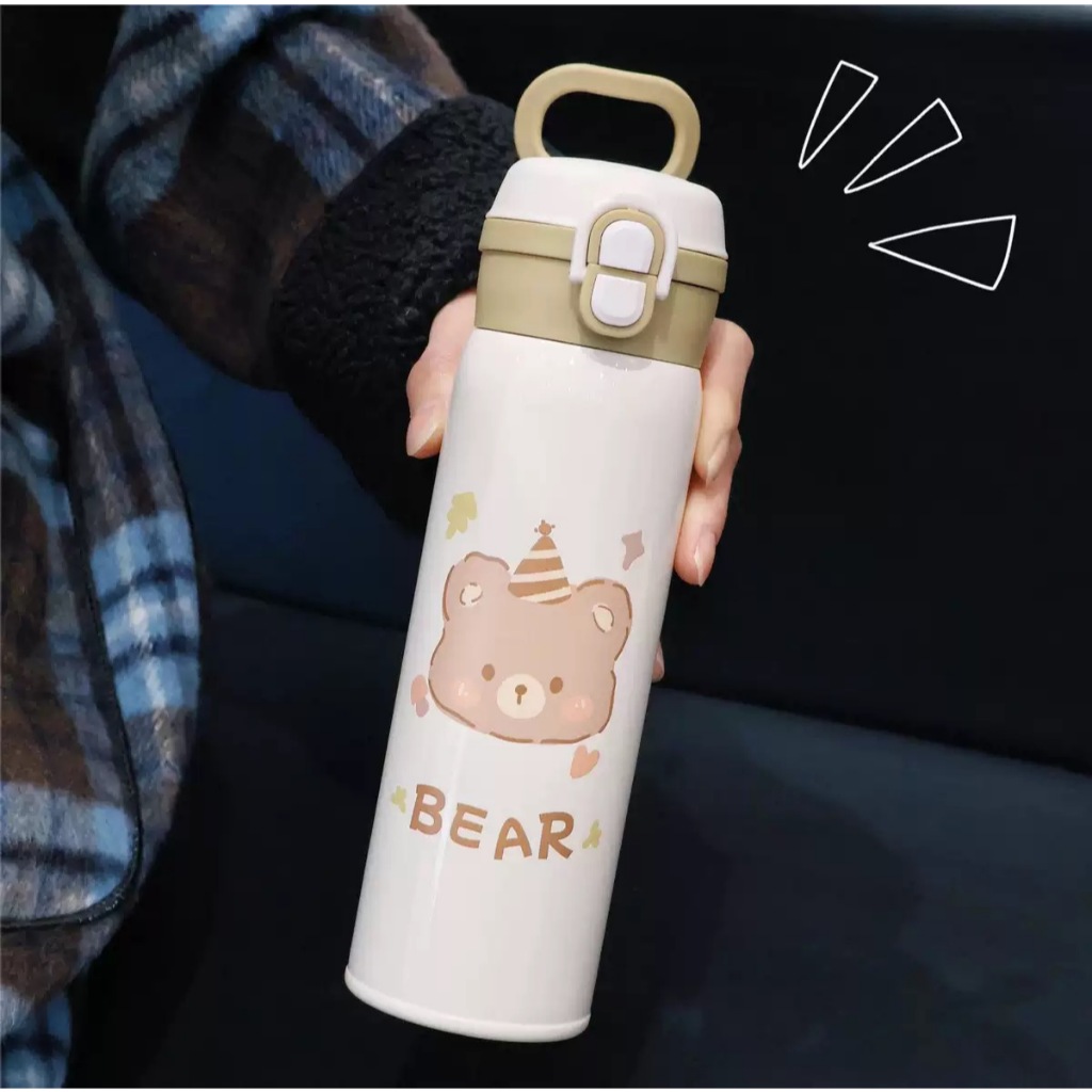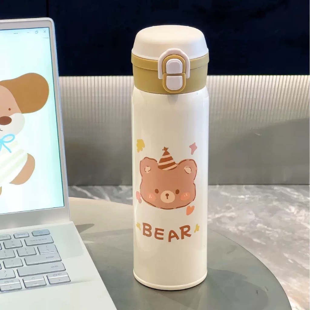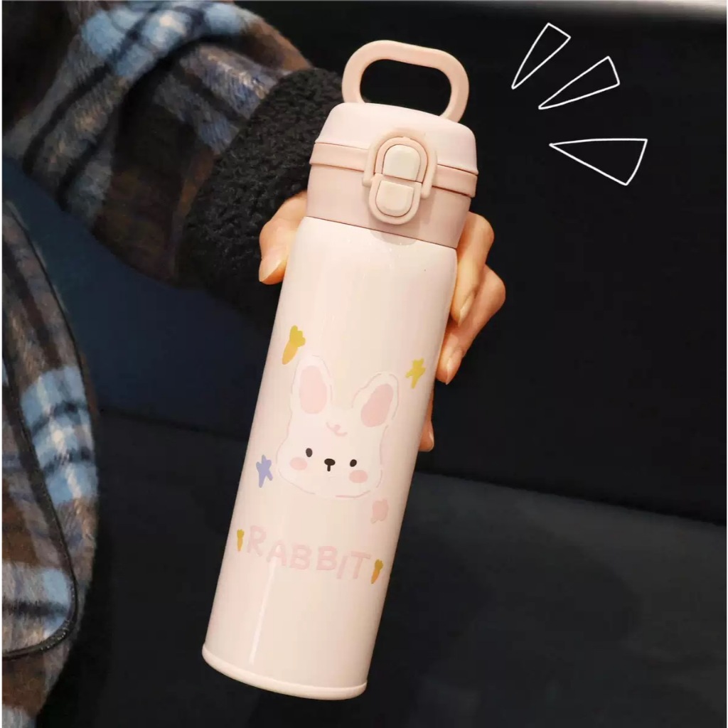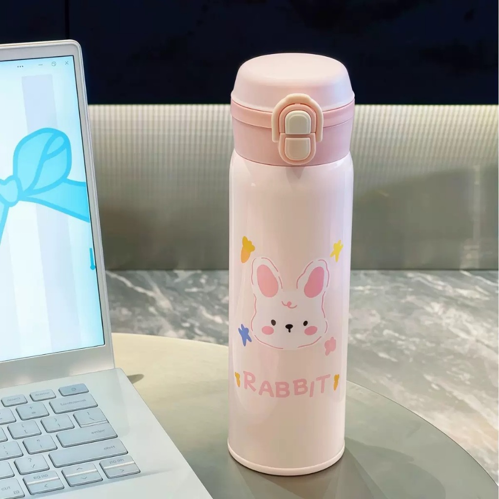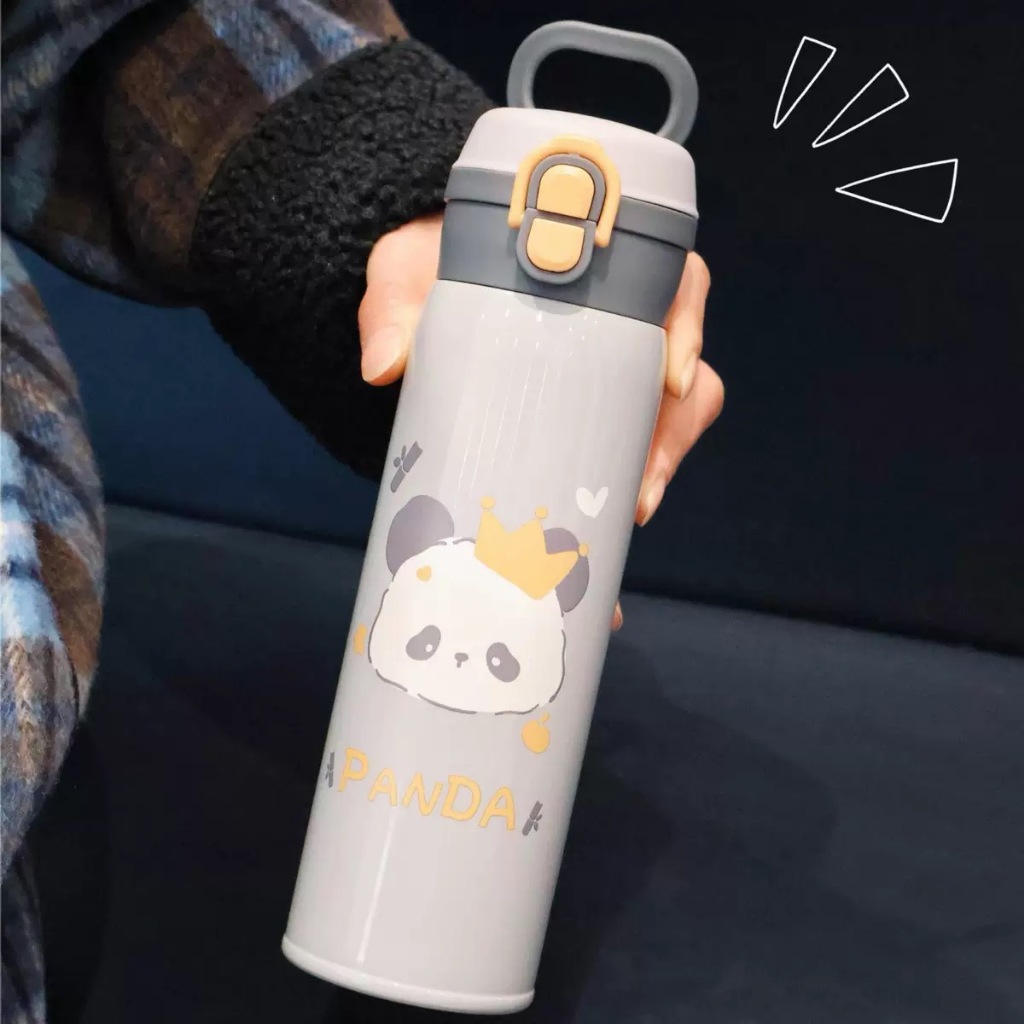 Garrafa Térmica Infantil Cute Panda Urso Coelho 500ml Copo Reutilizável com Tampa Antivazamento