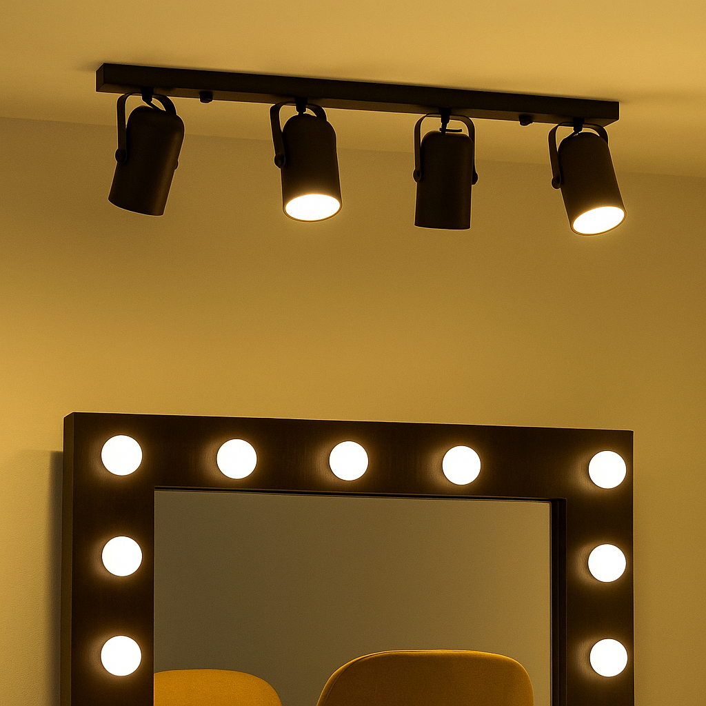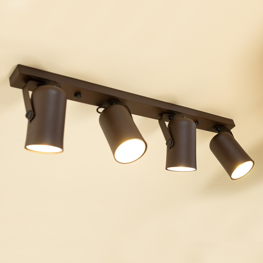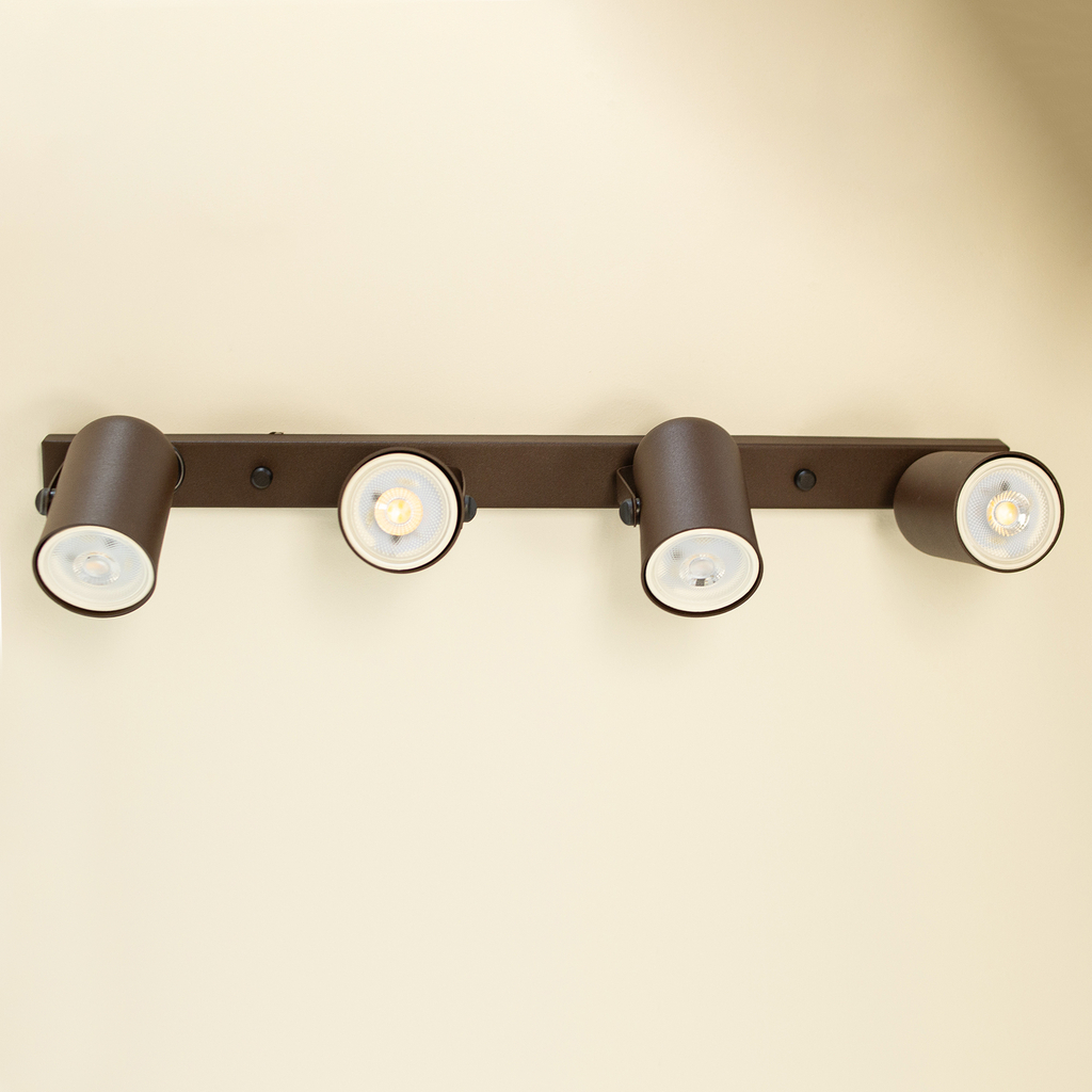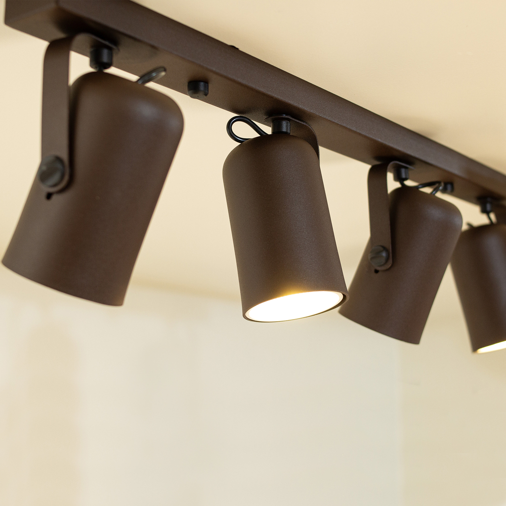 Trilho 4 Spots Direcionáveis Luminária Teto Marrom Sala