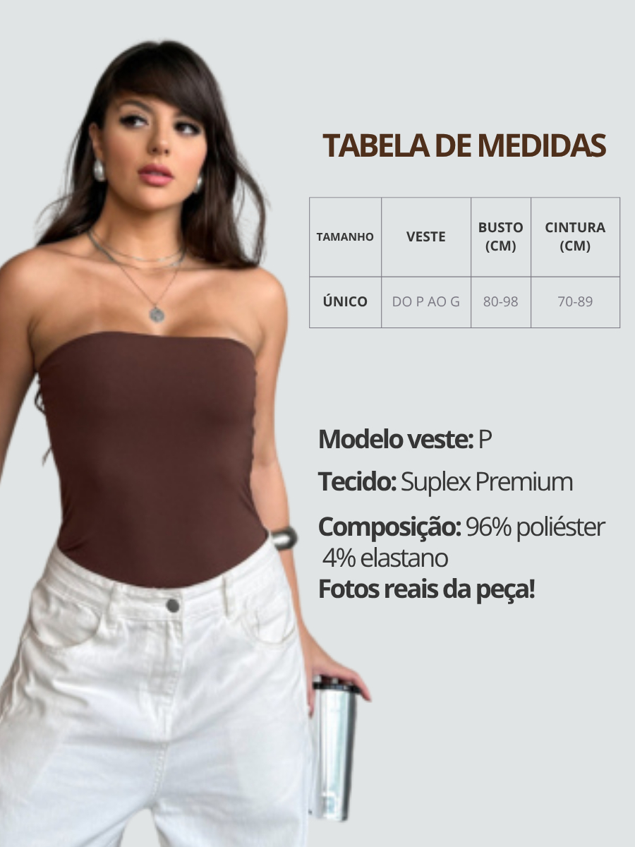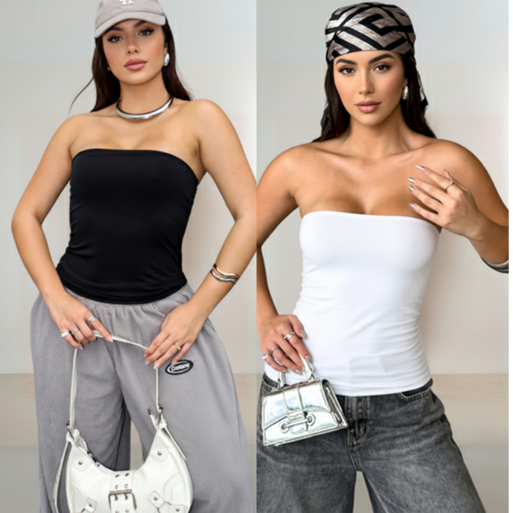 Kit 2 Tube Top Feminino Suplex Tomara que Caia Top Faixa Comprido, Todo Forrado Sem Transparência