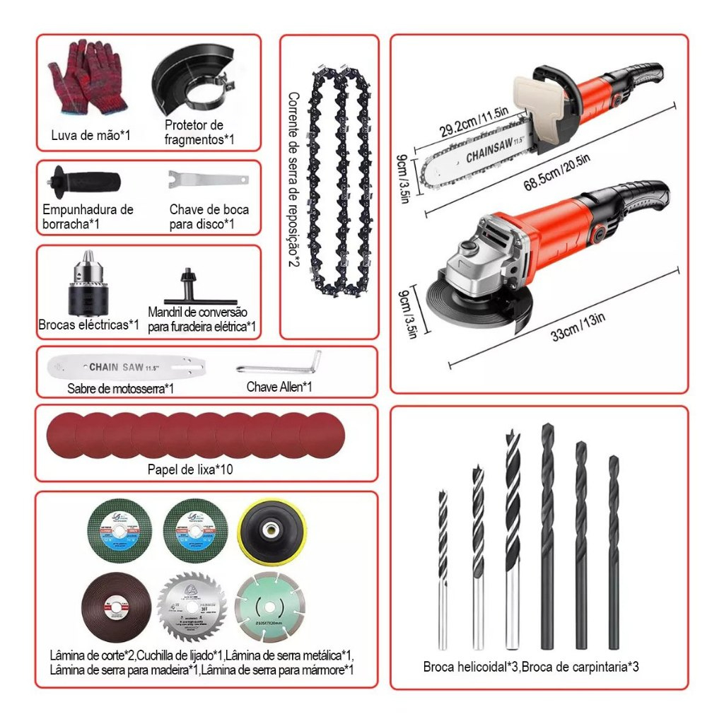 GM Bear Esmerilhadeira Angular 3 em 1 - Com Lixadeira, Furadeira e Motosserra, Versátil e Potente para Uso Profissional