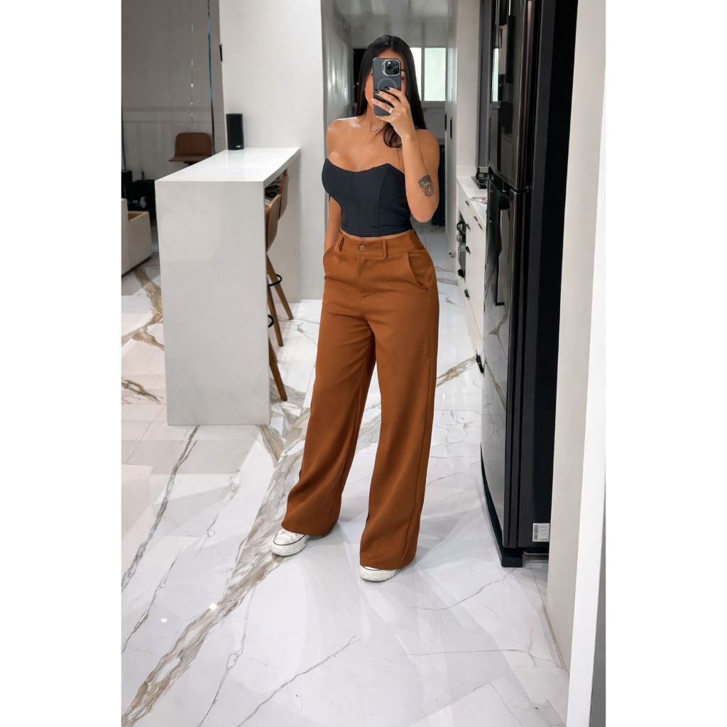 Calça Pantalona Feminina Alfaiataria Premium com Bolso Cintura Alta Elegante Social |Promoção| 1