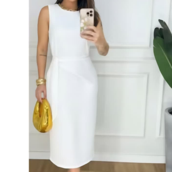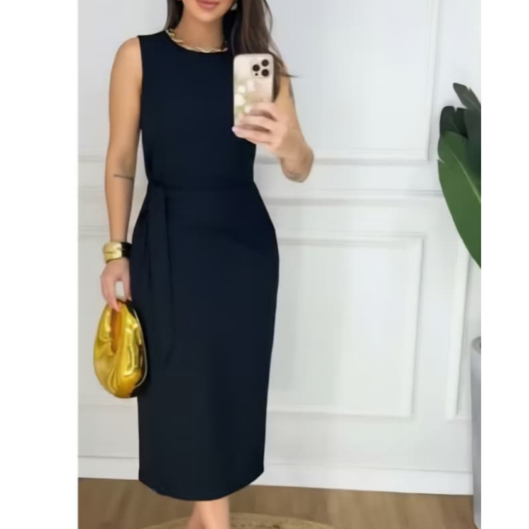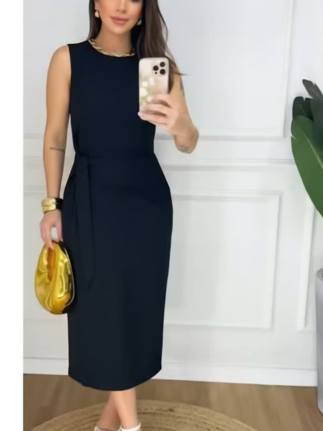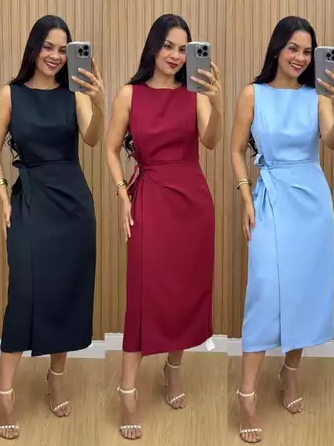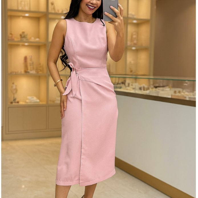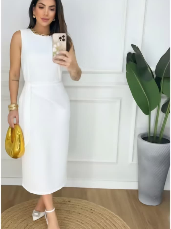 Vestido Femenino Mide de Alfaiataria Premium • Amarração Lateral • Modelagem Elegante • Moda 2026