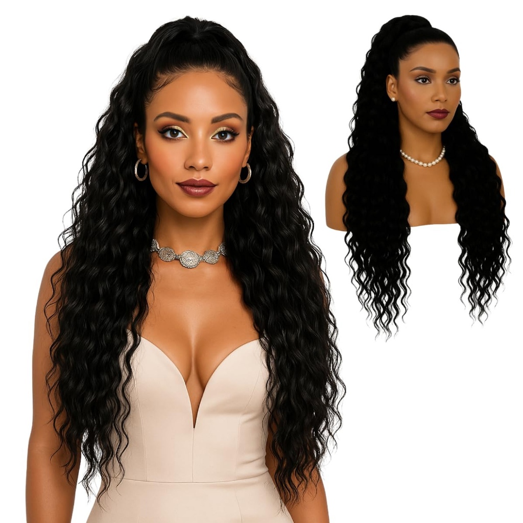 100CM Aplique Rabo De Cavalo Bio Fibra Cacheado