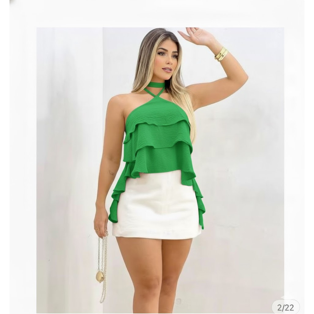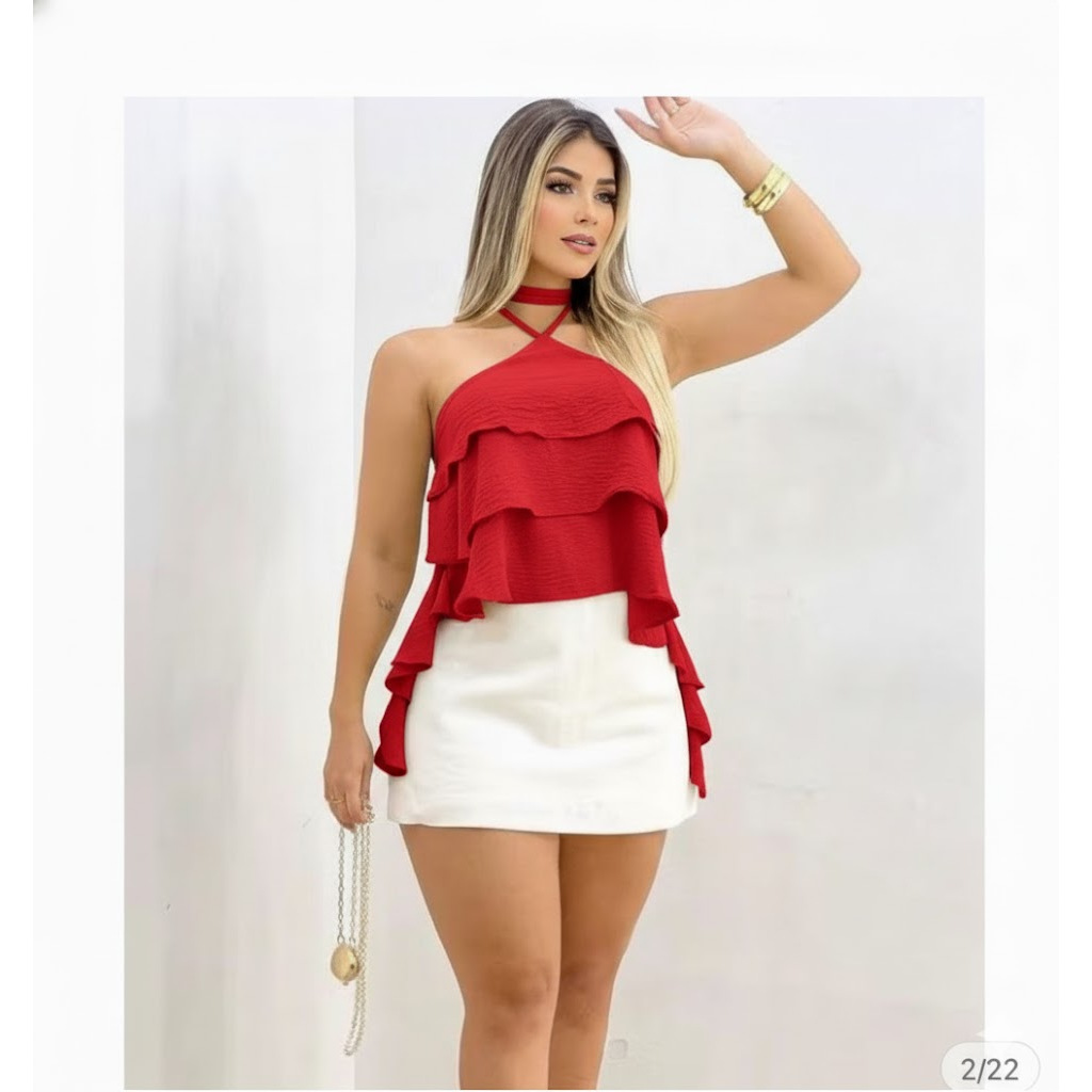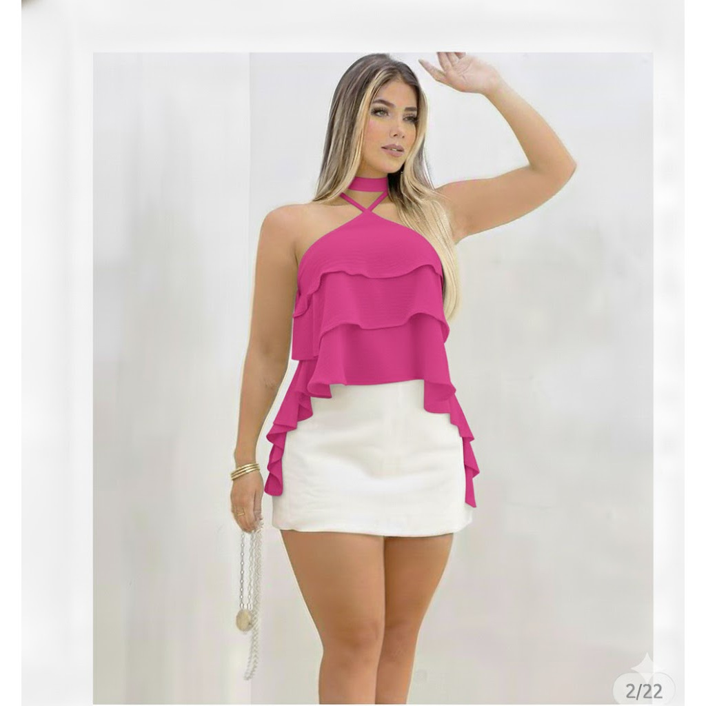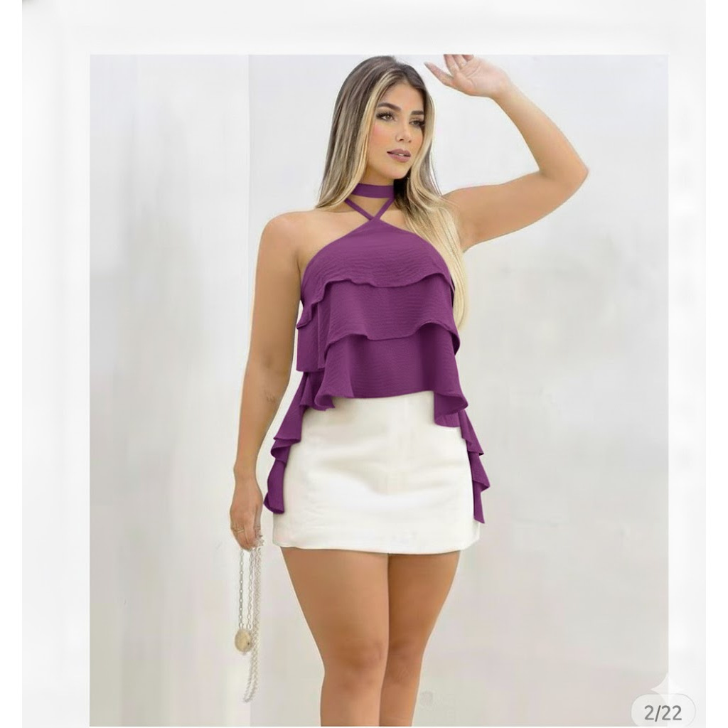 Blusa Cropped Bata Soltinha com Babado em Camadas - Estilo Boho / Ciganinha