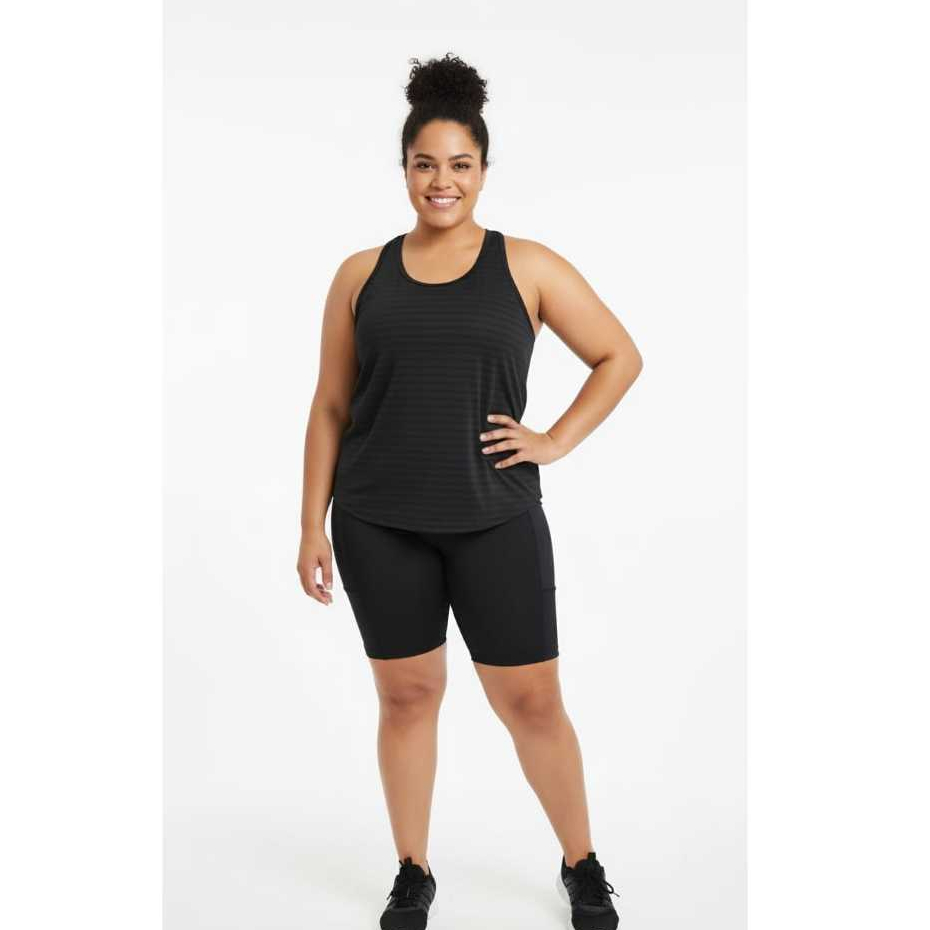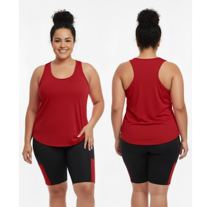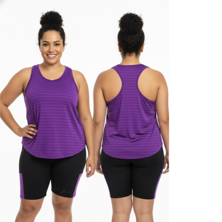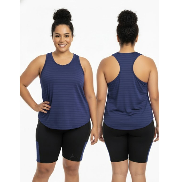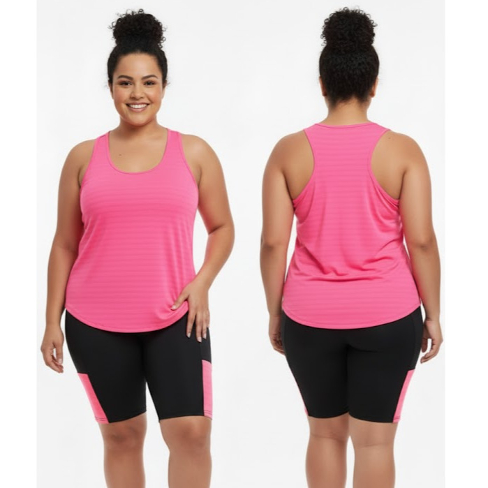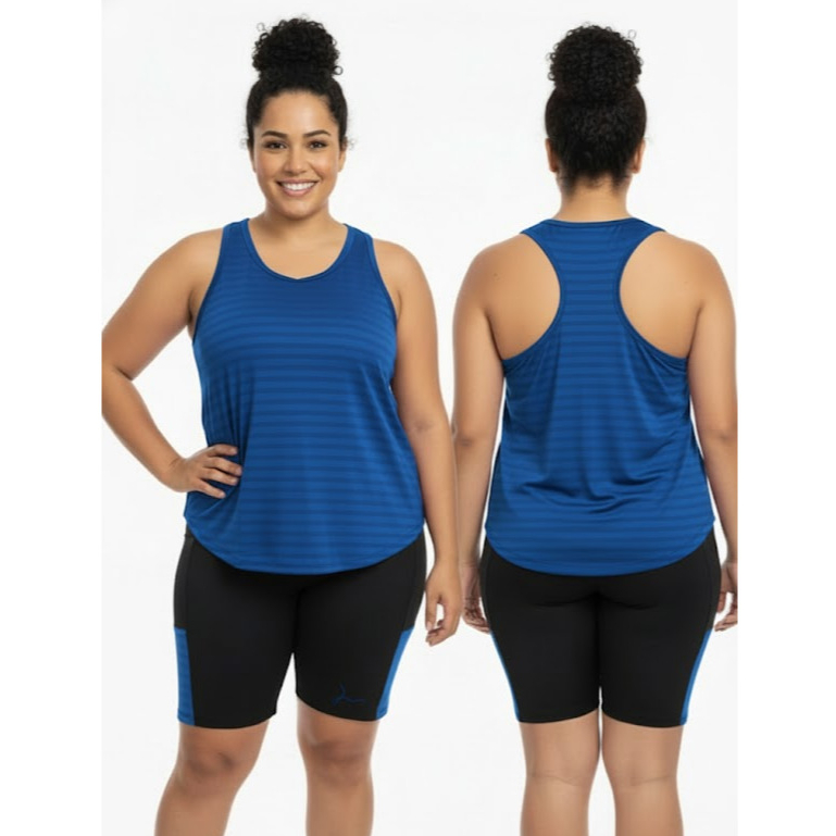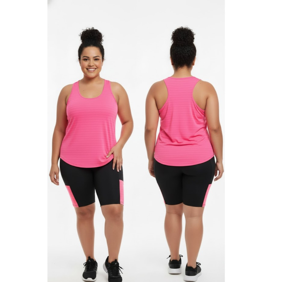Conjunto Fitness Plus Size Premium: Regata Dry Premium Respirável e Short Suplex Liso Cós Alto C/ Bolso