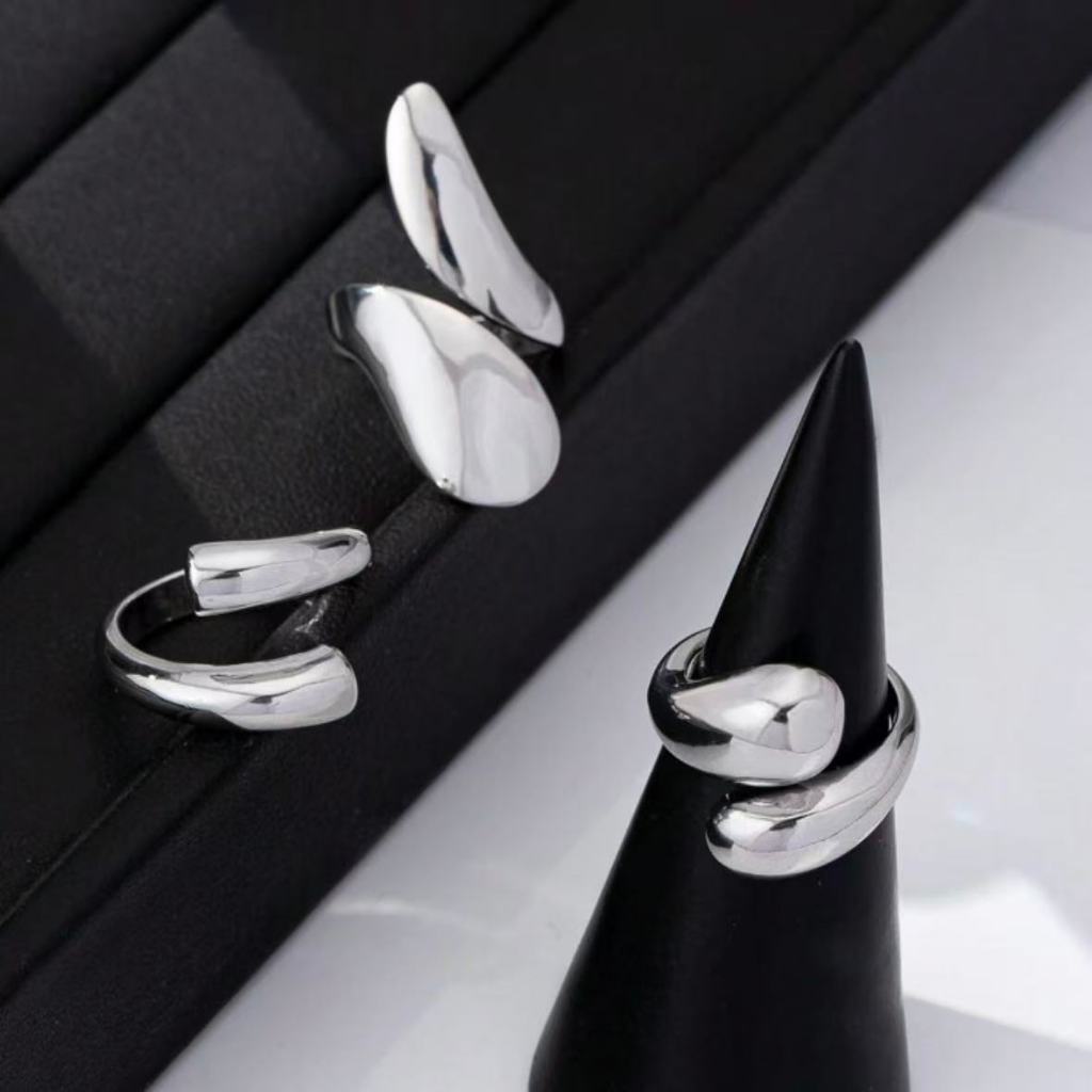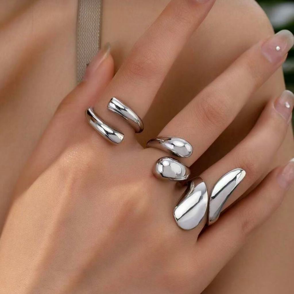 Kit 3 Anéis Femininos Irregulares Modernos Ajustável Banhados a Ouro 18K e prata 925