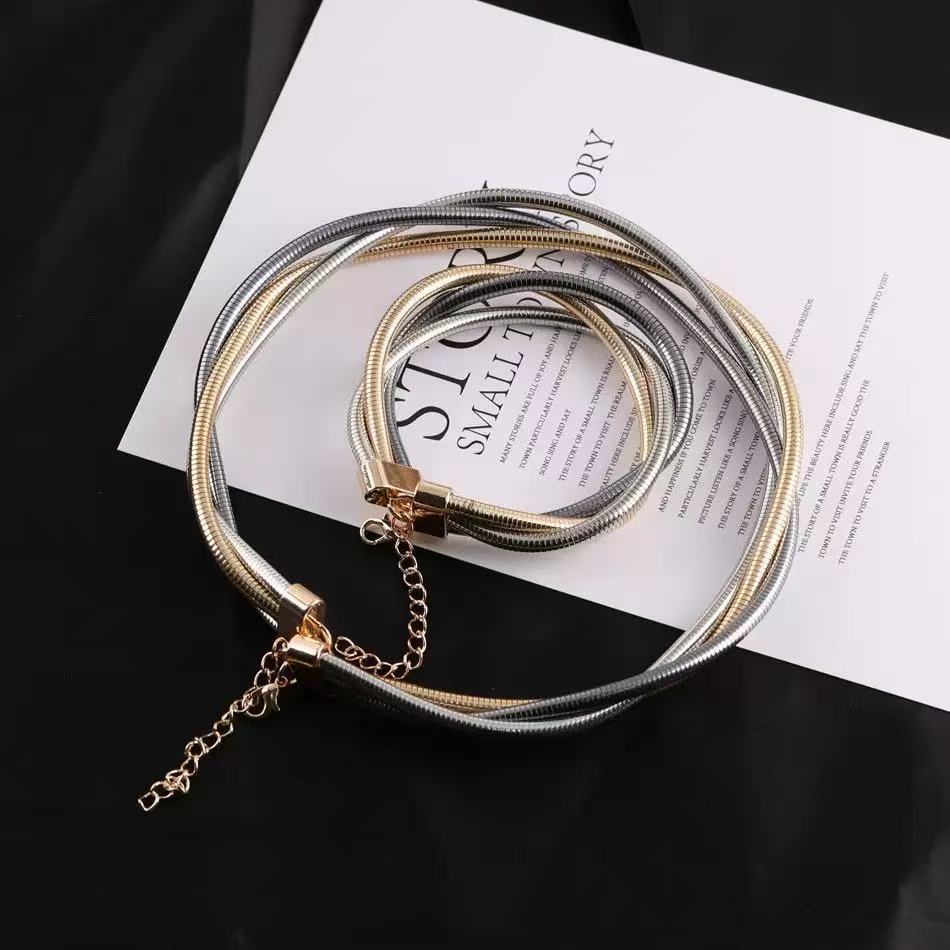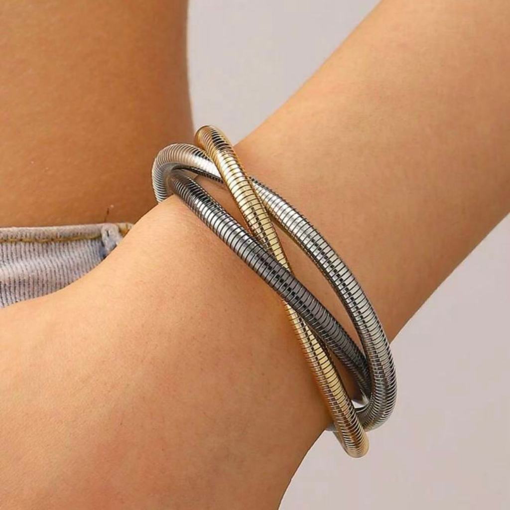 Kit Colar + Pulseira Cobra Dobrável - Gargantilha Giratória em Liga Punk Dourada, Pulseira Flexível (Design Único)