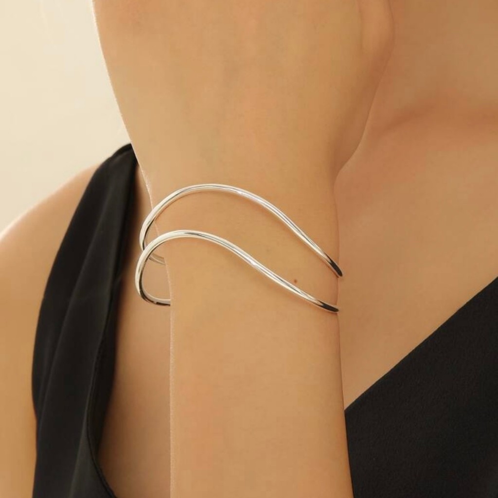 Bracelete Feminino Duplo Ondulado Ajustável – Pulseira Moderna Minimalista Banhada a Ouro 18K e Prata 925 Elegante