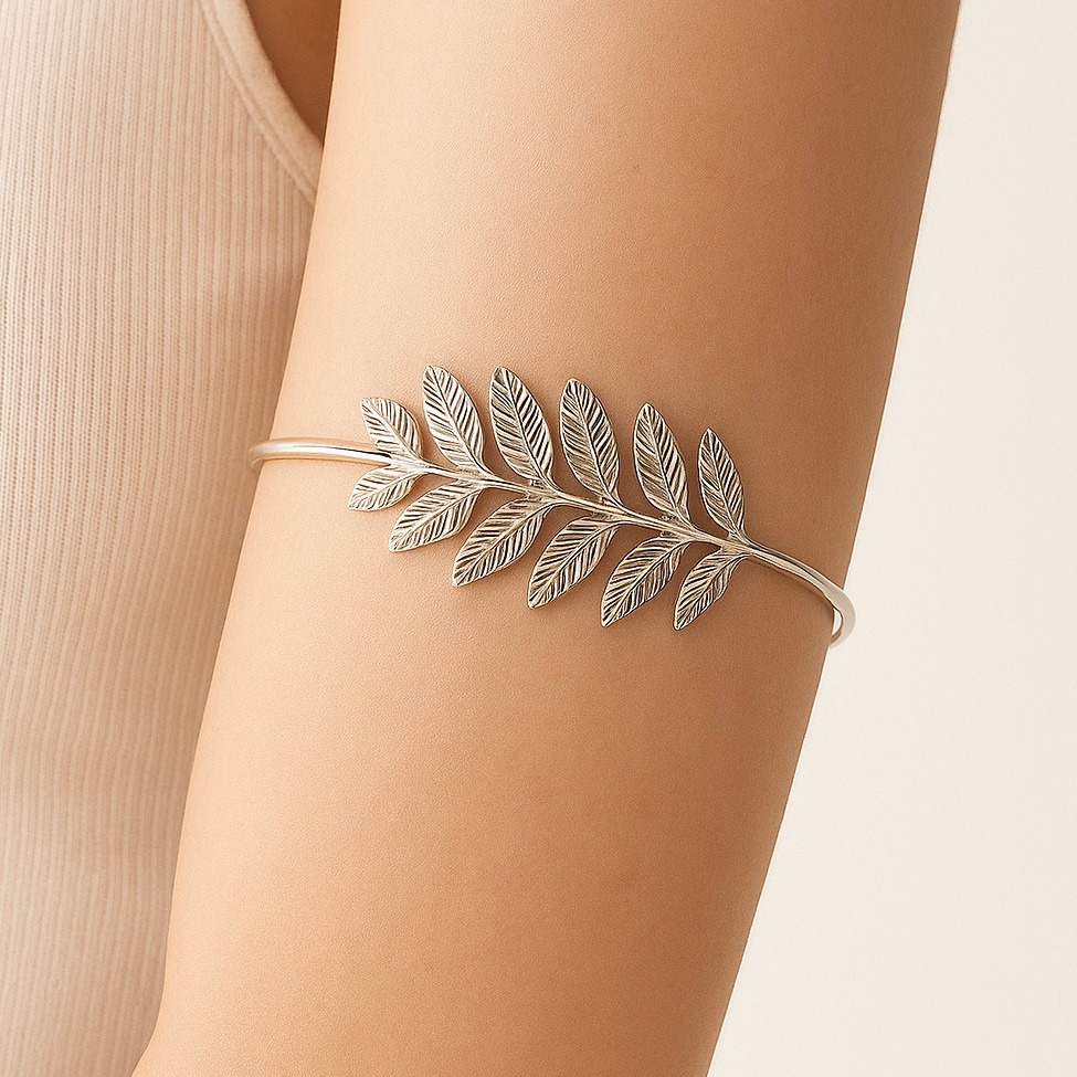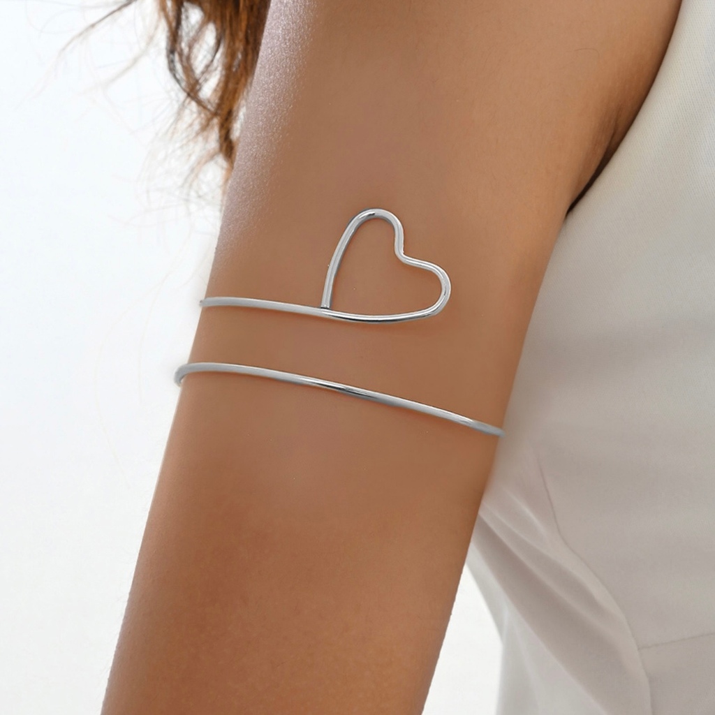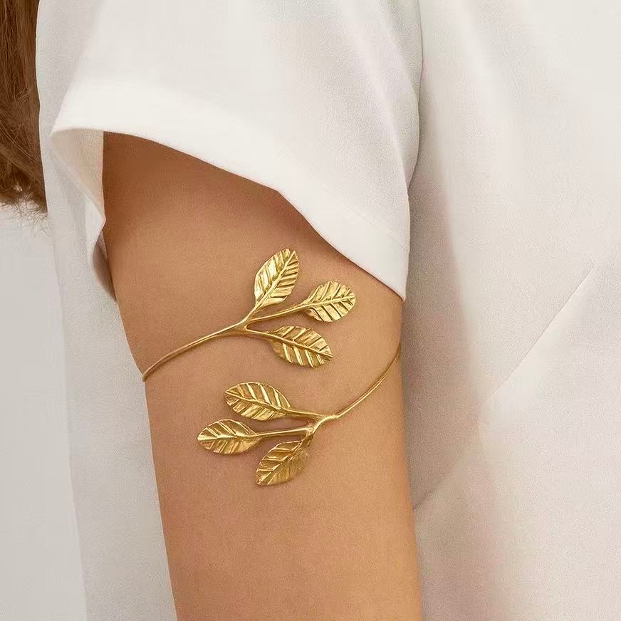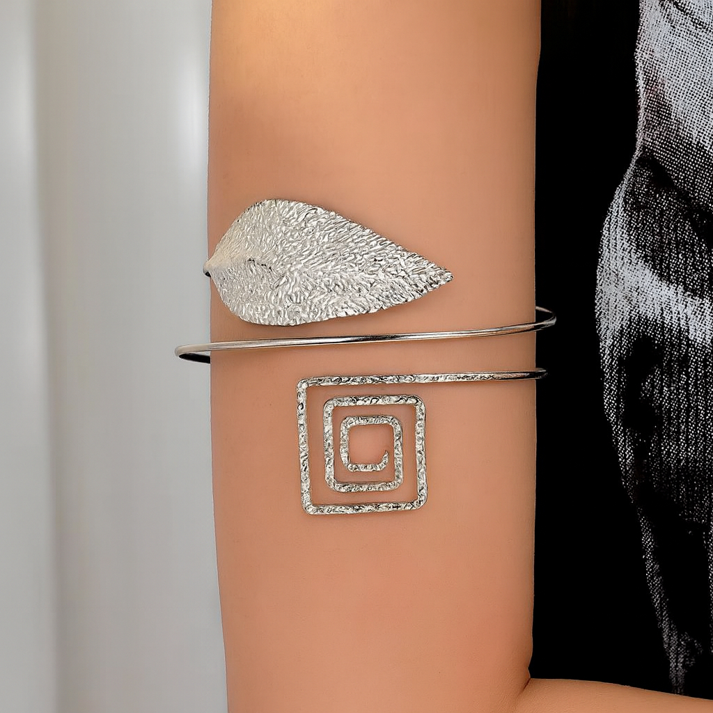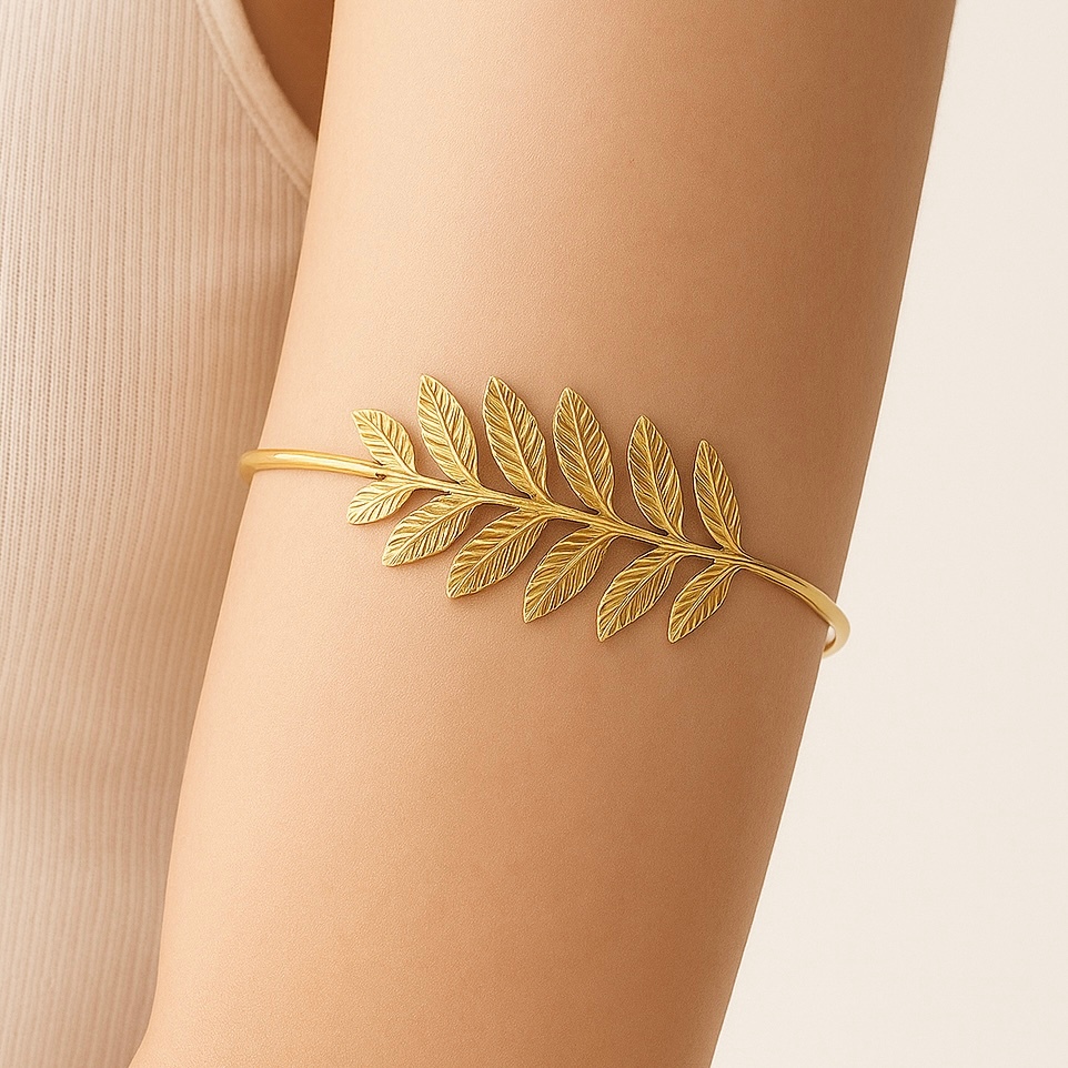 Pulseira de Braço Feminina Ajustável Geométrica com Coração, Folha e Borboleta Banhada a Ouro 18K e Prata 925