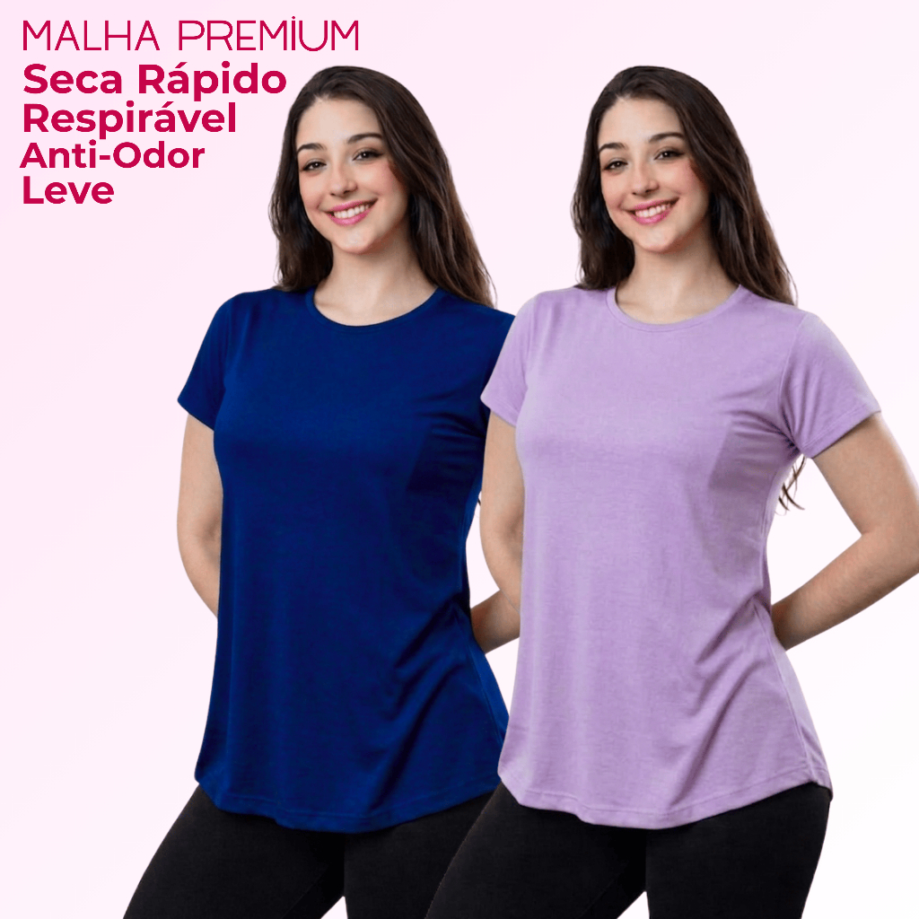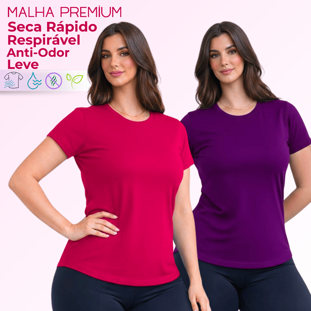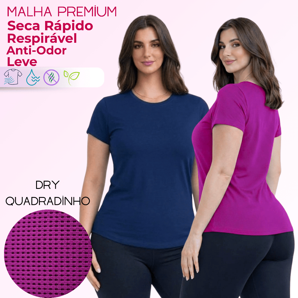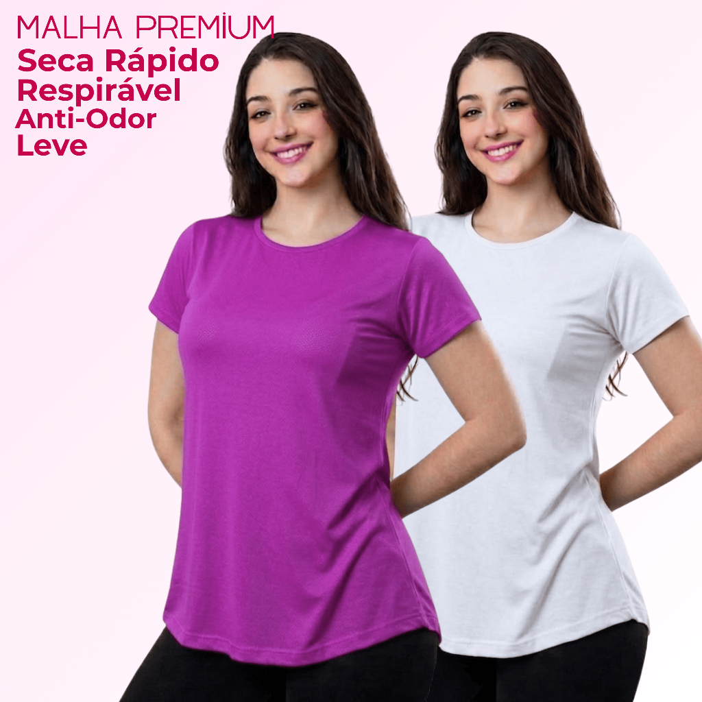 Kit 2 Camiseta DryFit Feminina Básica Sem Estampa Treino Academia Blusa Furadinha Seca Rápido Leve