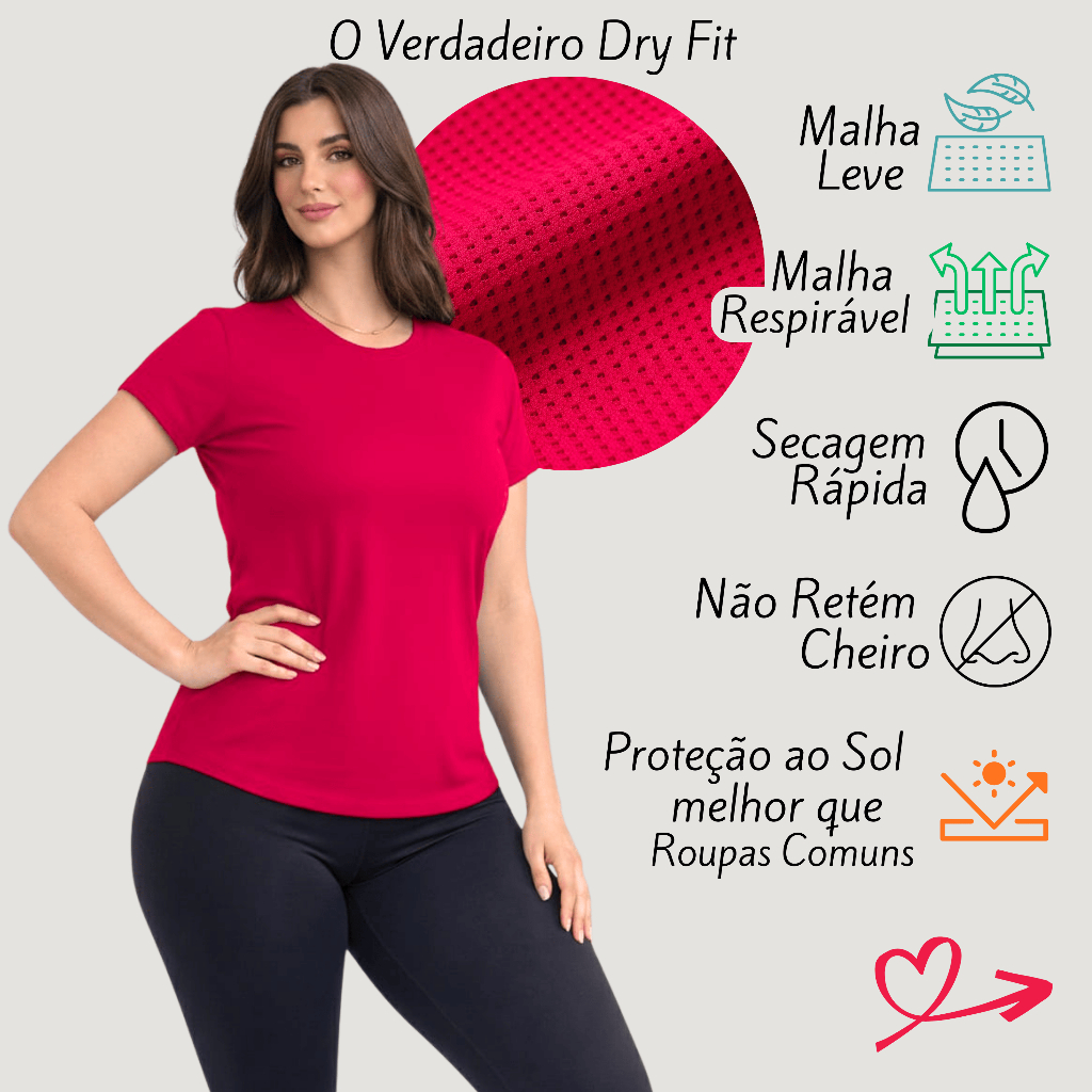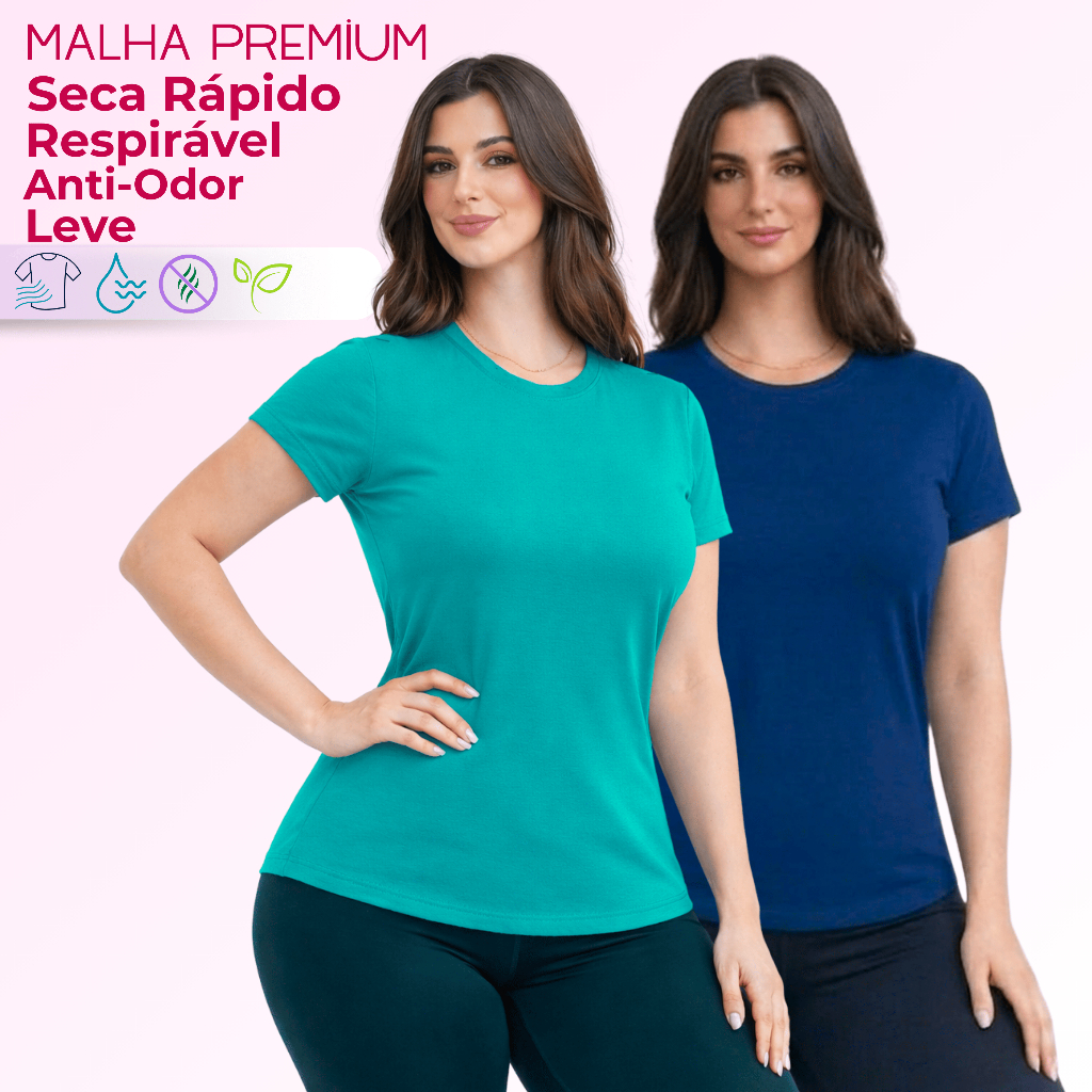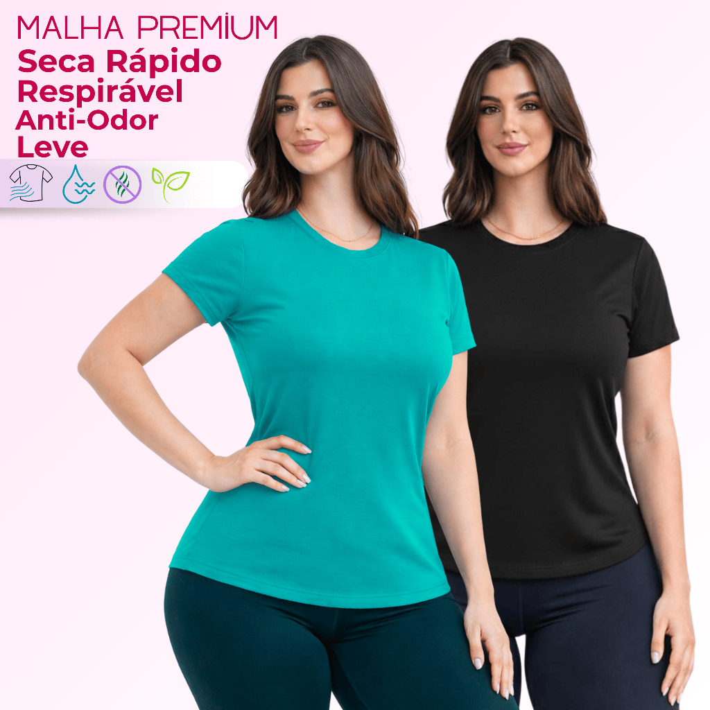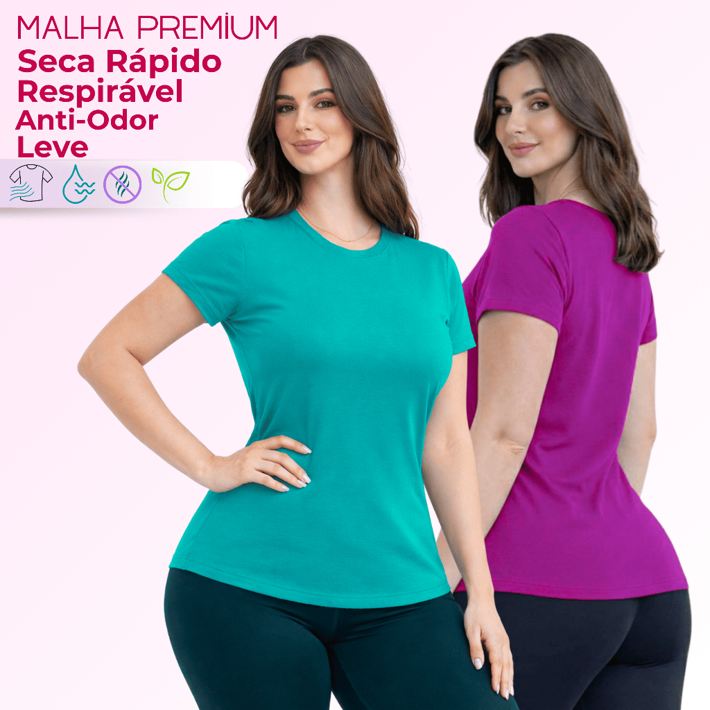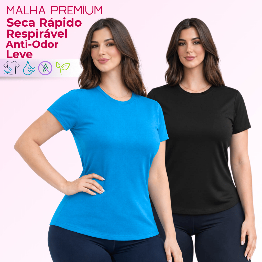 Kit 2 Camiseta DryFit Feminina Básica Sem Estampa Treino Academia Blusa Furadinha Seca Rápido Leve