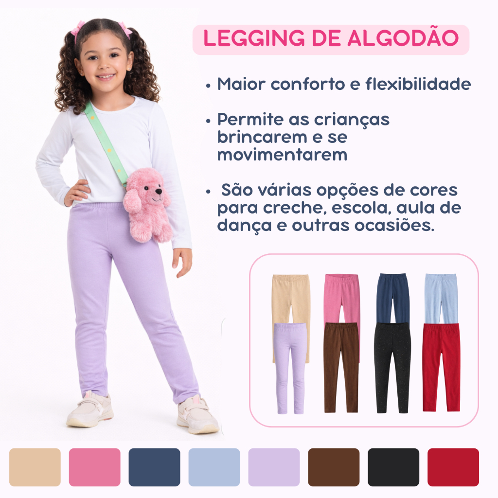Kit 2 Calças Legging Infantil Menina Sortidas 80% Algodão Lisas – Ideal para Escola 2 a 12 Anos