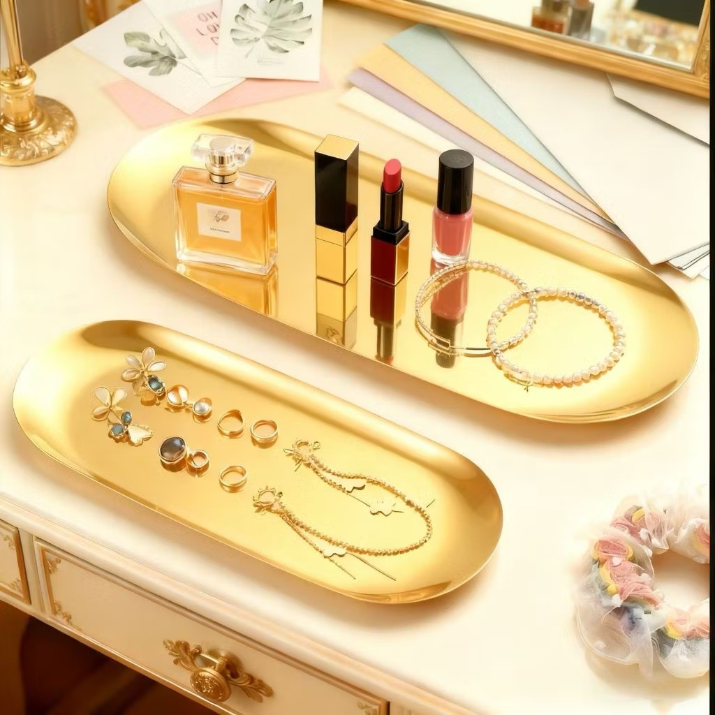Bandeja Oval de Aço Inox Decorativa Organizador de Joias Maquiagem Talheres e Petiscos