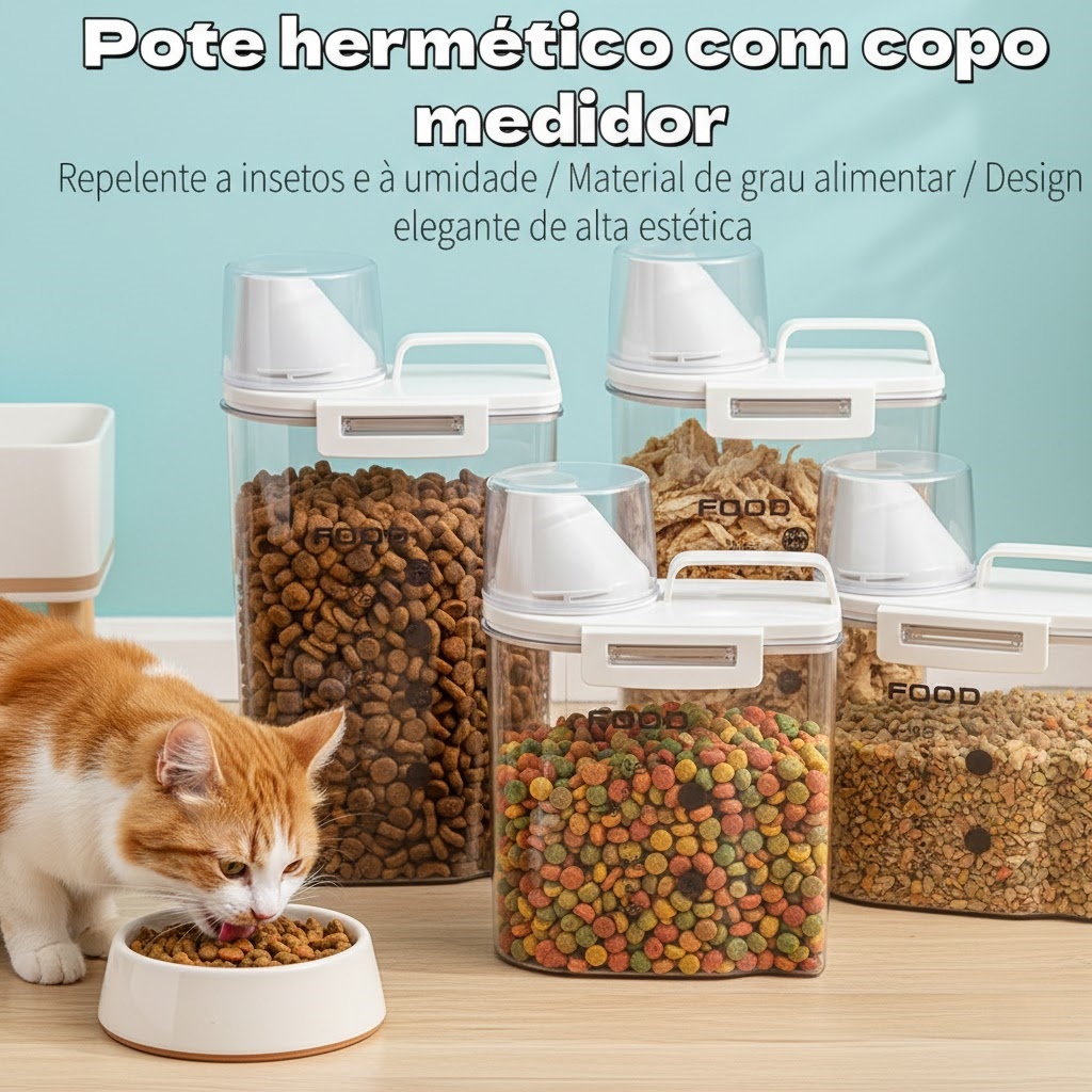 Pote Hermético Dispenser de Ração com Medidor para Cachorro e Gato,Vedação Total e À Prova de Umidade