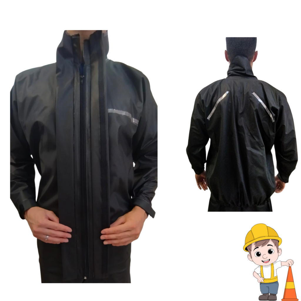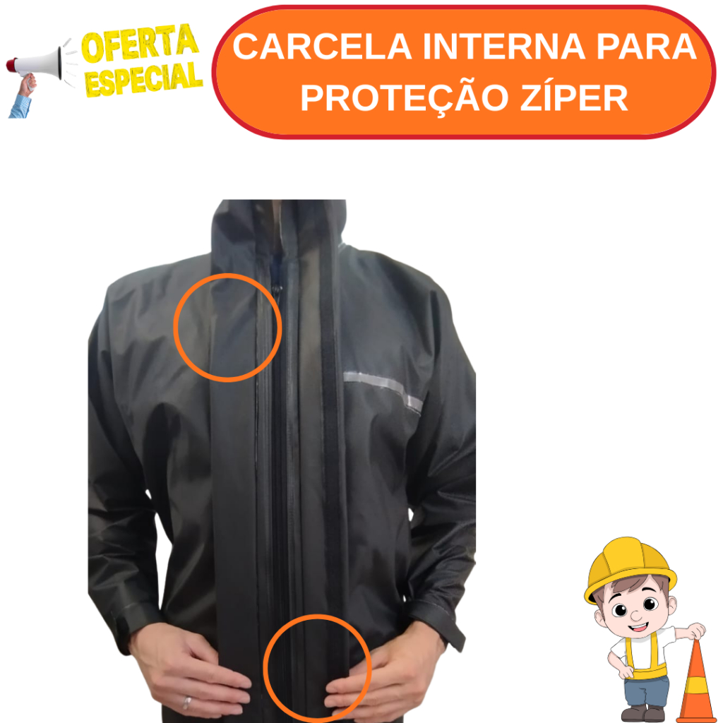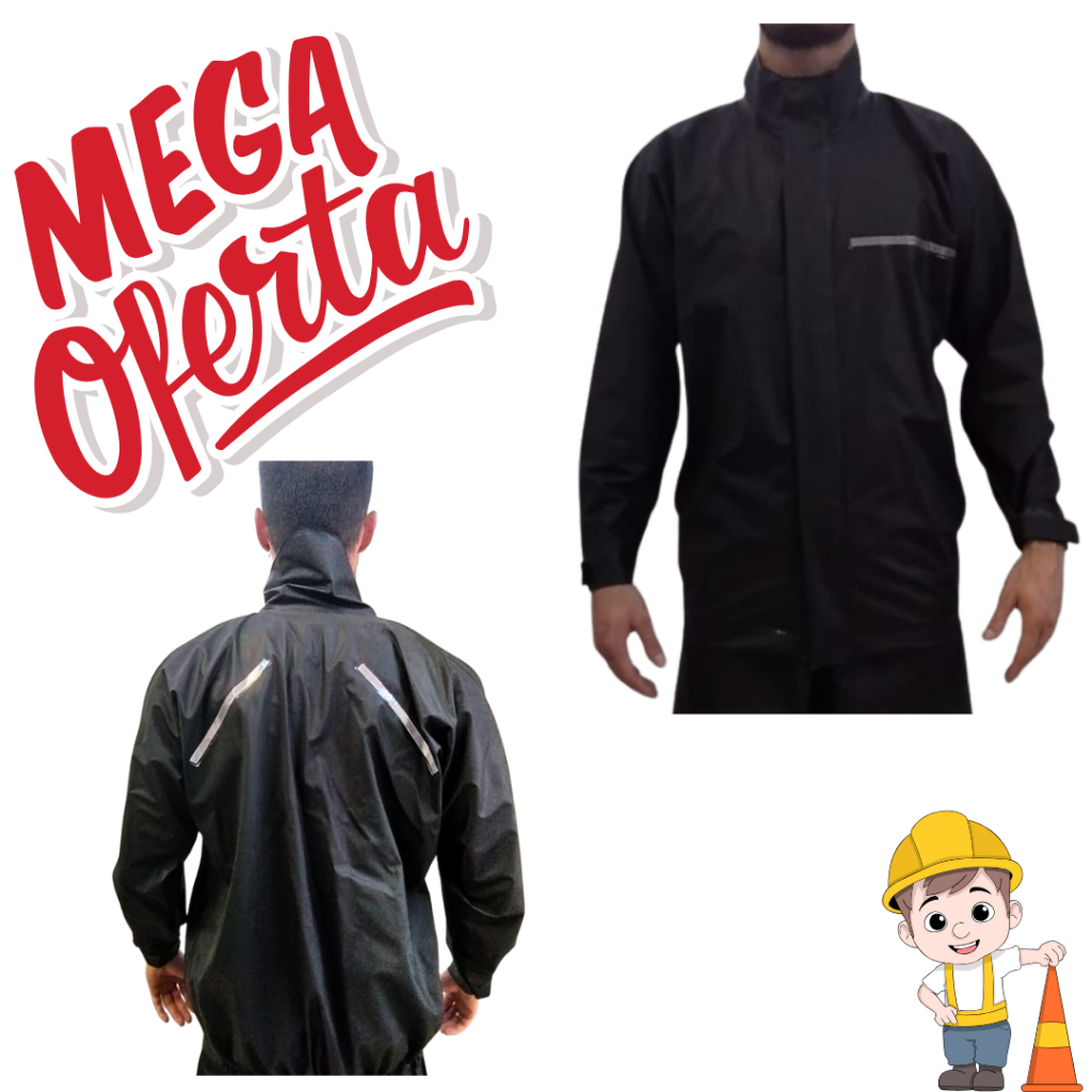 Blusão Jaqueta De Pvc Preto Impermeável Para Chuva Motoqueiro Motoboy Com Gola e Fita Luminosa