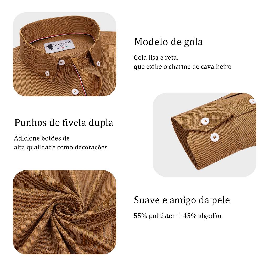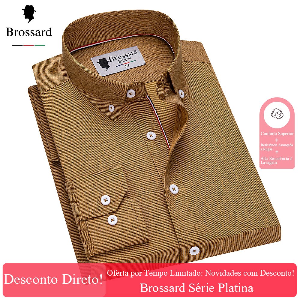 Camisa Social Masculina Slim Fit de Tecido Listrado de Alta Qualidade, Manga Longa Casual e Estilosa