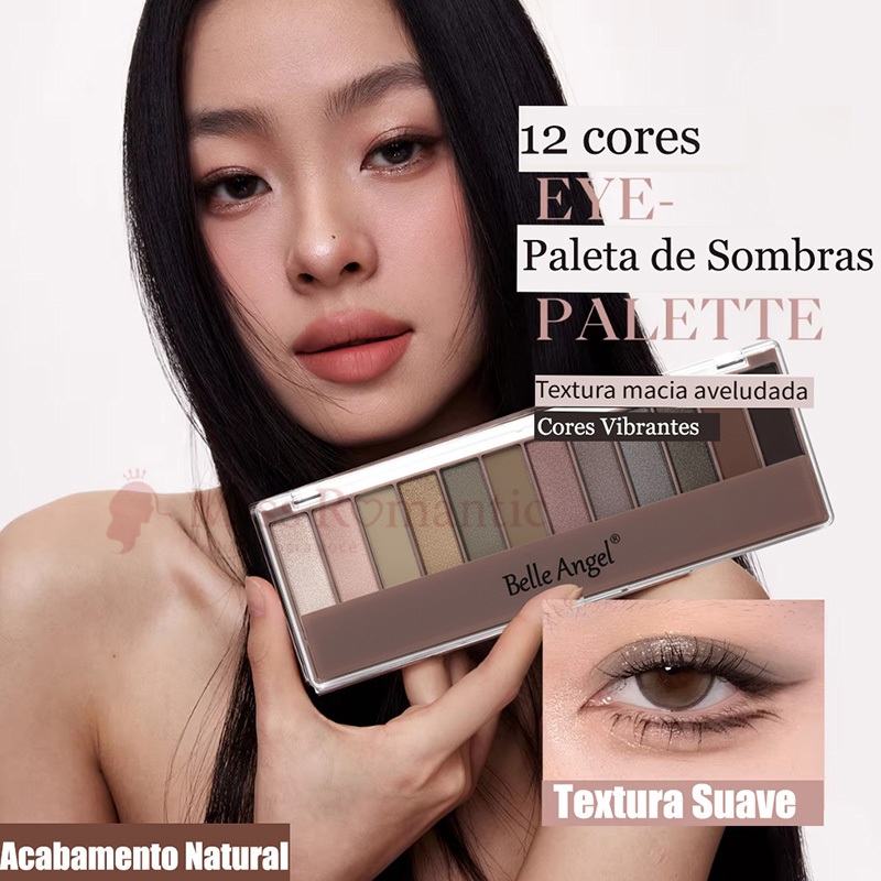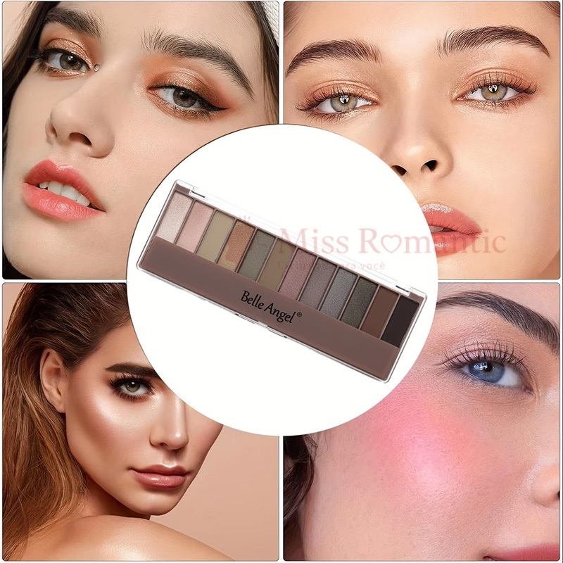 Paleta de Sombras 12 Cores Belle Angel Alta Pigmentação Tons de Nude Pocket