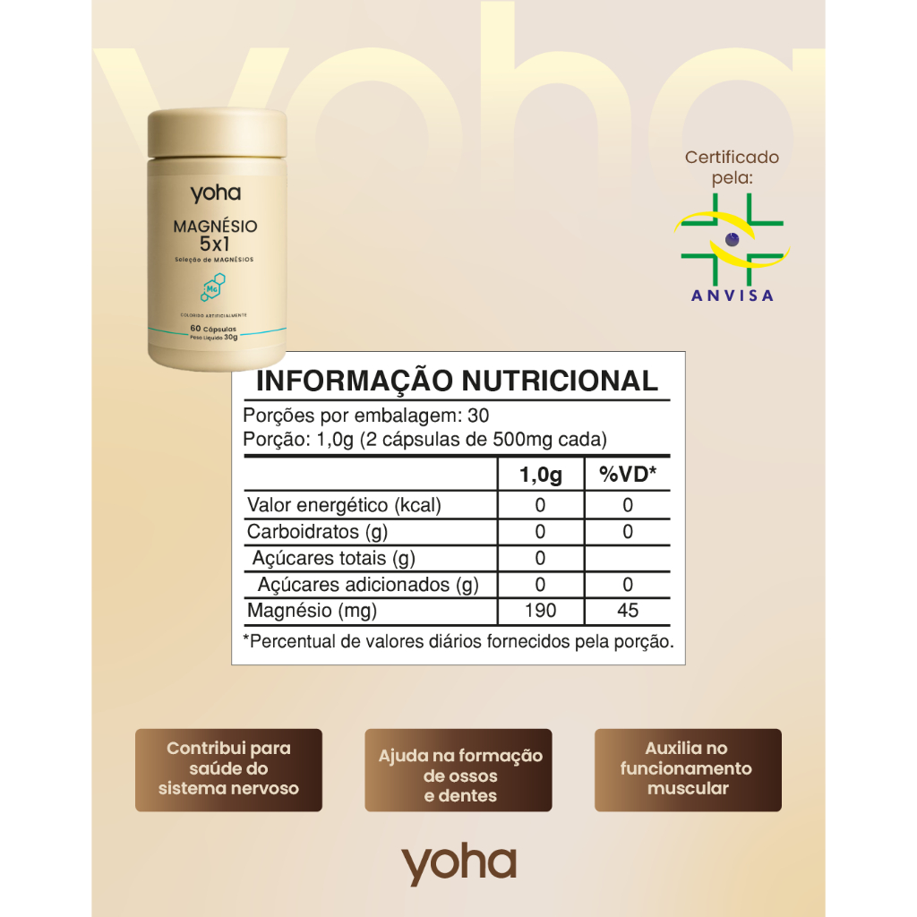 Magnésio 5X1 60 Cápsulas - Yoha