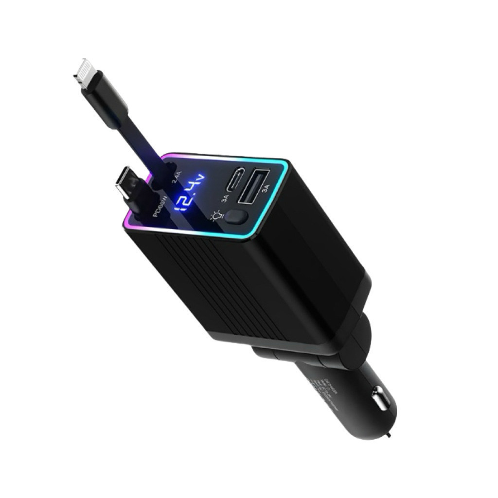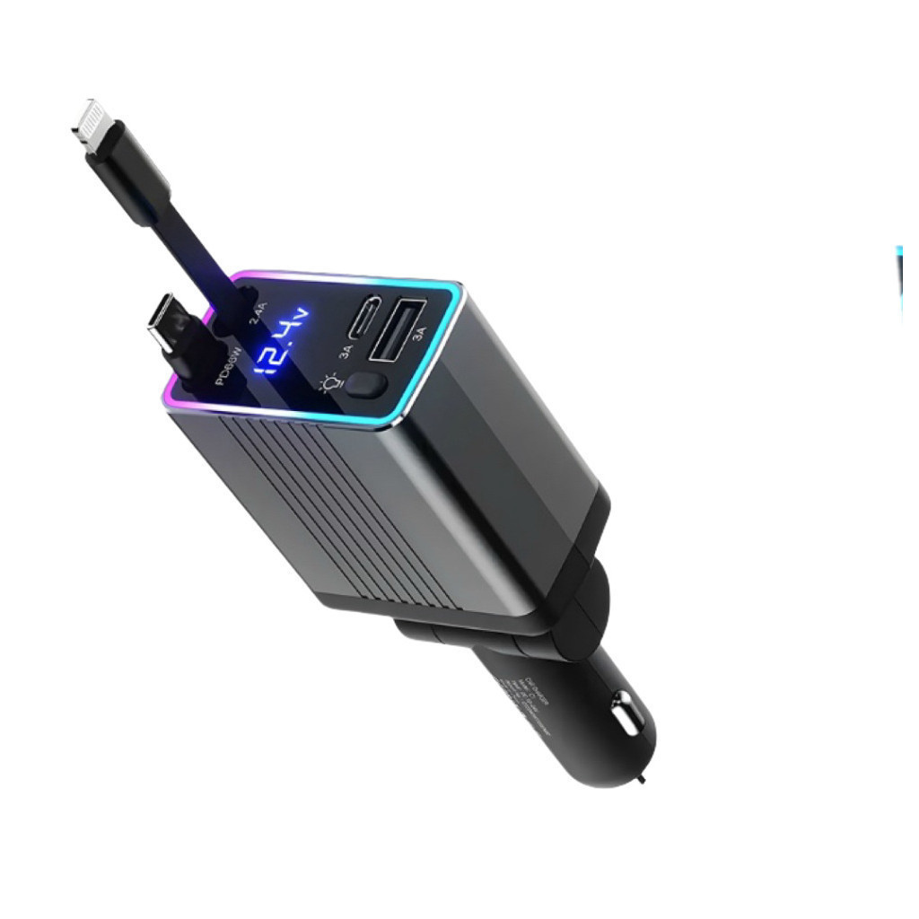 Carregador de carro retrátil carregador rápido de para carro 4 em 1 para iPhone/Android com luz LED