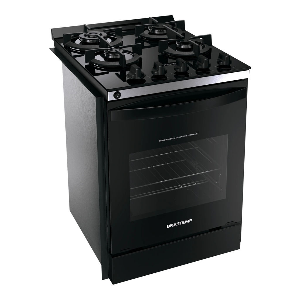 Fogão Brastemp 4 Bocas de Embutir Preto com Mesa de Vidro e Dupla Chama - BYO4XAE