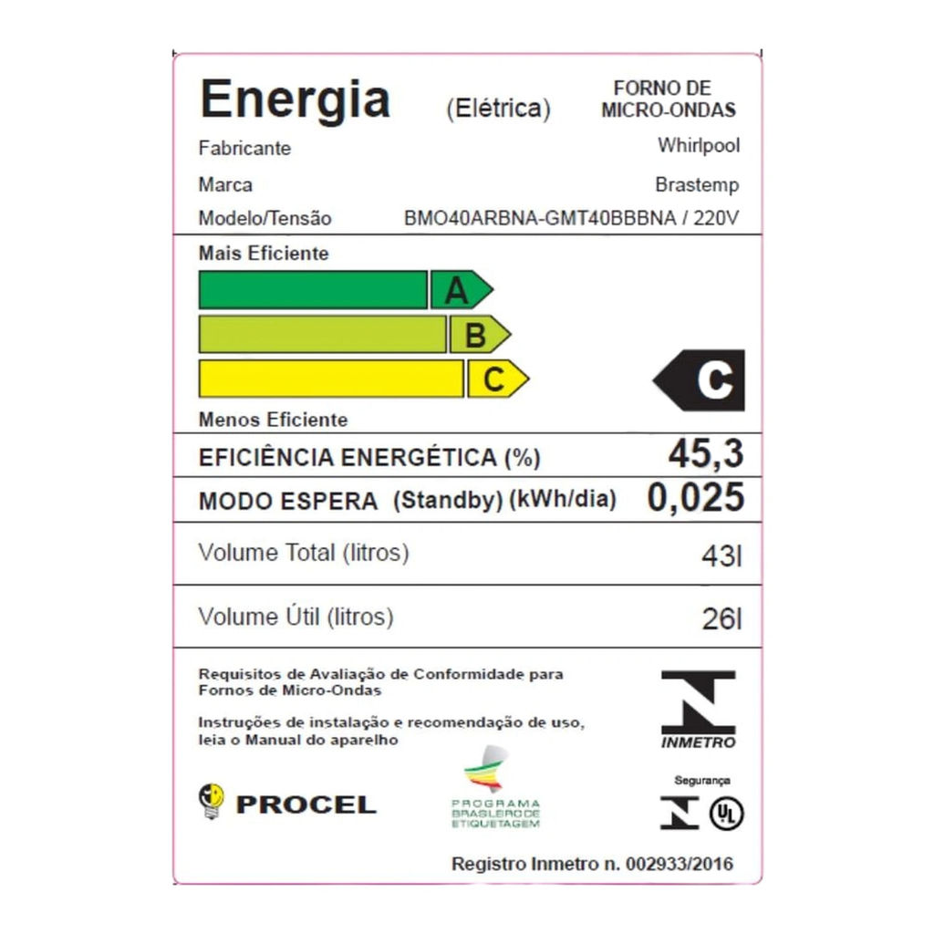 Micro-ondas Brastemp Vitreous de Embutir 40 Litros Branco com Grill - GMT40AB
